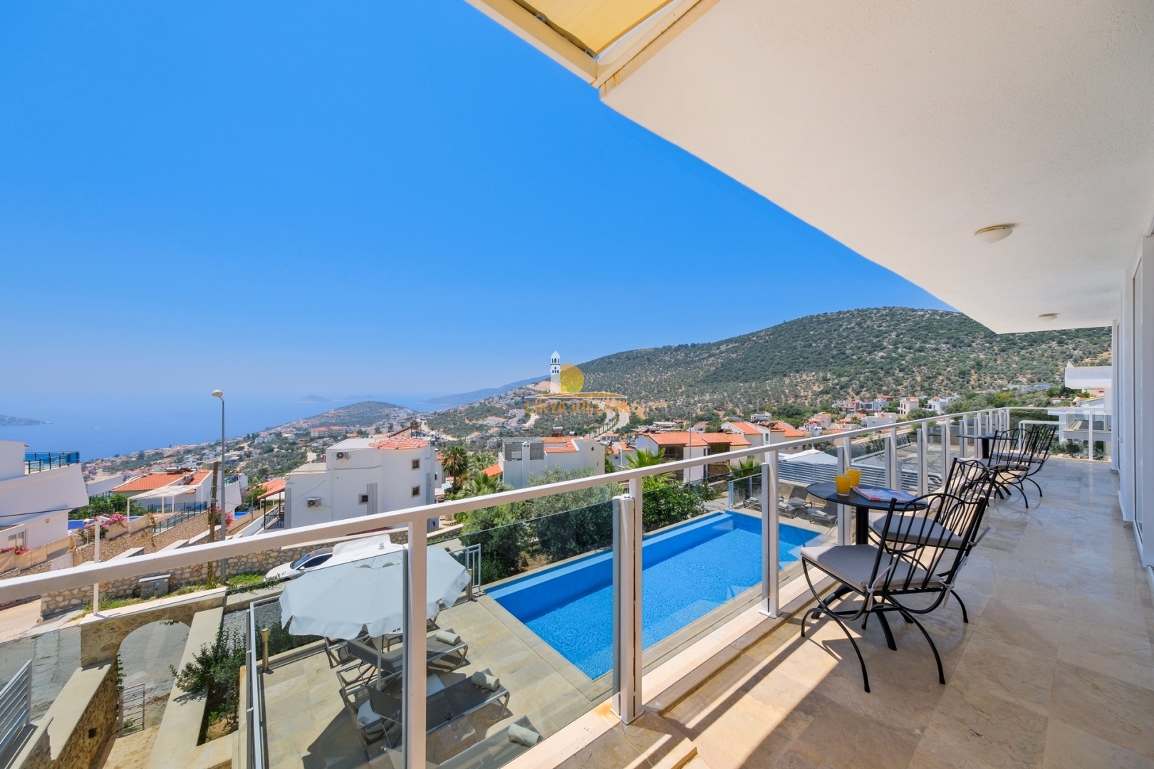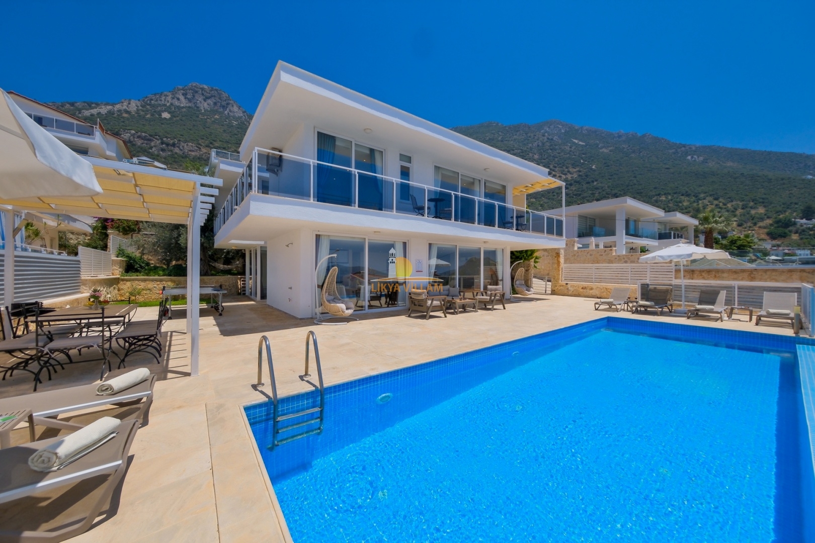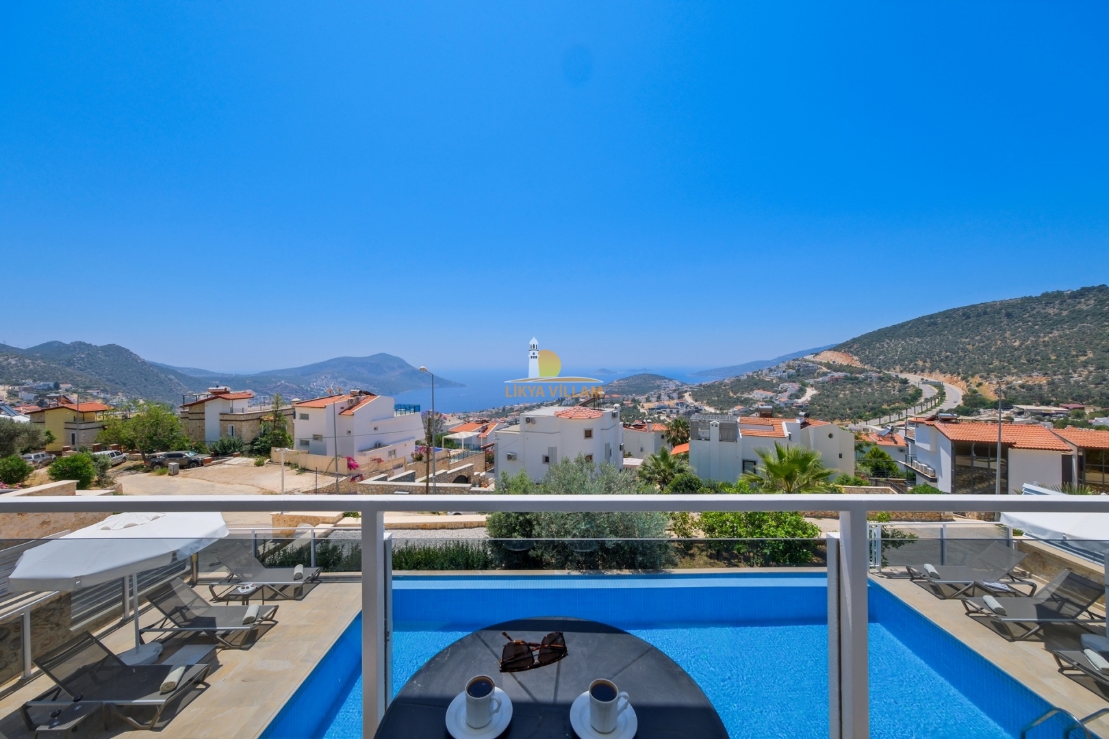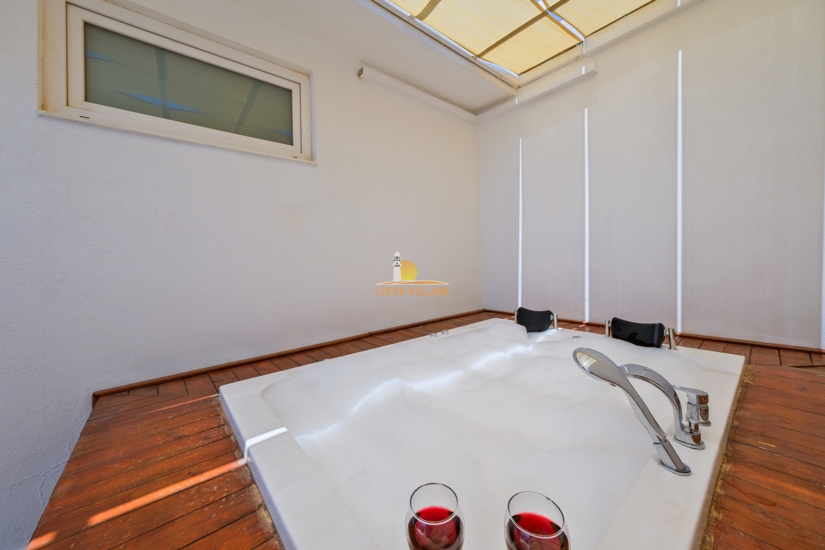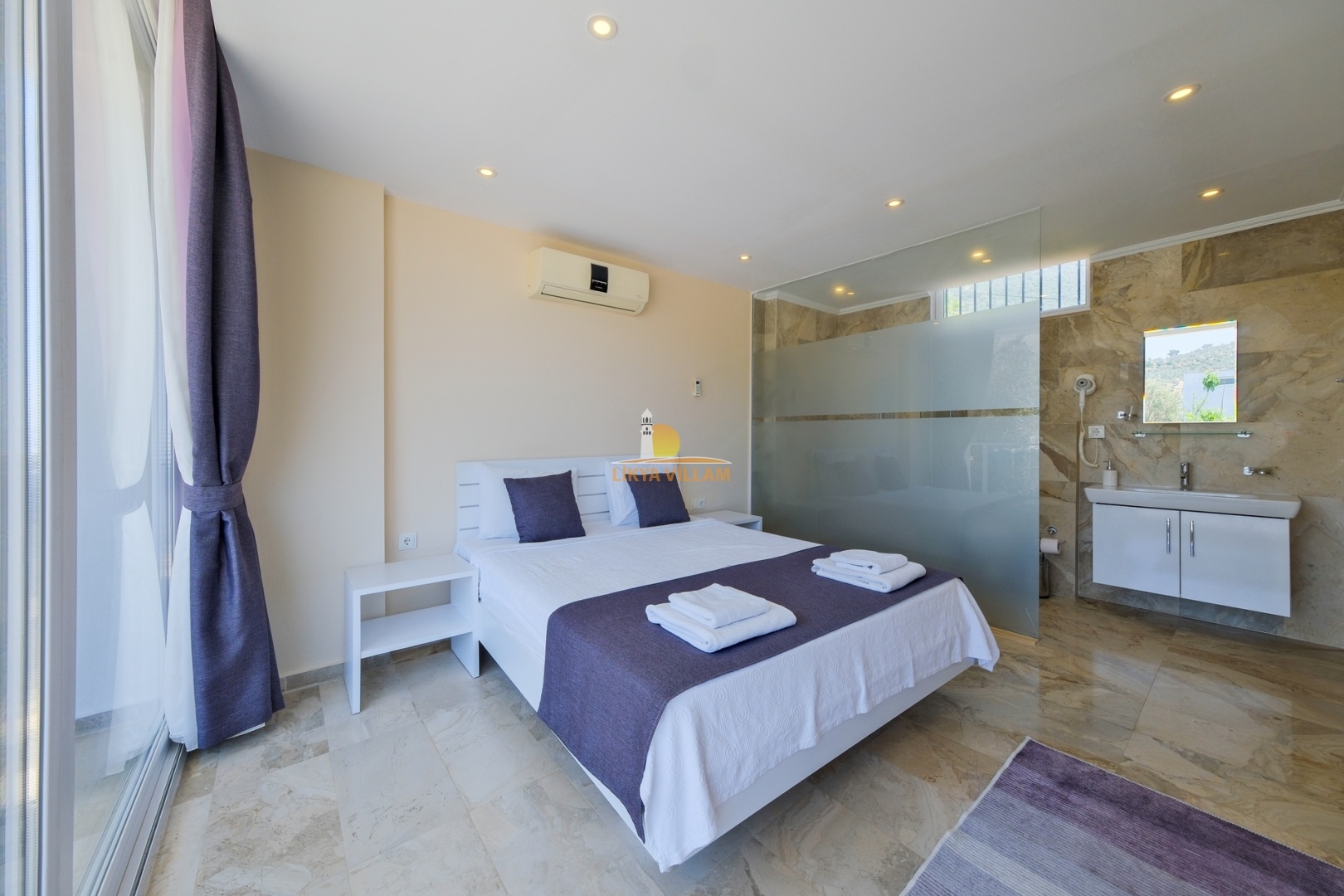 Villa in Kalkan mit Meerblick, beheizter privater Pool, 4 Schlafzimmer, 4 Bäder, Whirlpool, 2 Etagen