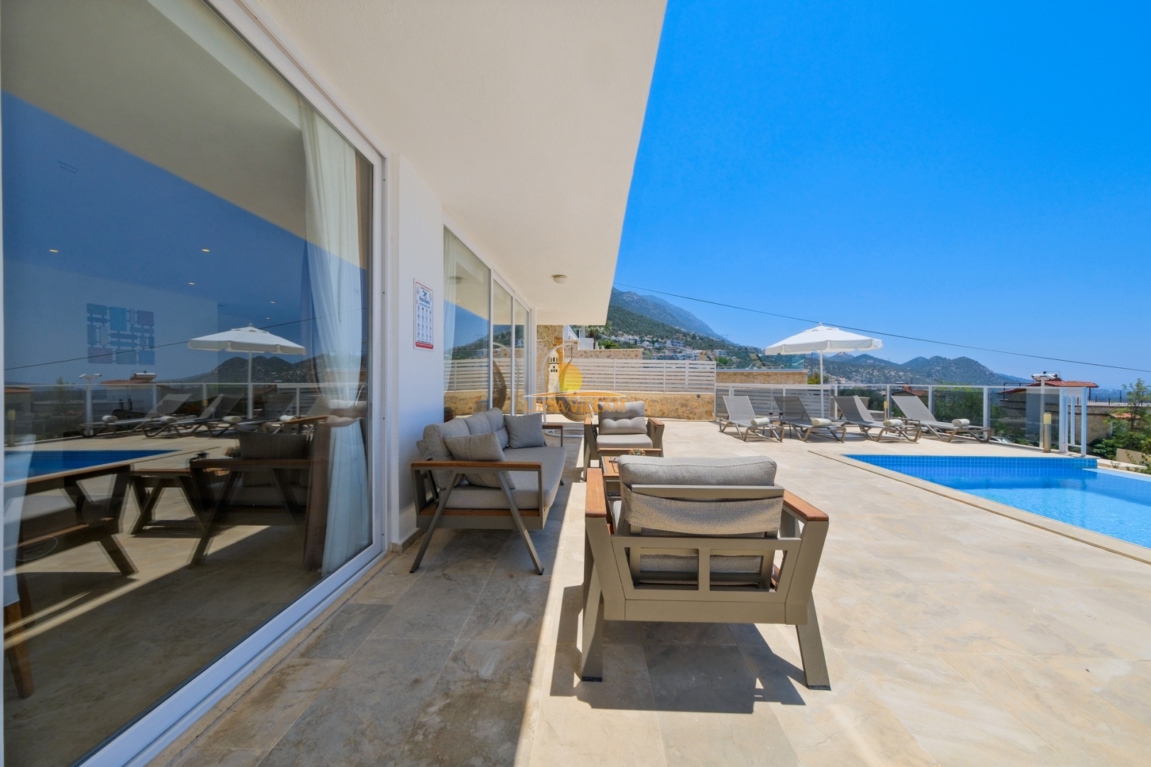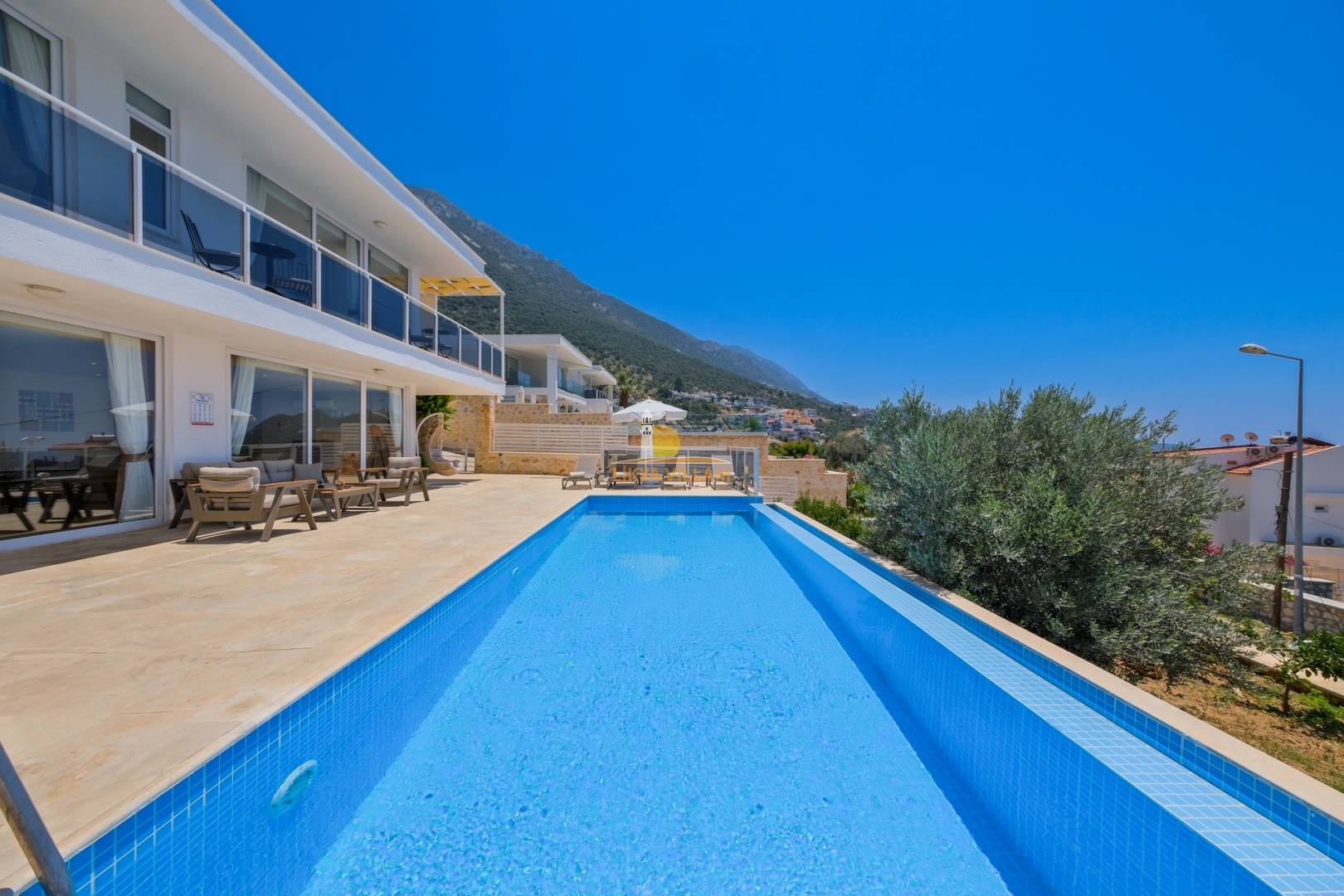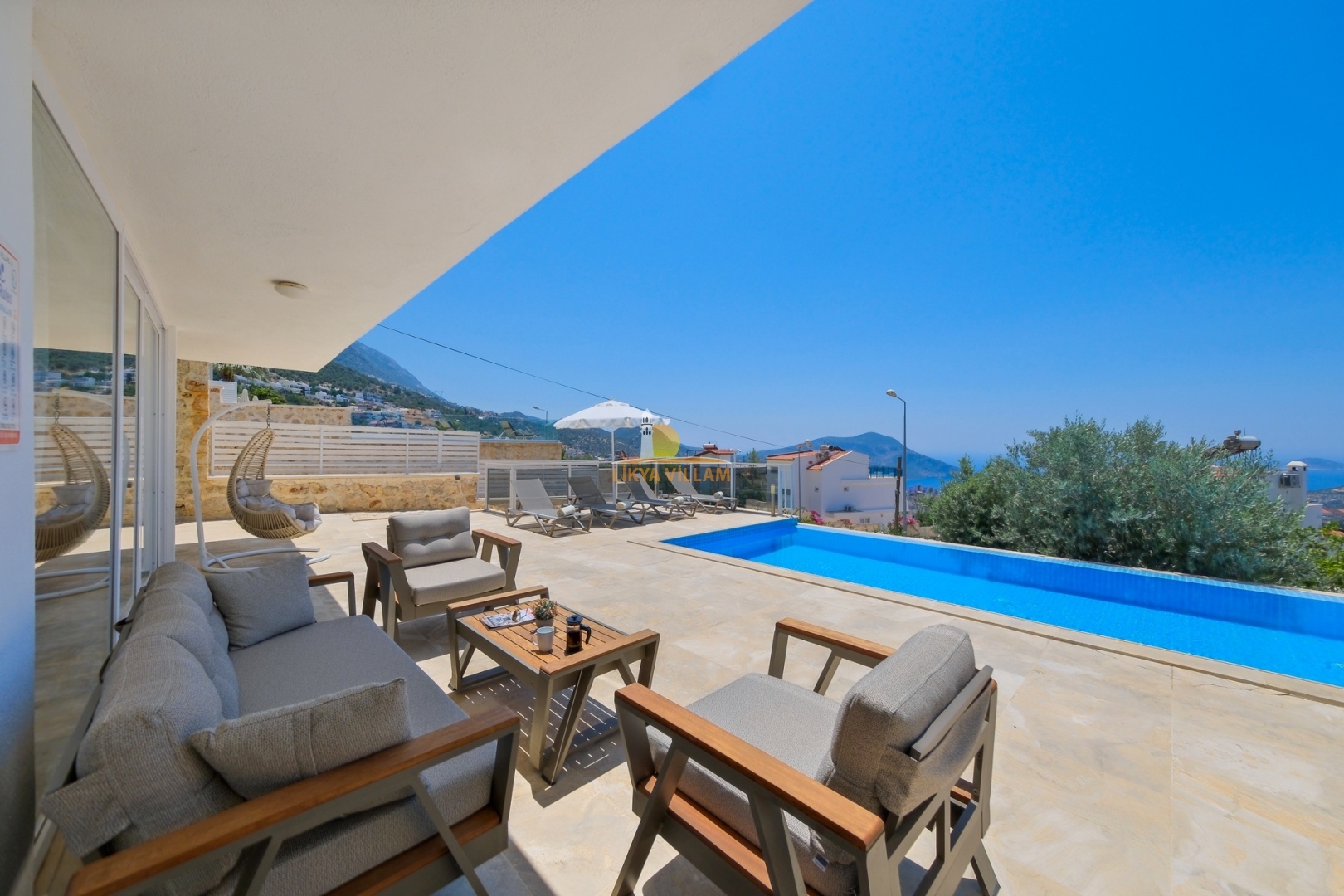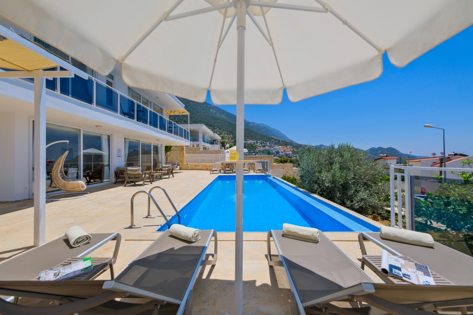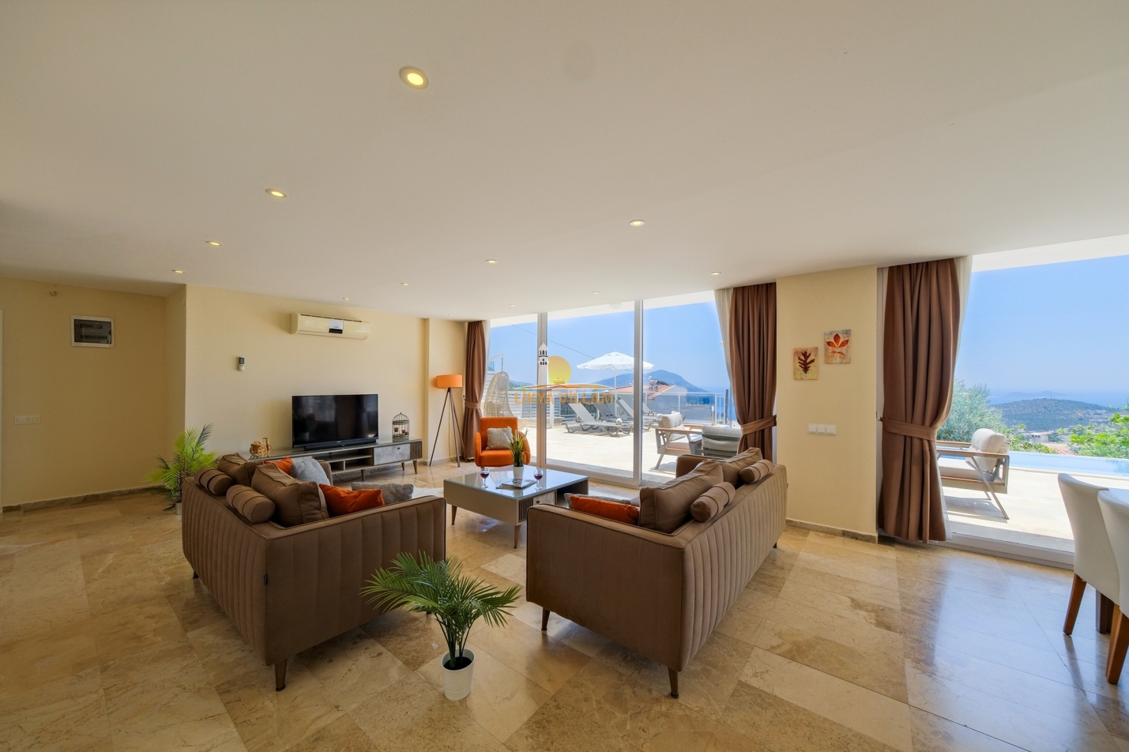 Villa in Kalkan mit Meerblick, beheizter privater Pool, 4 Schlafzimmer, 4 Bäder, Whirlpool, 2 Etagen