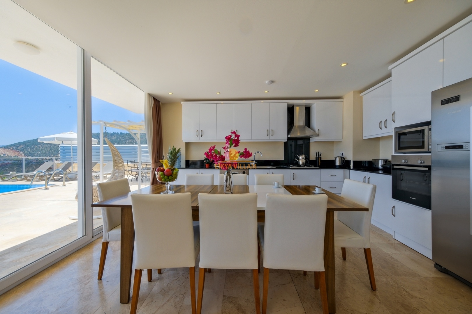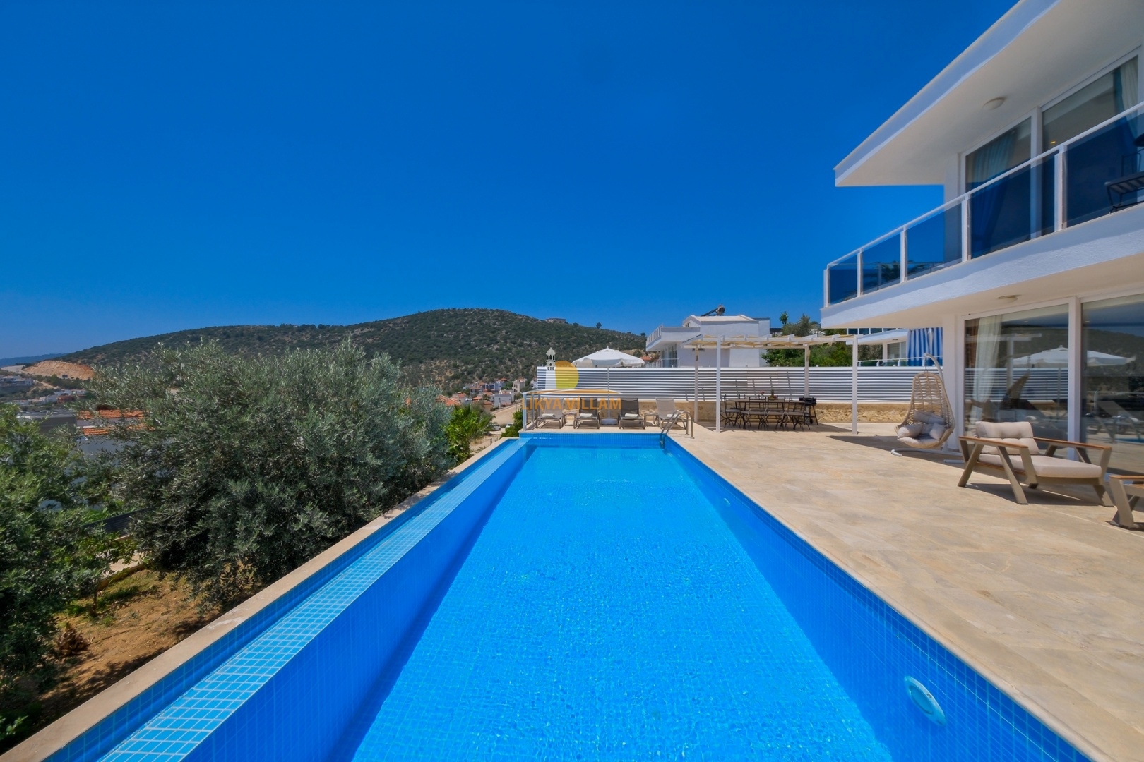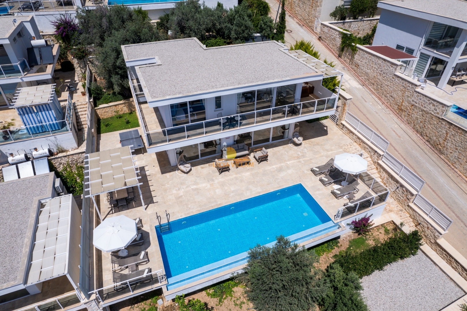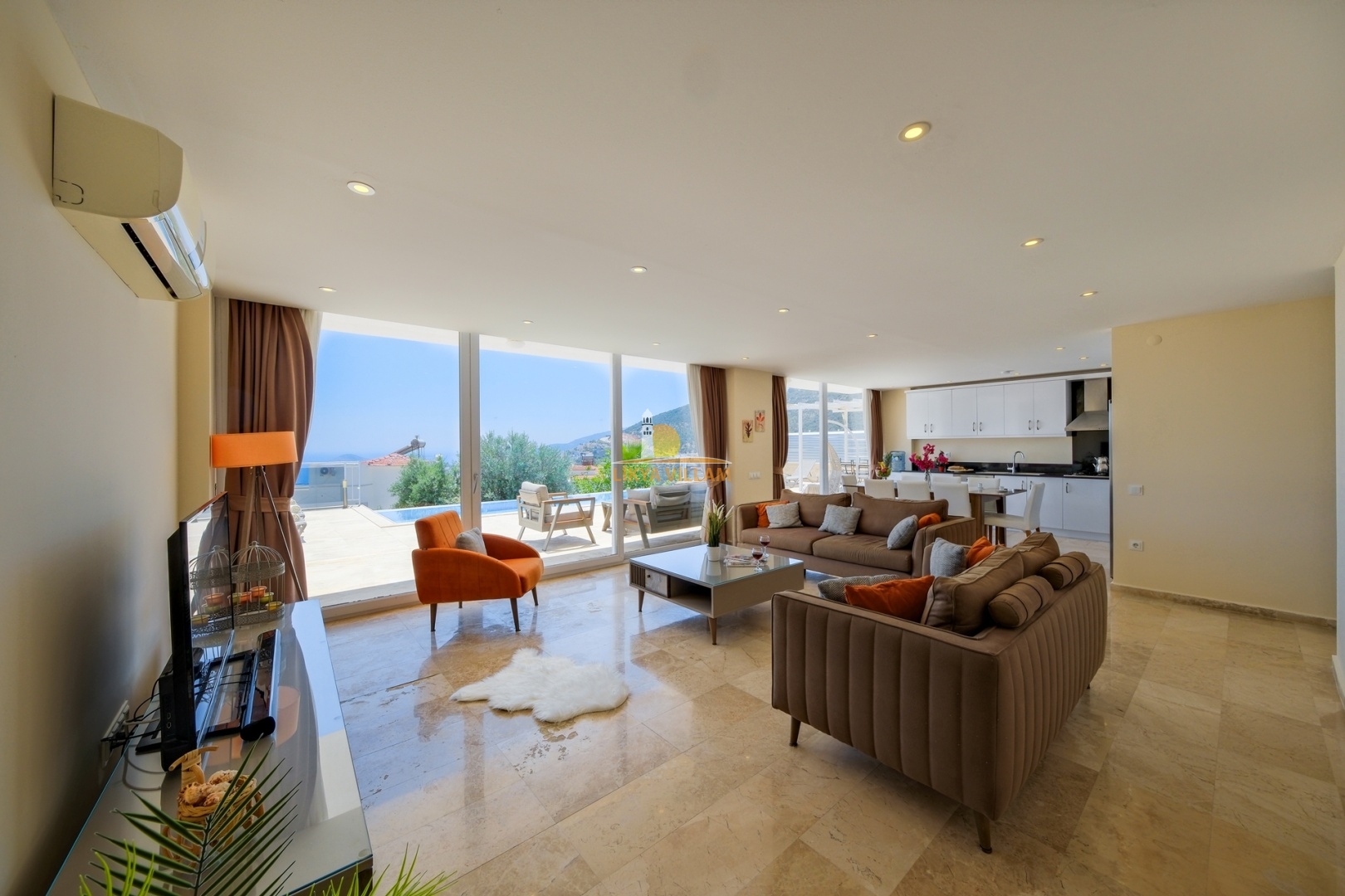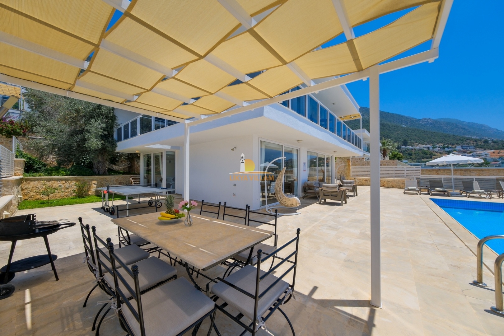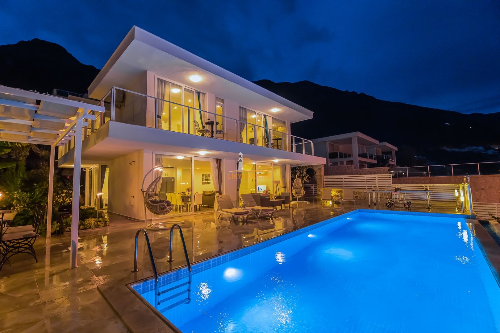 Villa in Kalkan mit Meerblick, beheizter privater Pool, 4 Schlafzimmer, 4 Bäder, Whirlpool, 2 Etagen