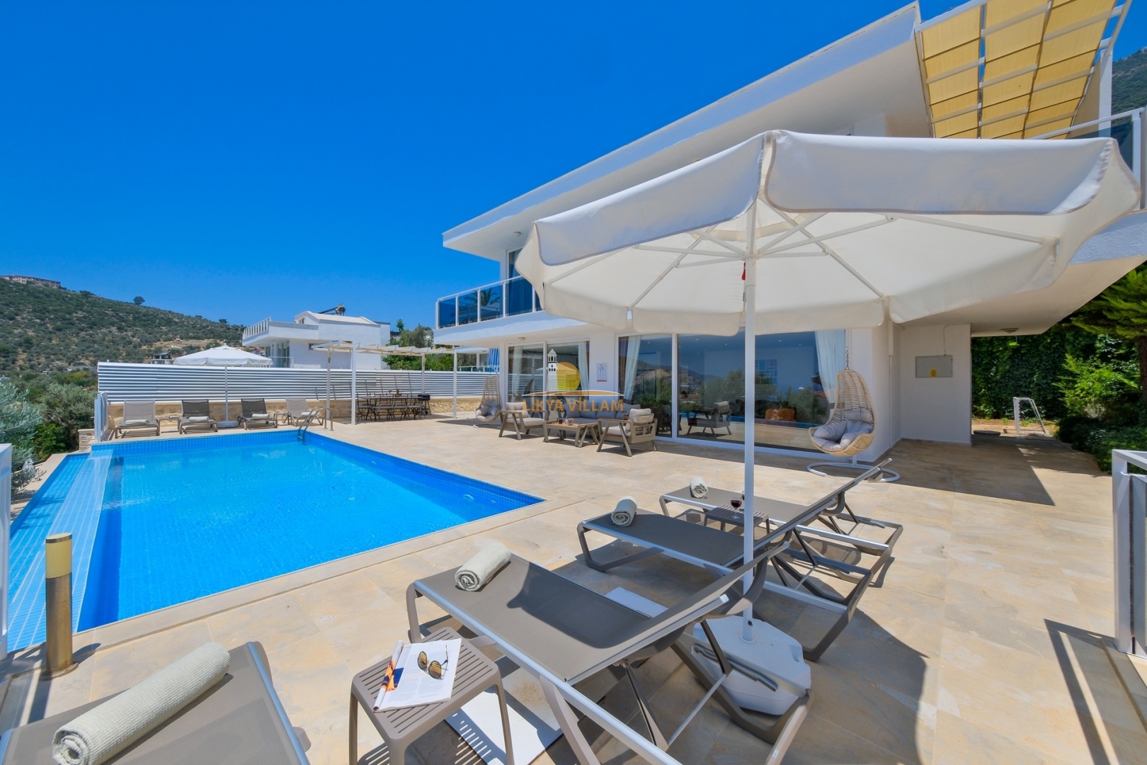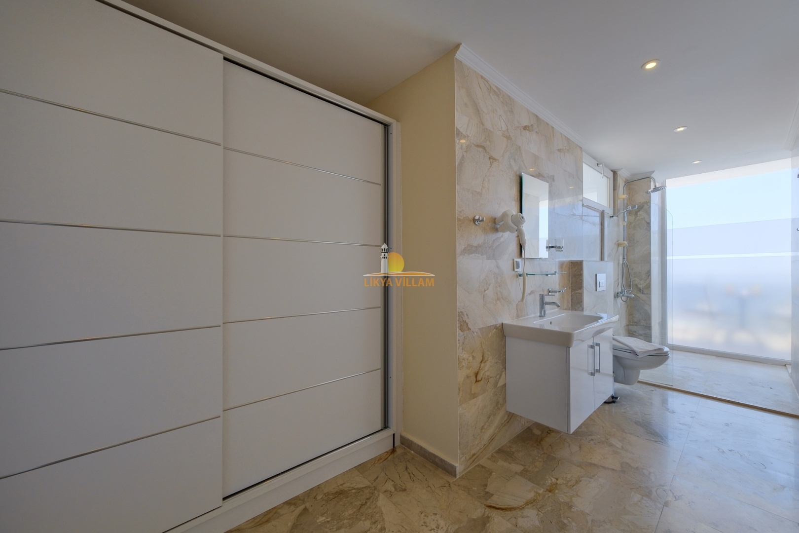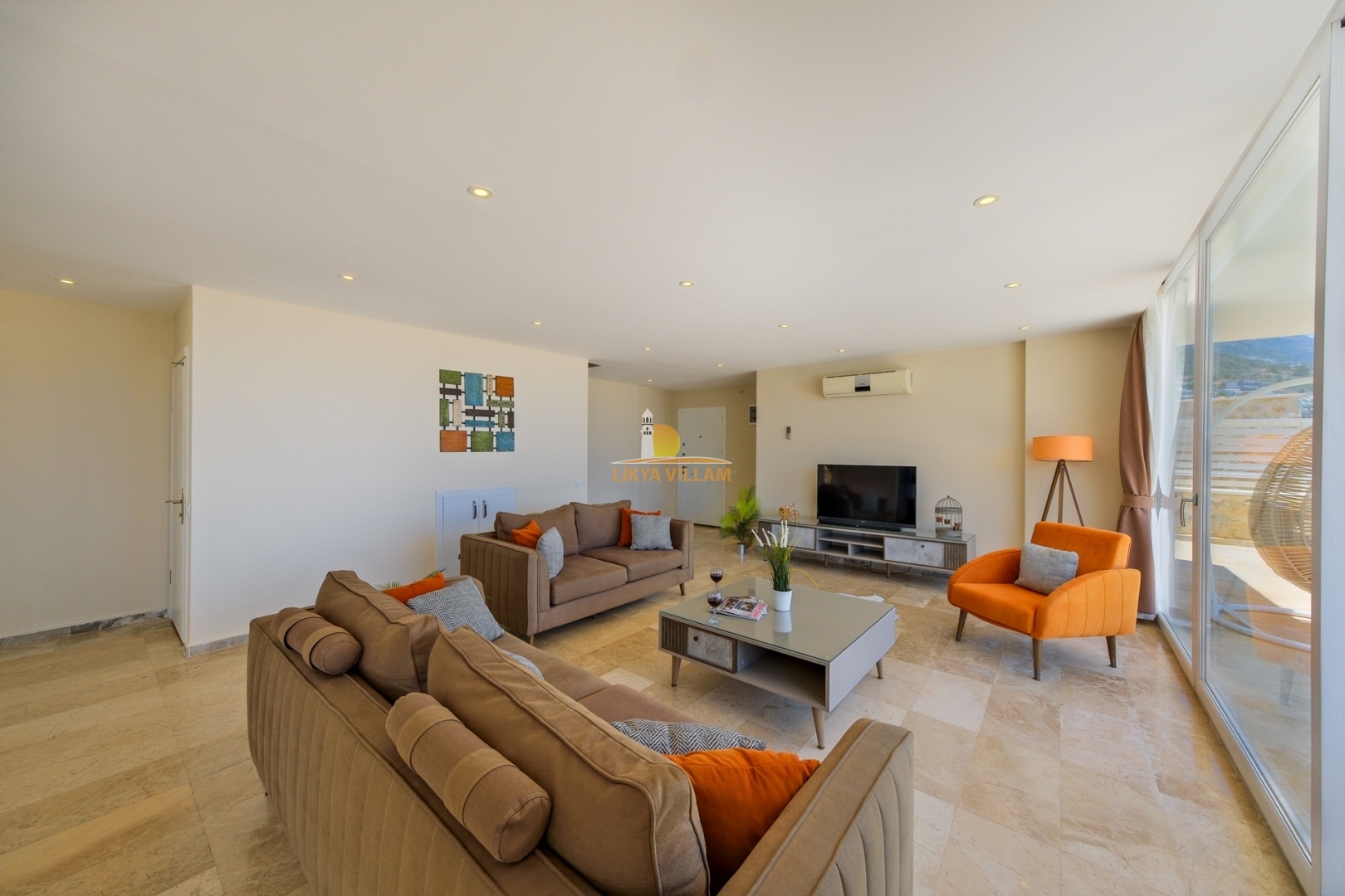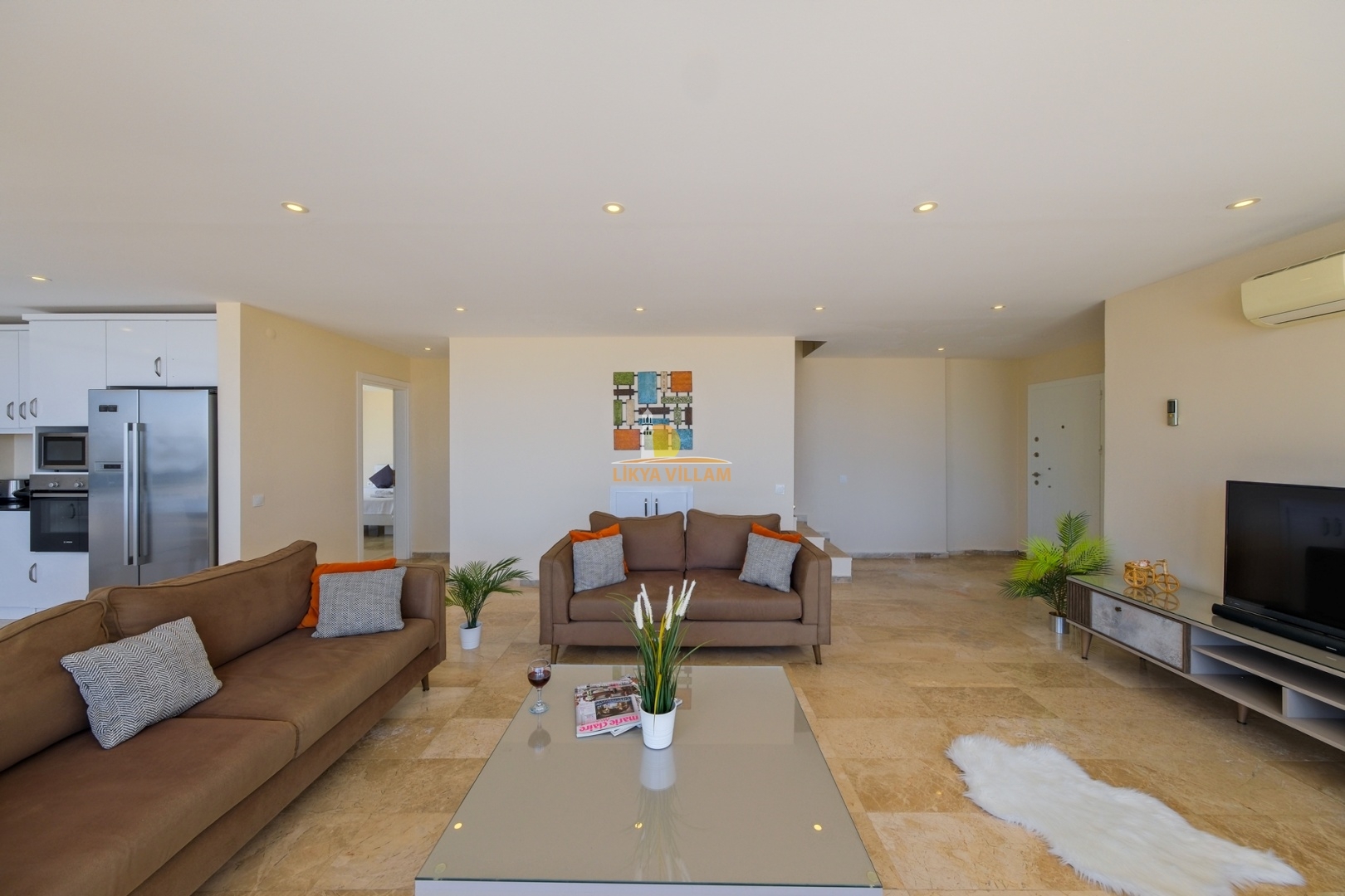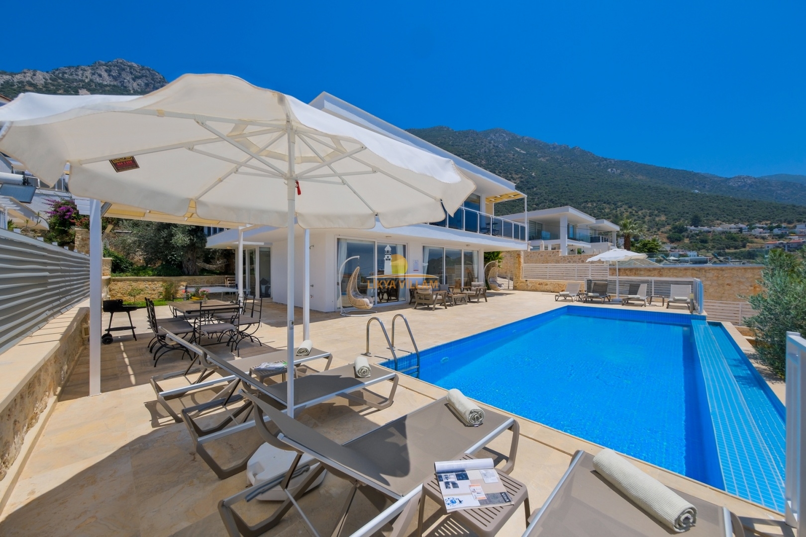 Villa in Kalkan mit Meerblick, beheizter privater Pool, 4 Schlafzimmer, 4 Bäder, Whirlpool, 2 Etagen