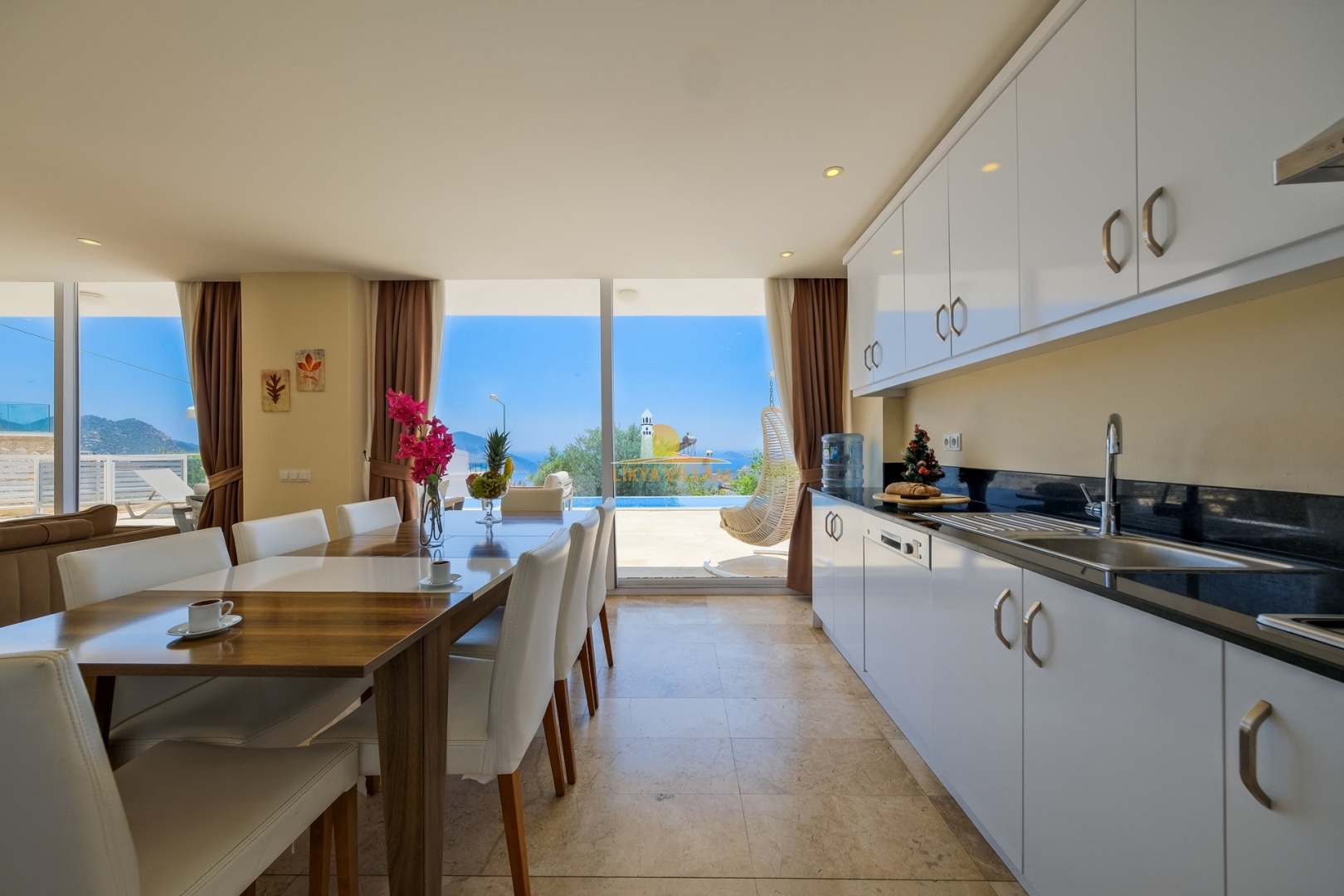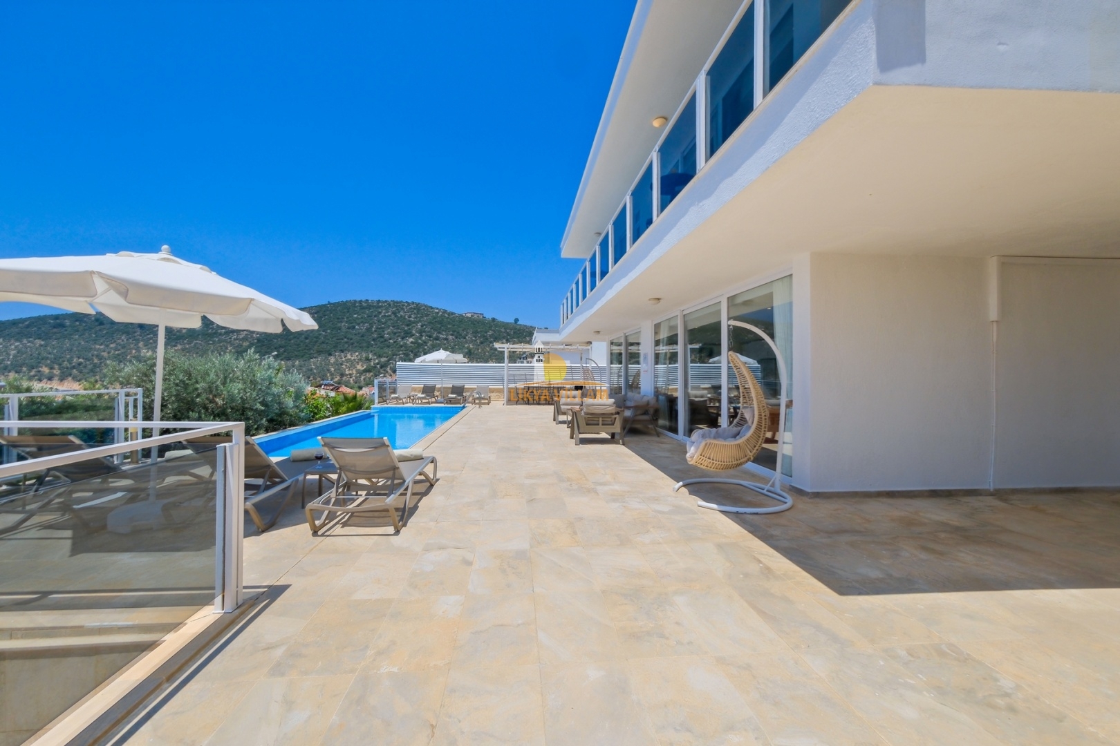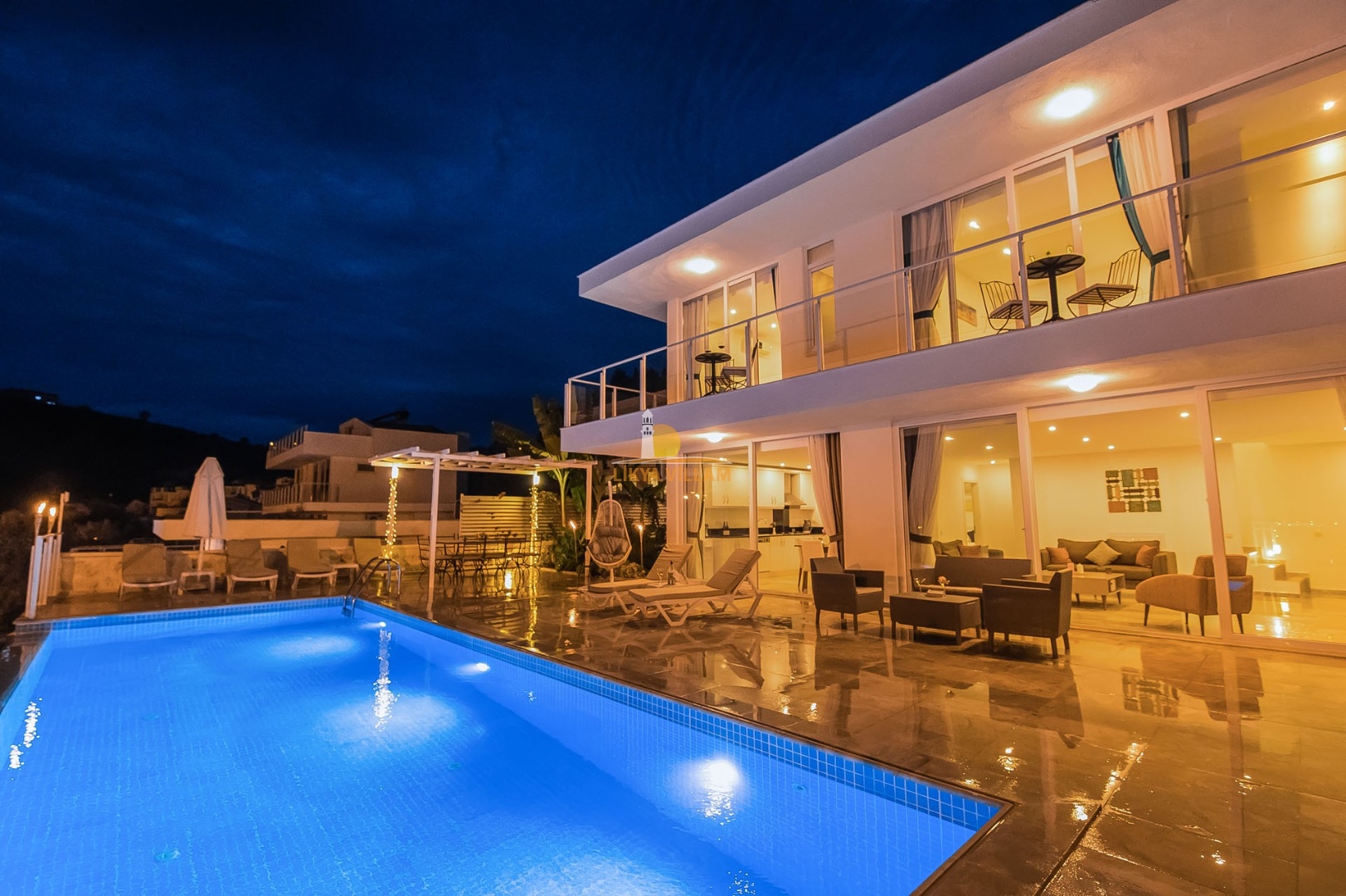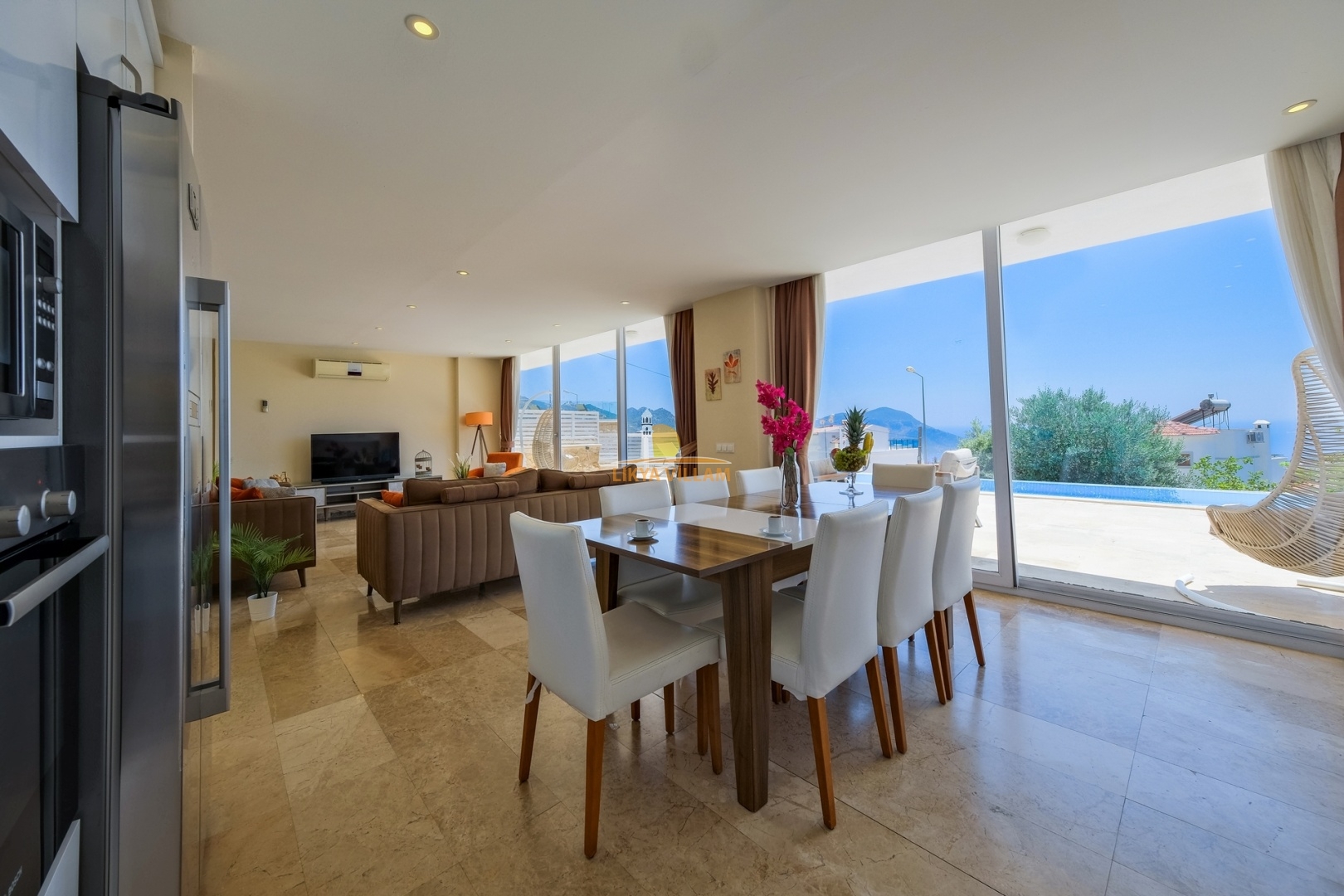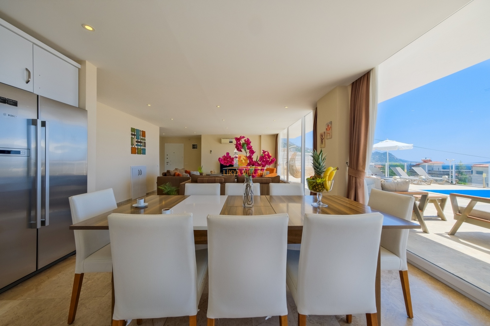 Villa in Kalkan mit Meerblick, beheizter privater Pool, 4 Schlafzimmer, 4 Bäder, Whirlpool, 2 Etagen
