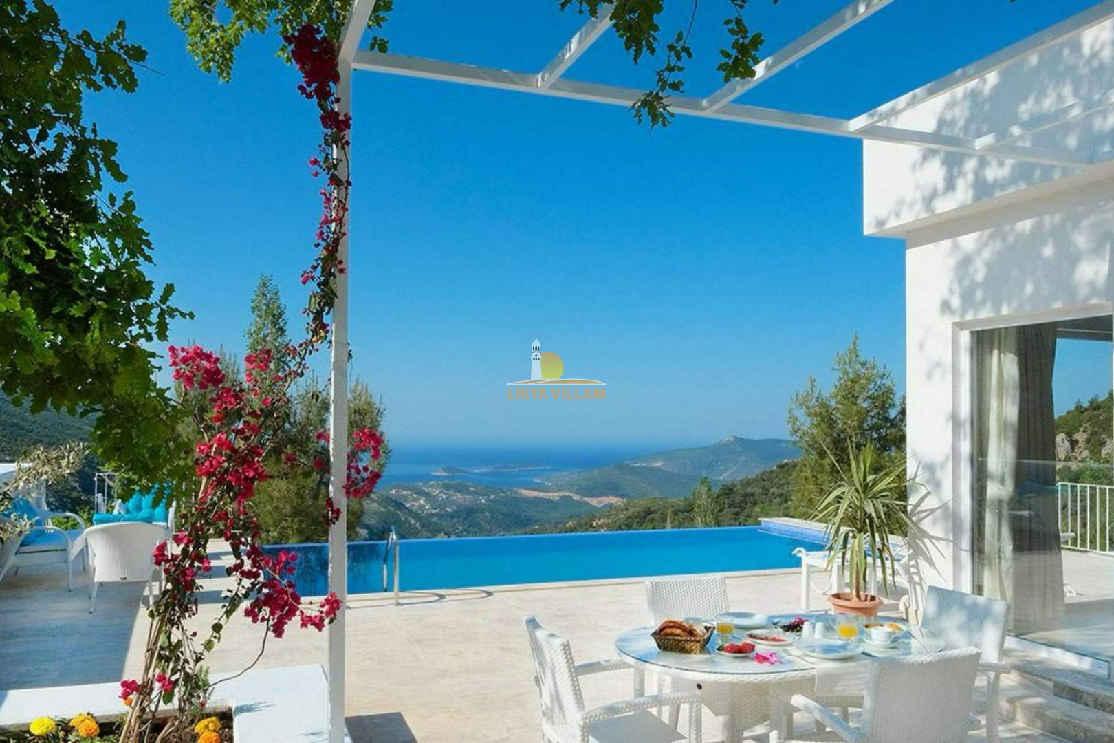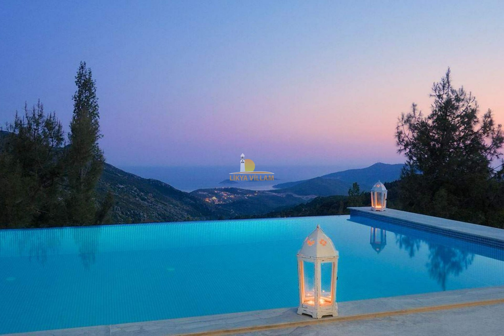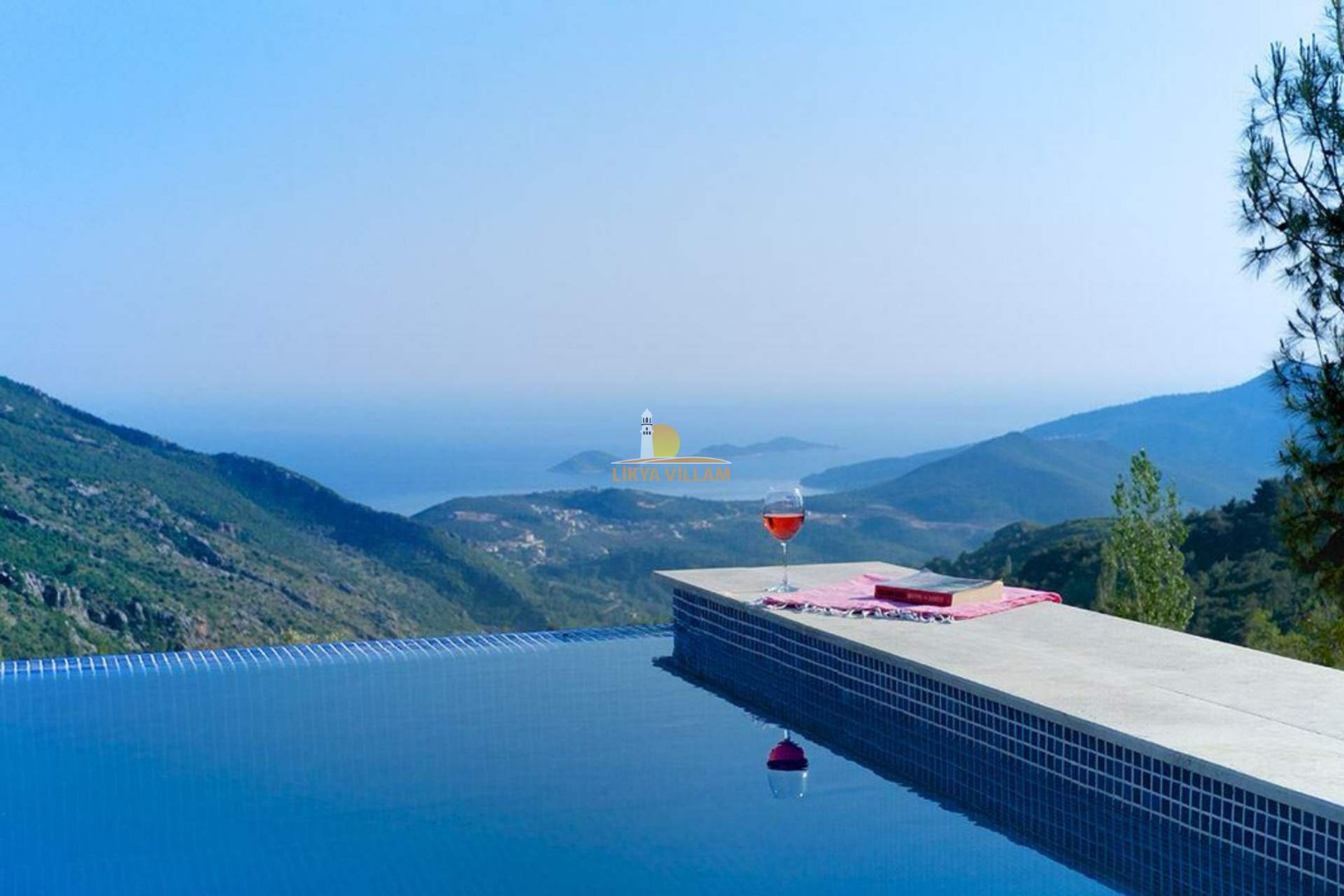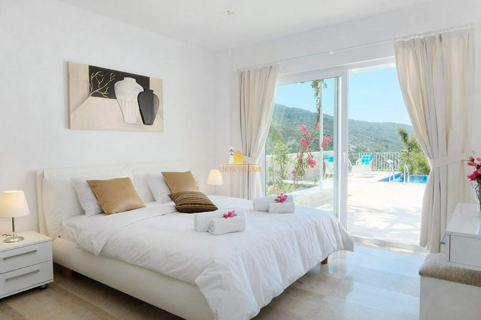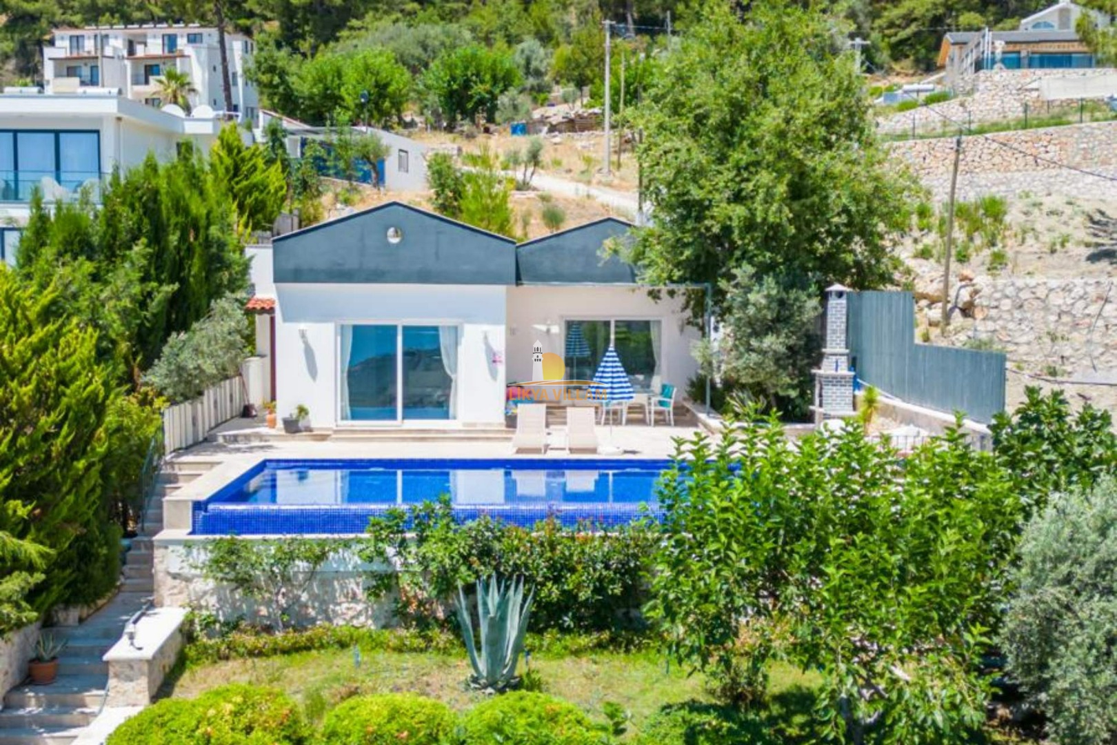 Villa in Kalkan mit Meerblick, privater Pool, 1 Schlafzimmer, 1 Bad, Poolterrasse, ideal für 2 Personen