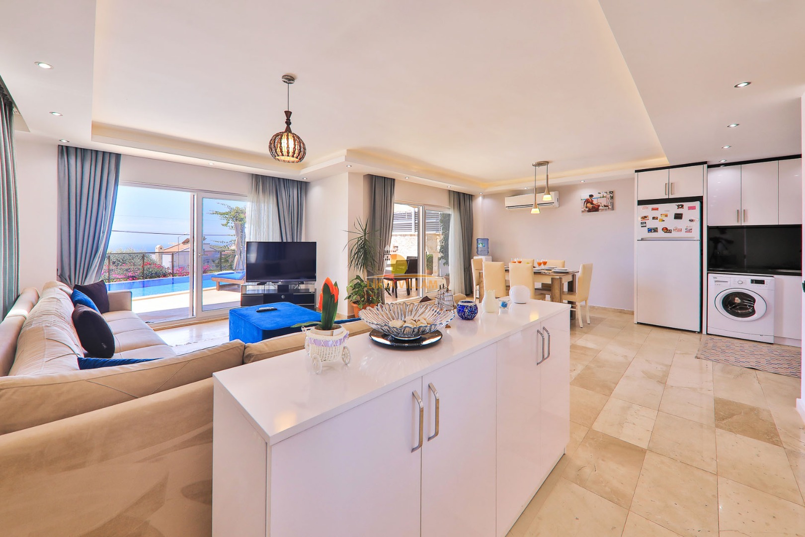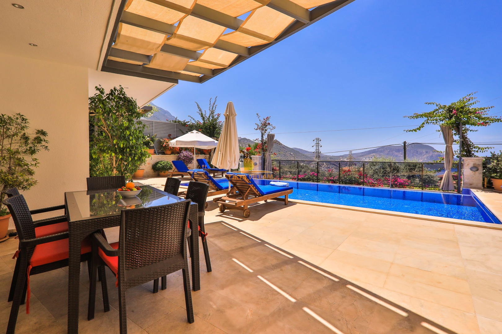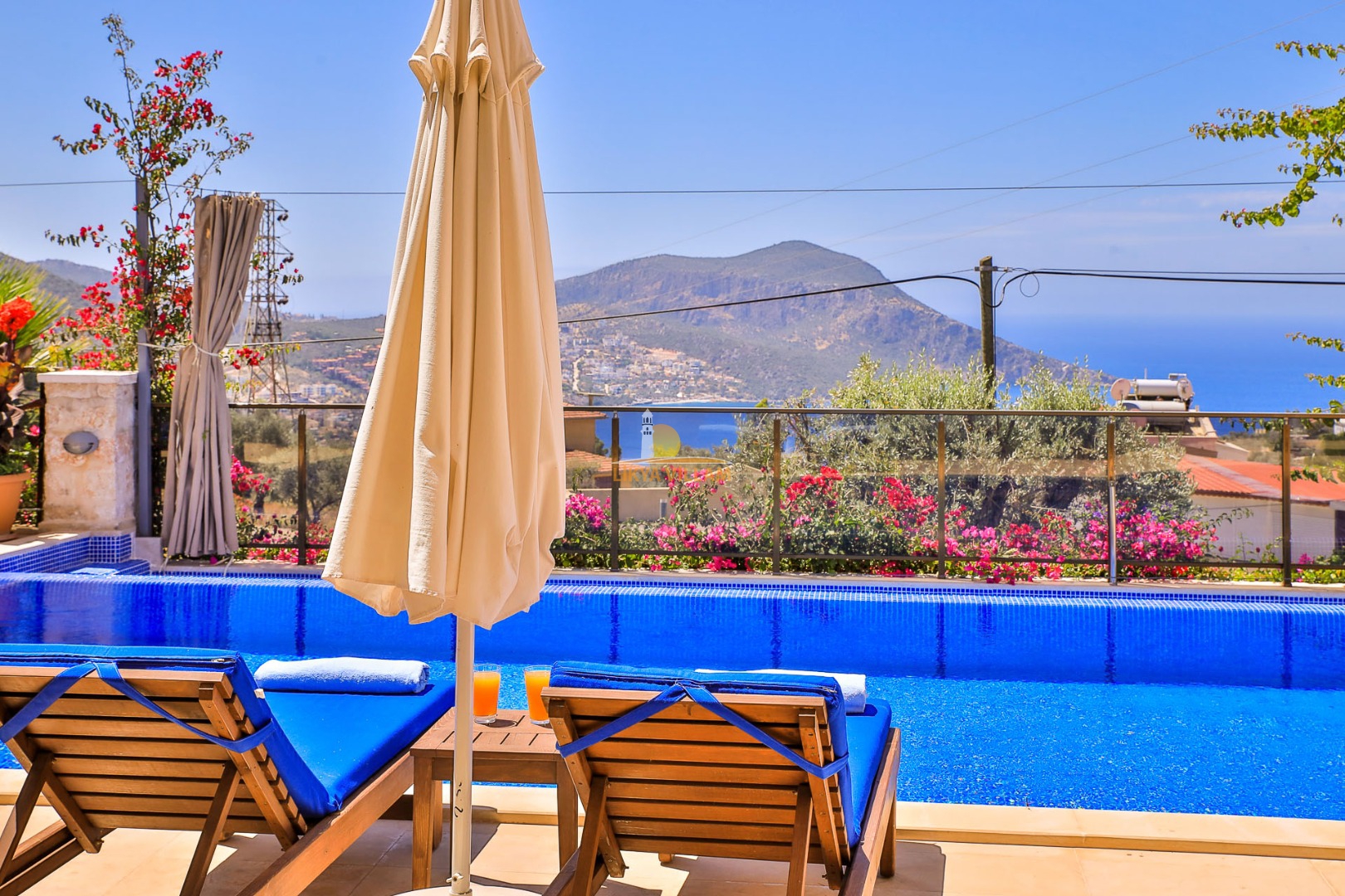 Villa in Kalkan mit Meerblick , privater Pool, 3 Schlafzimmer, 3 Bäder, Whirlpool, 3 Etagen, zentral