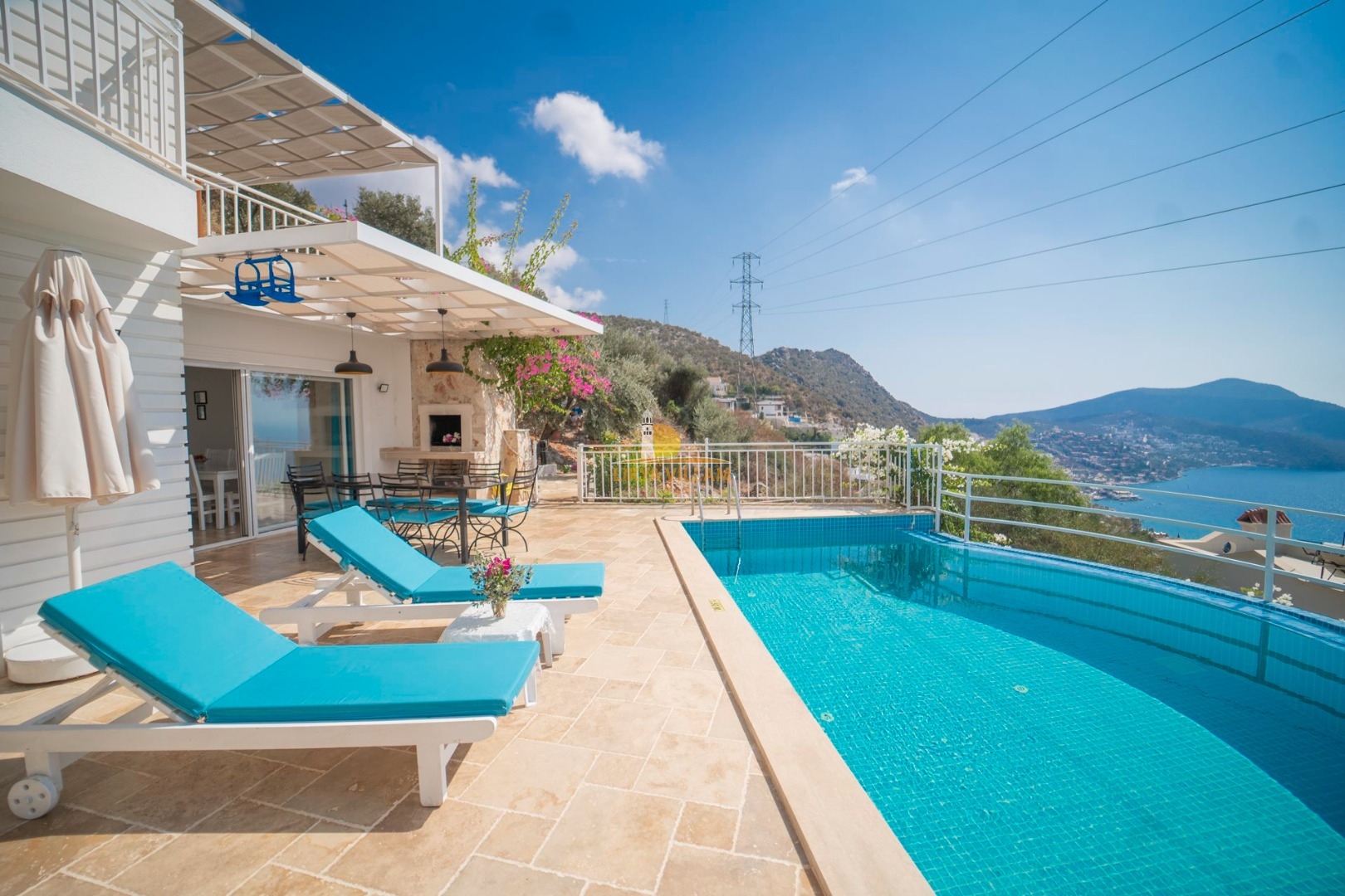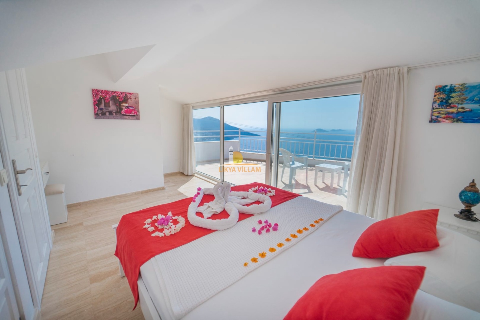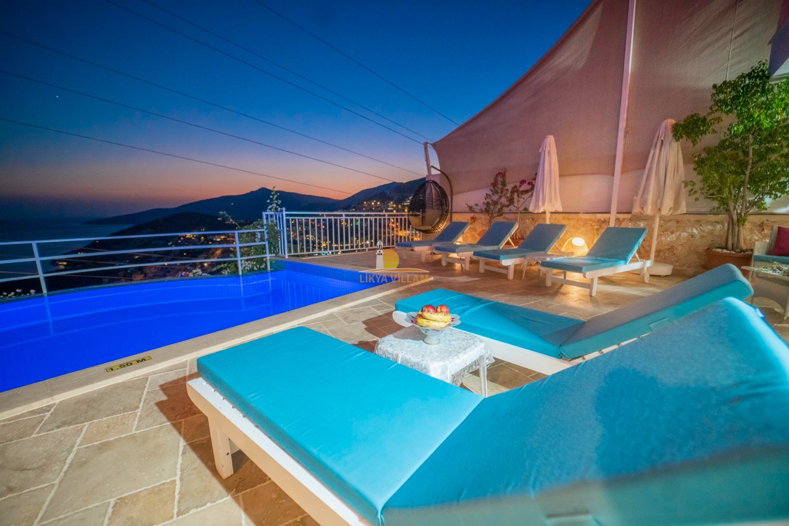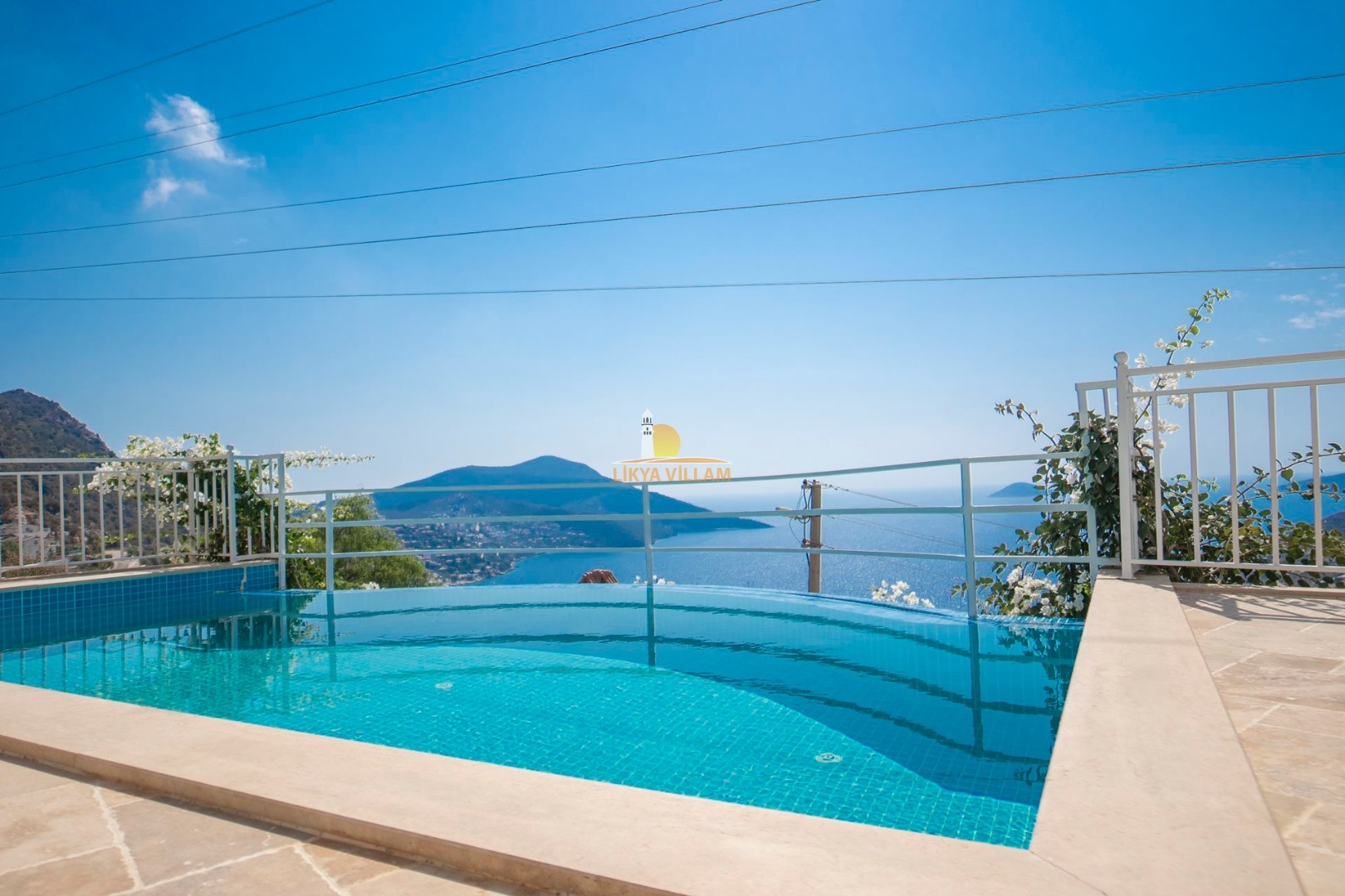 Villa in Kalkan mit Meerblick, privater Pool, 5 Schlafzimmer, 5 Bäder, 4 Etagen, zentral, 10 Personen