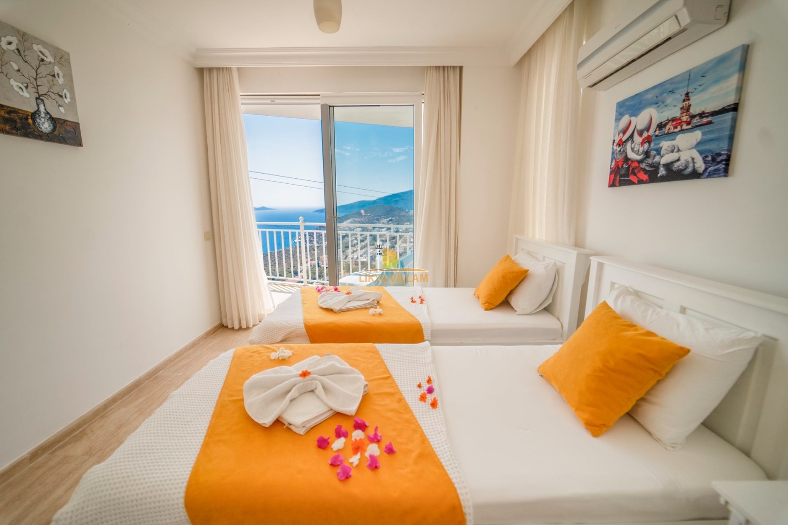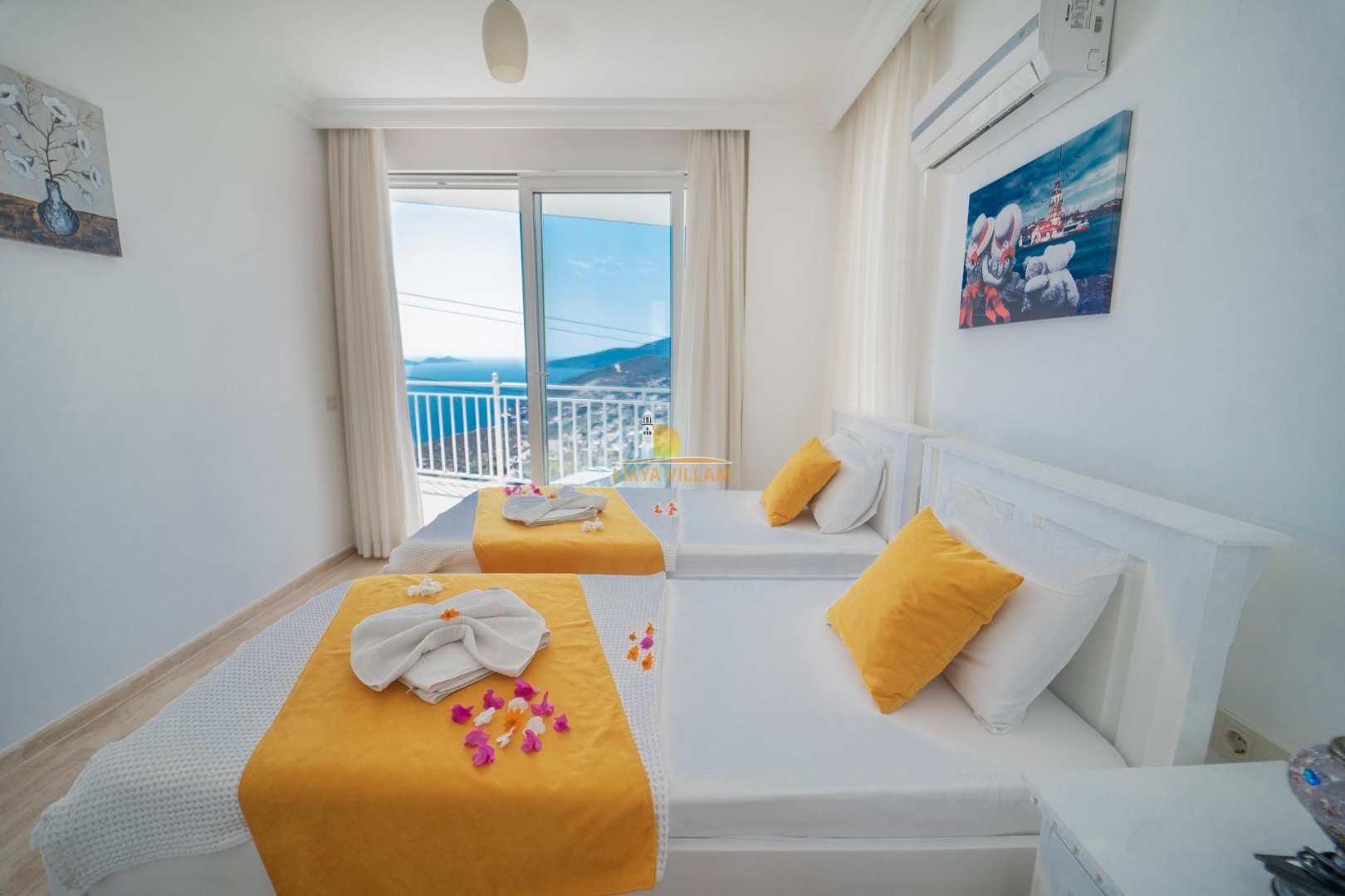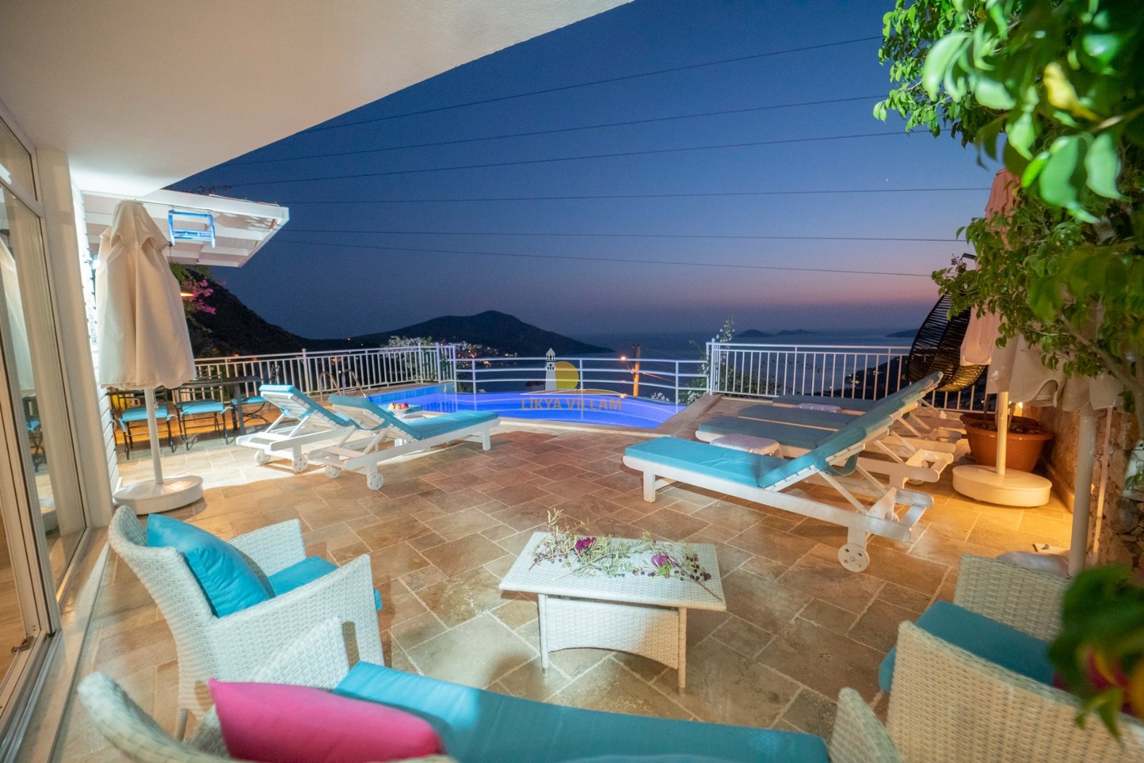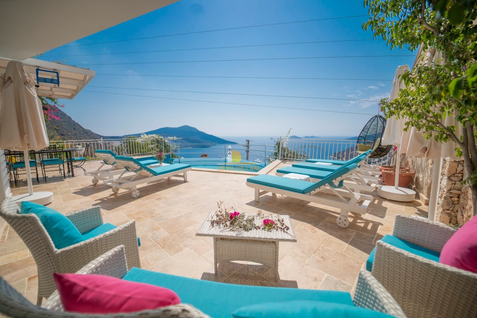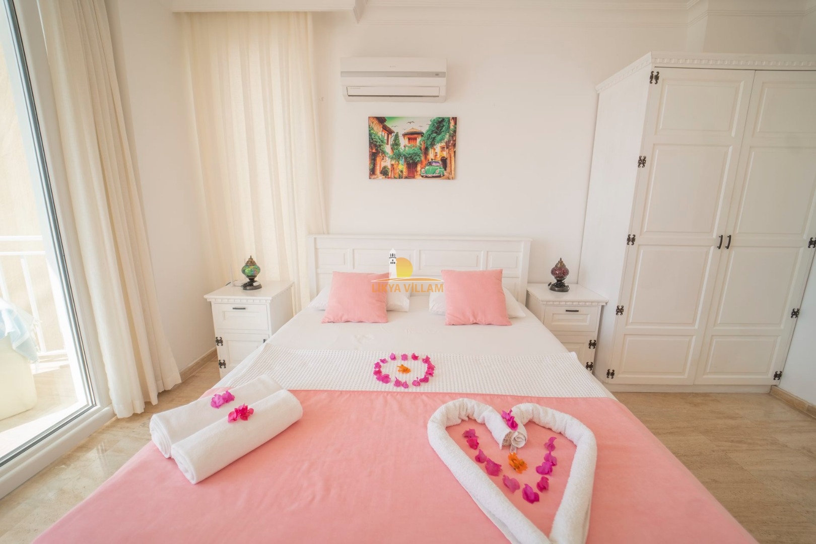 Villa in Kalkan mit Meerblick, privater Pool, 5 Schlafzimmer, 5 Bäder, 4 Etagen, zentral, 10 Personen