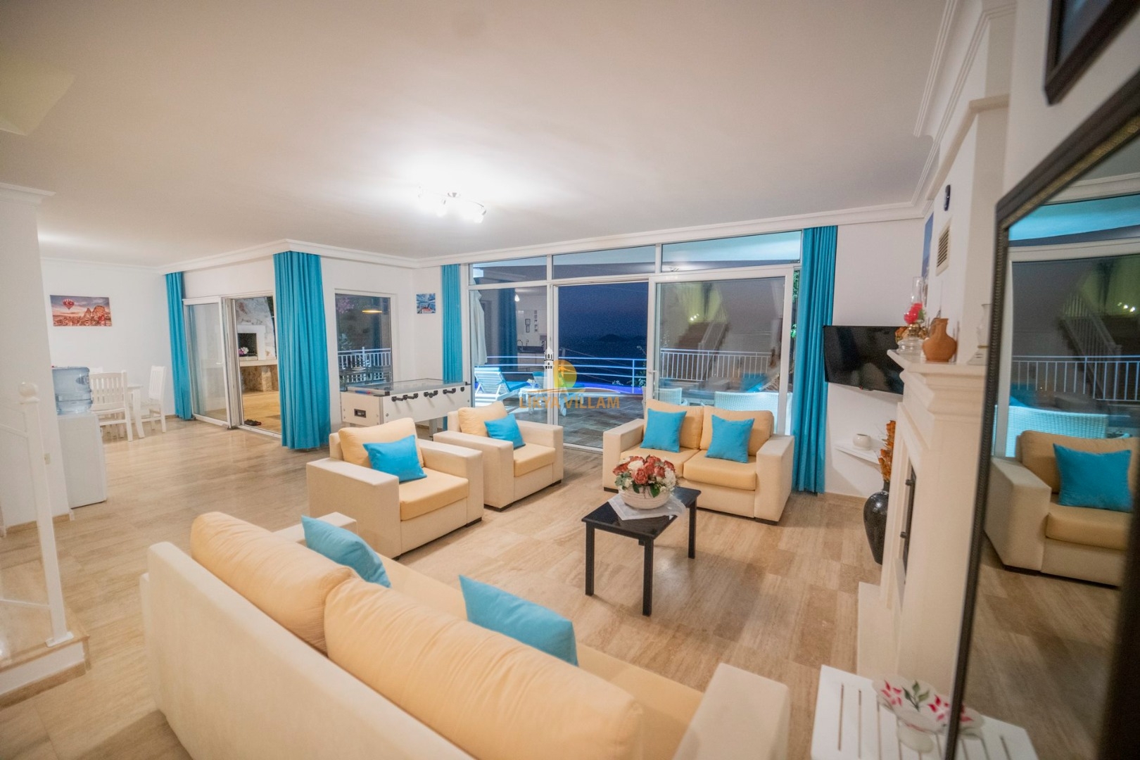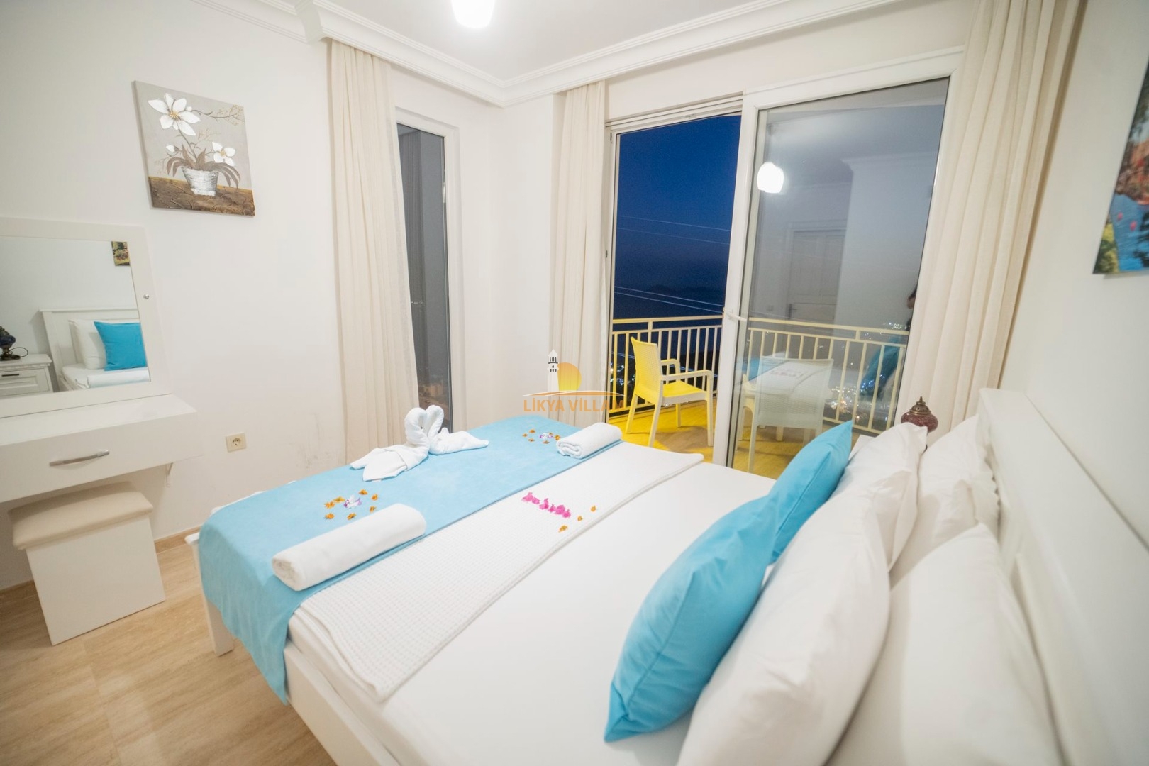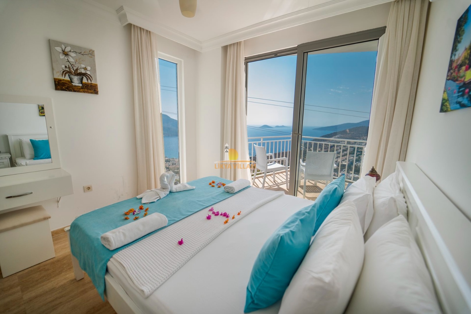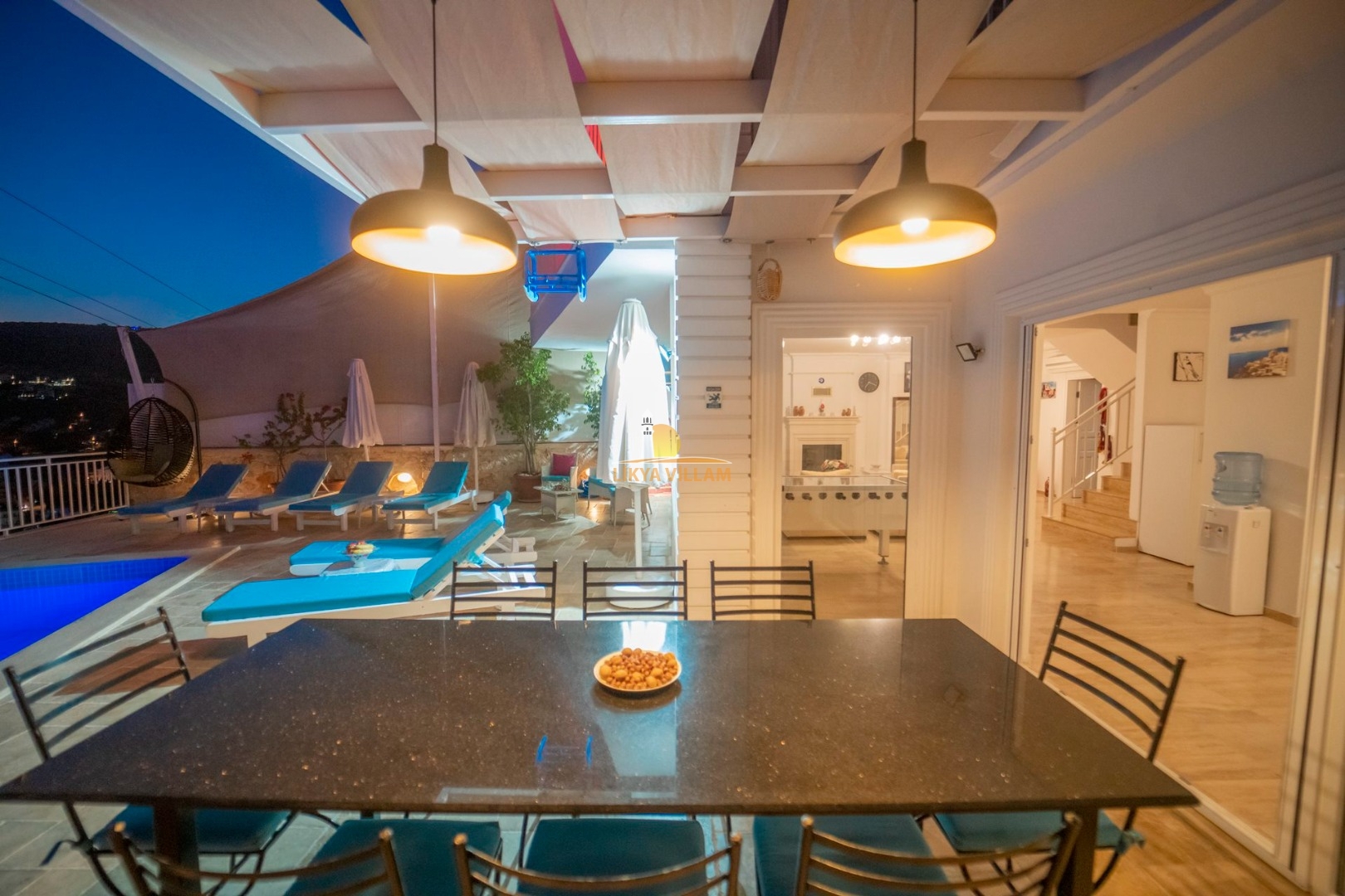 Villa in Kalkan mit Meerblick, privater Pool, 5 Schlafzimmer, 5 Bäder, 4 Etagen, zentral, 10 Personen
