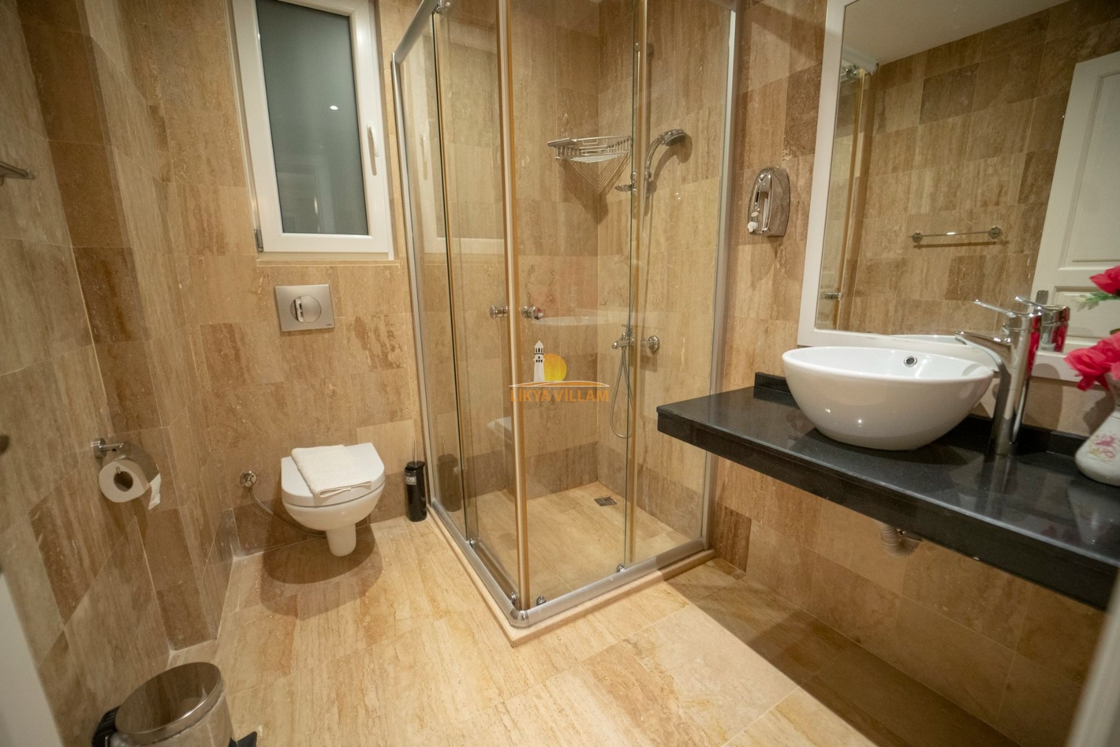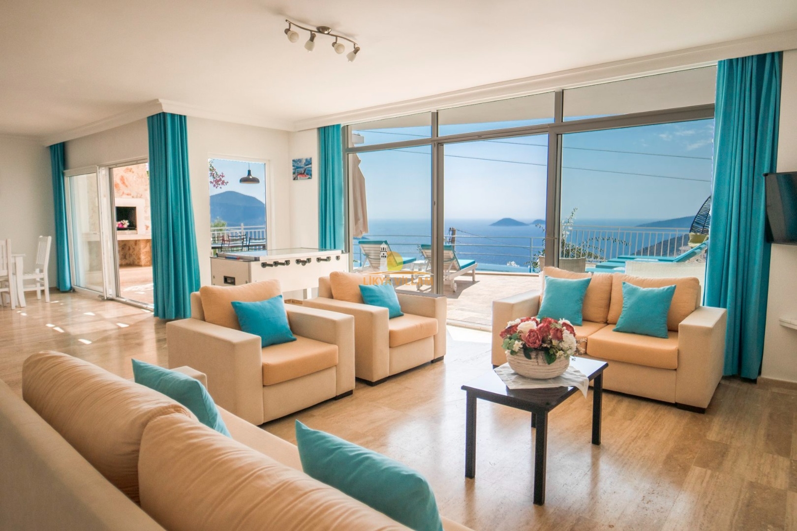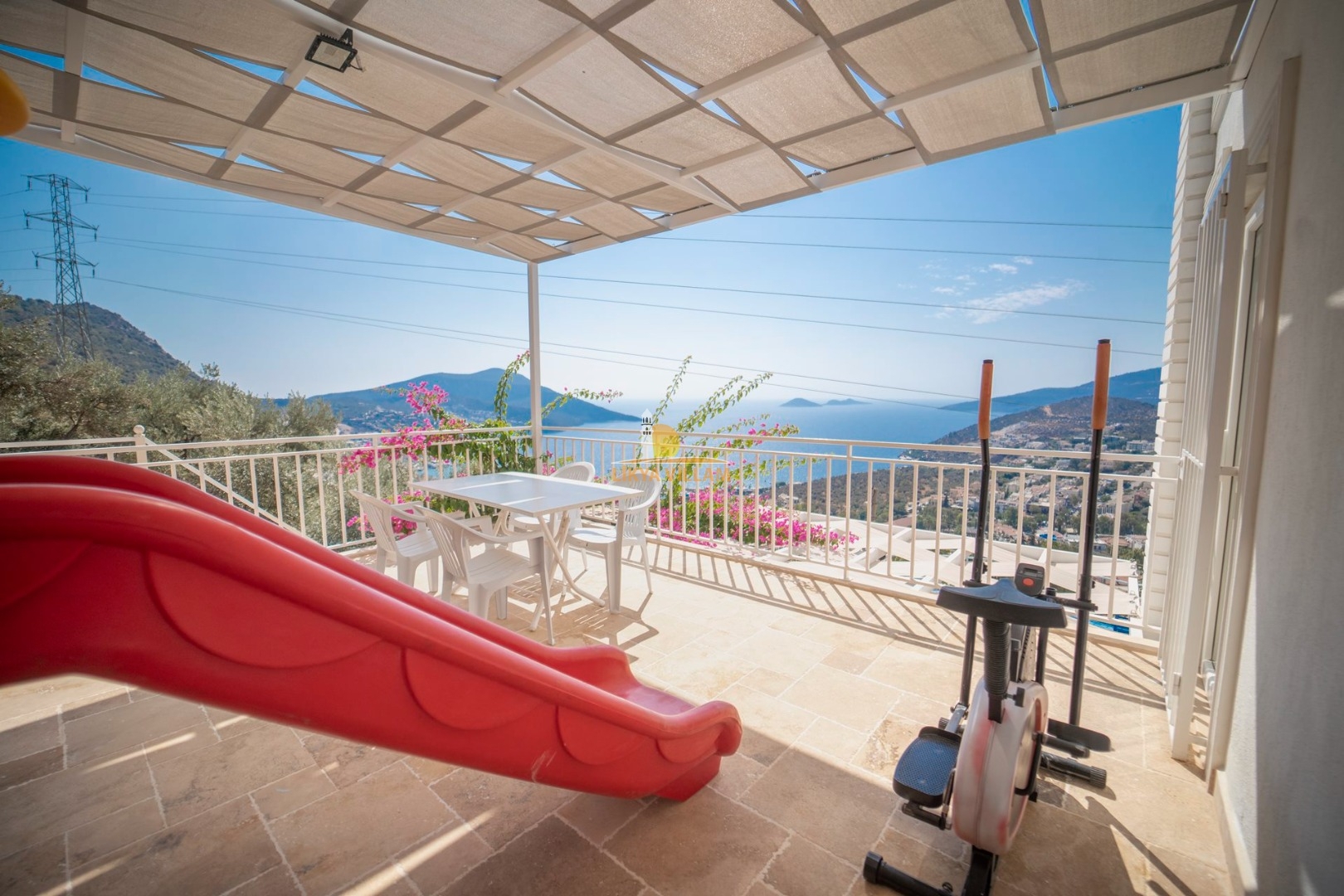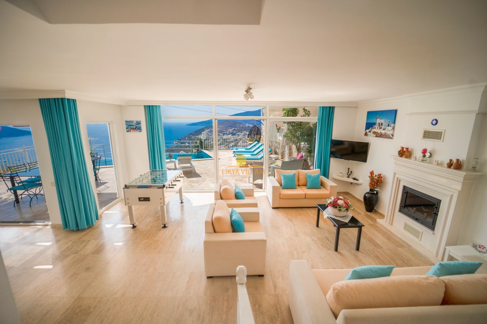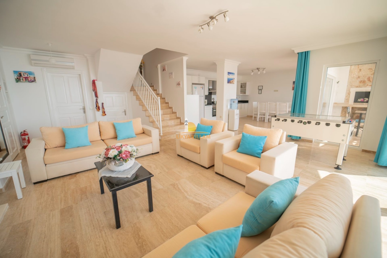 Villa in Kalkan mit Meerblick, privater Pool, 5 Schlafzimmer, 5 Bäder, 4 Etagen, zentral, 10 Personen