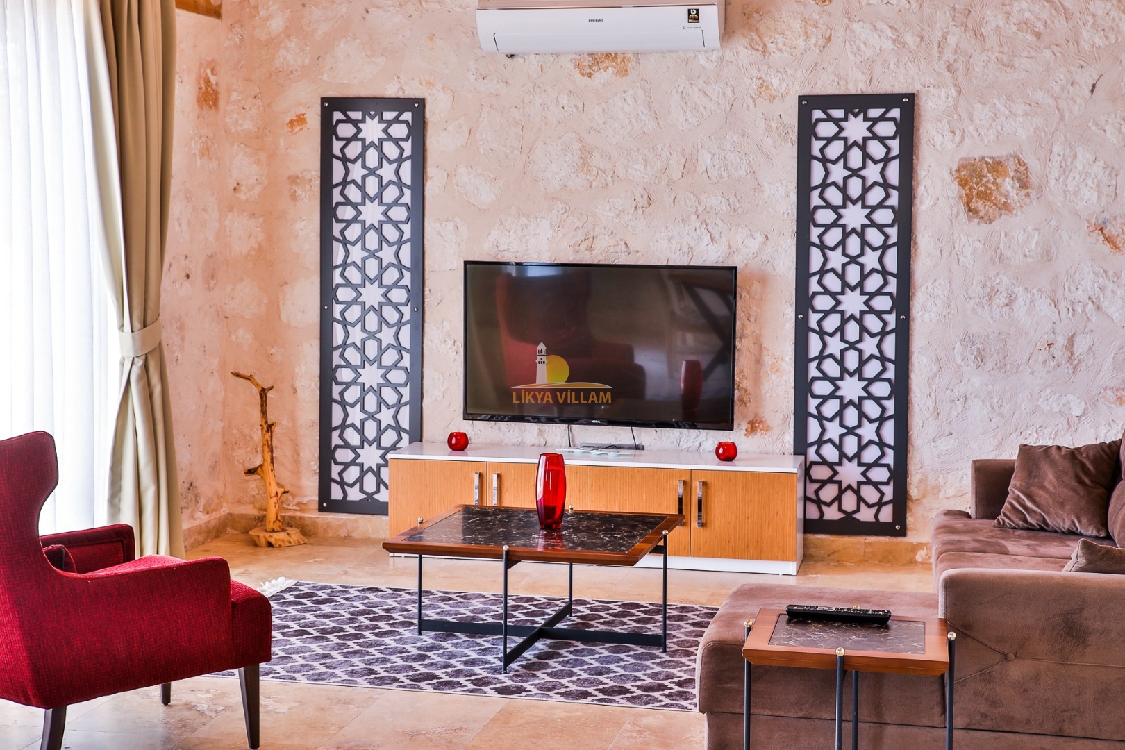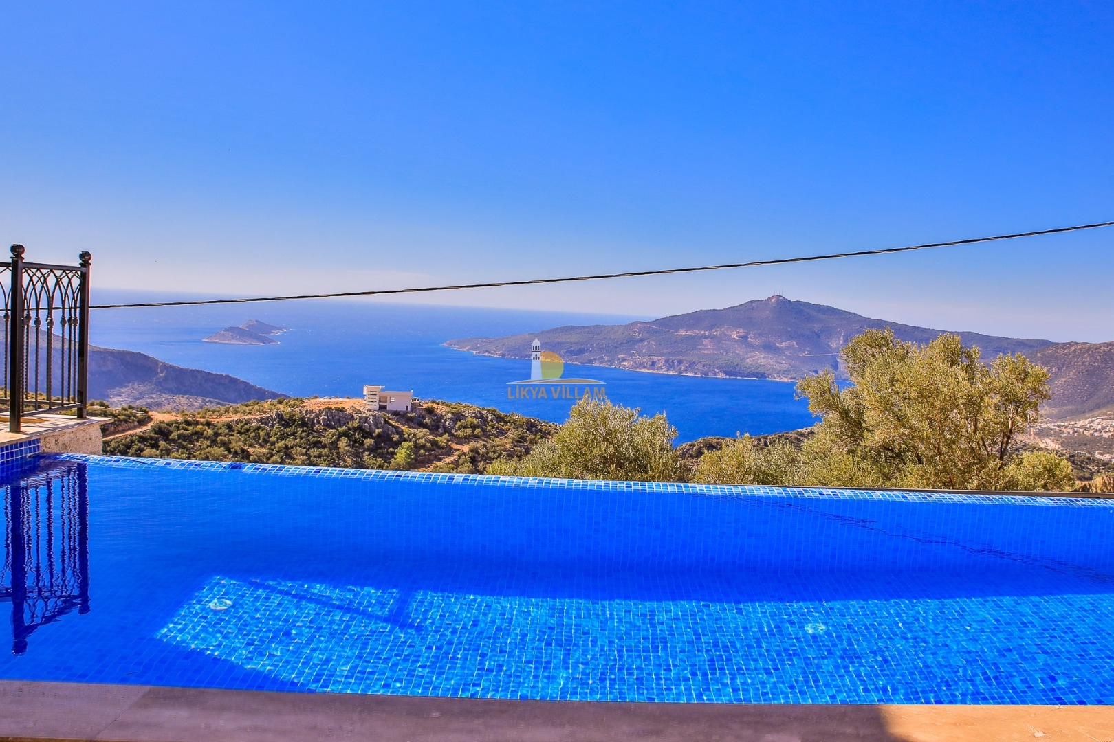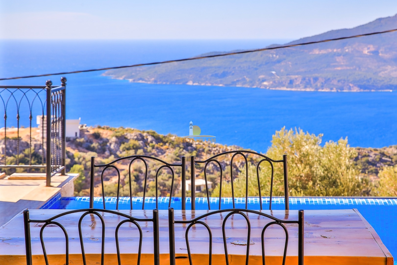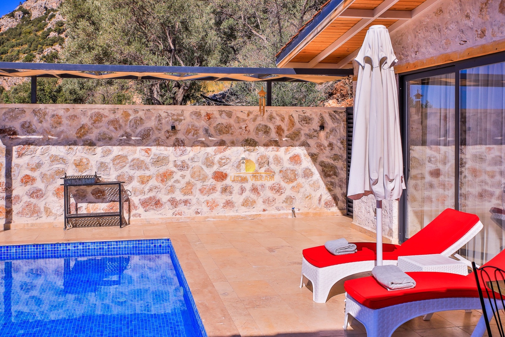 Villa in Kalkan mit Panoramablick, privater Pool, 1 Schlafzimmer, Innenpool, Whirlpool, zentral, ideal für 2 Personen