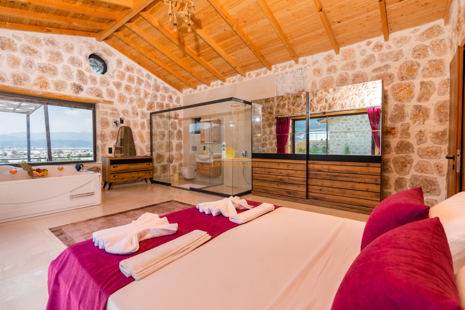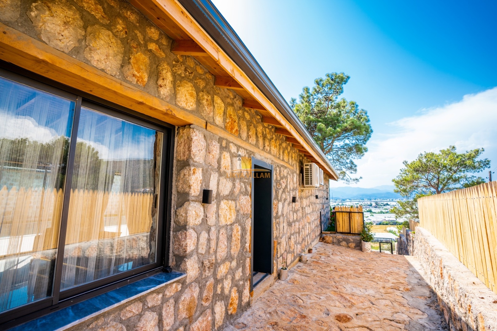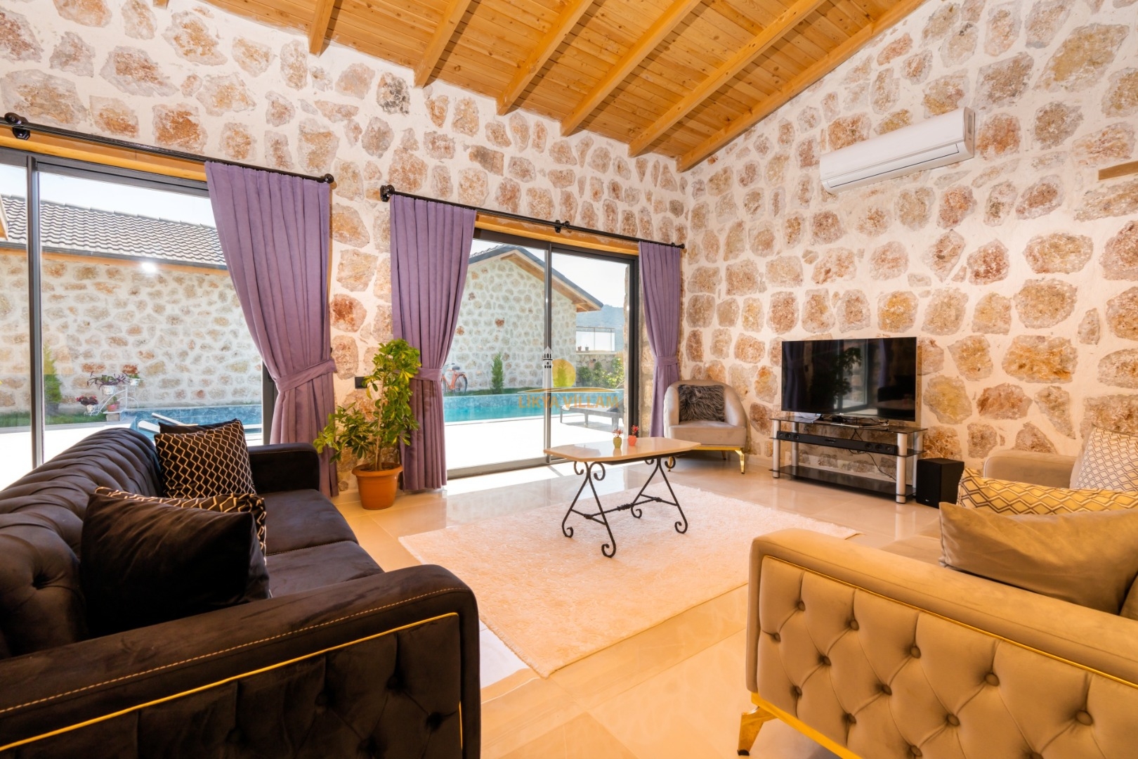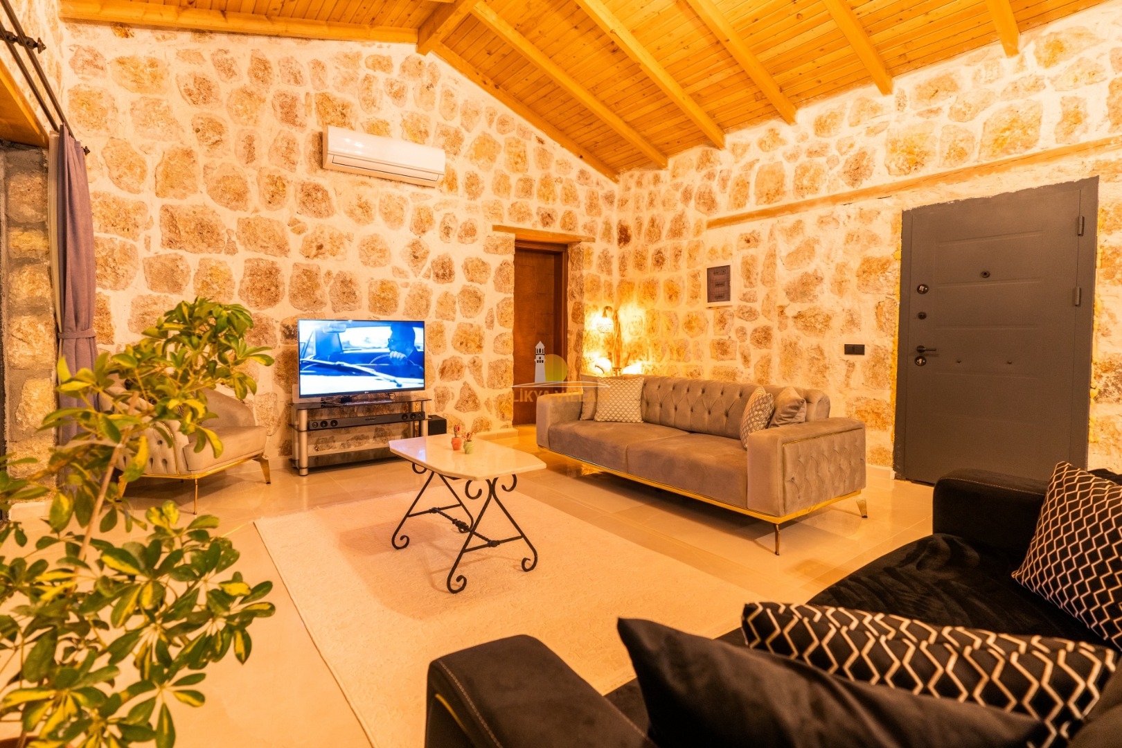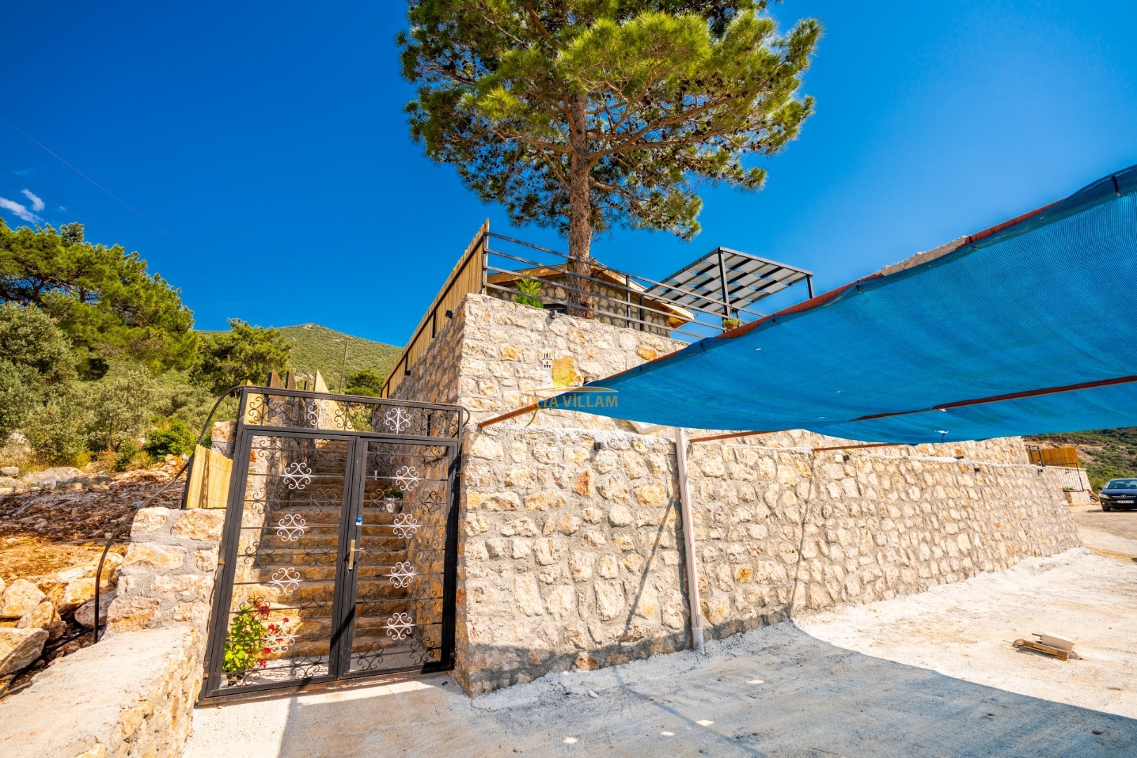 Villa mit privatem Pool in Kalkan / Yeşilköy, in moderner Steinarchitektur für 5 Gäste (1 Schlafzimmer mit Doppelbett und Einzelbett.)