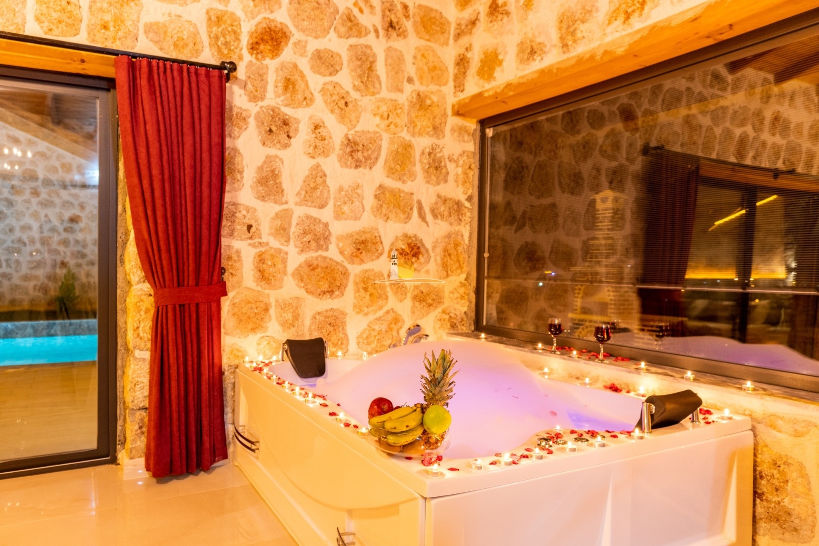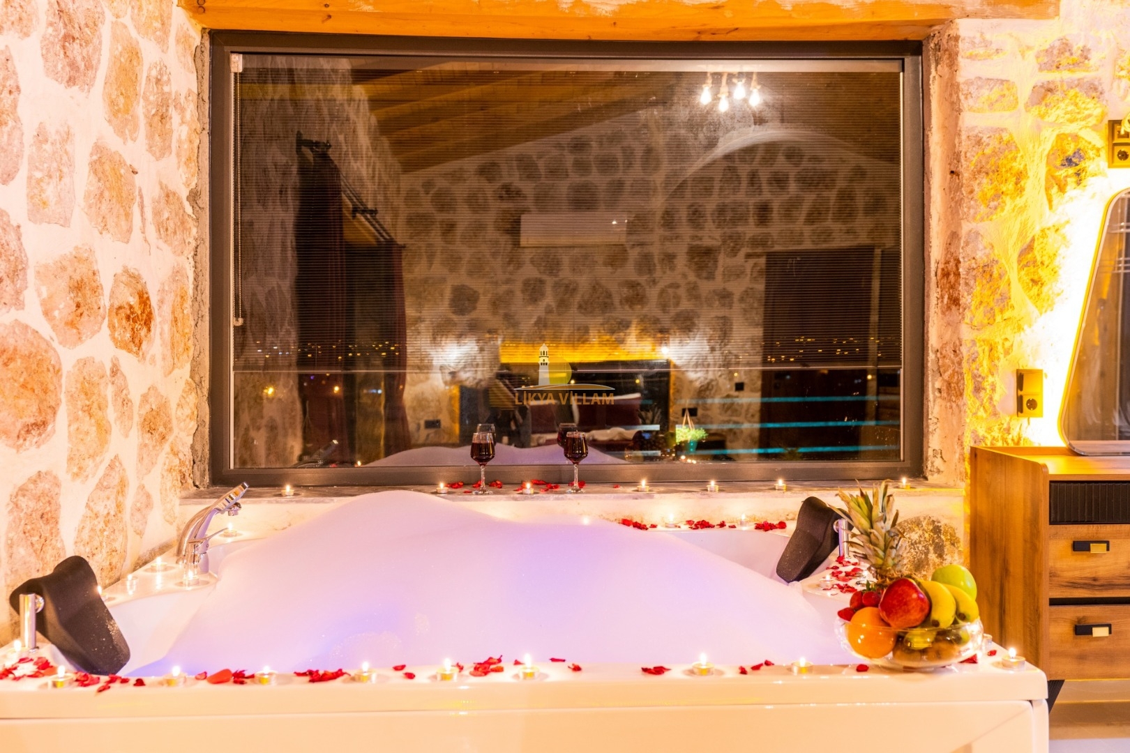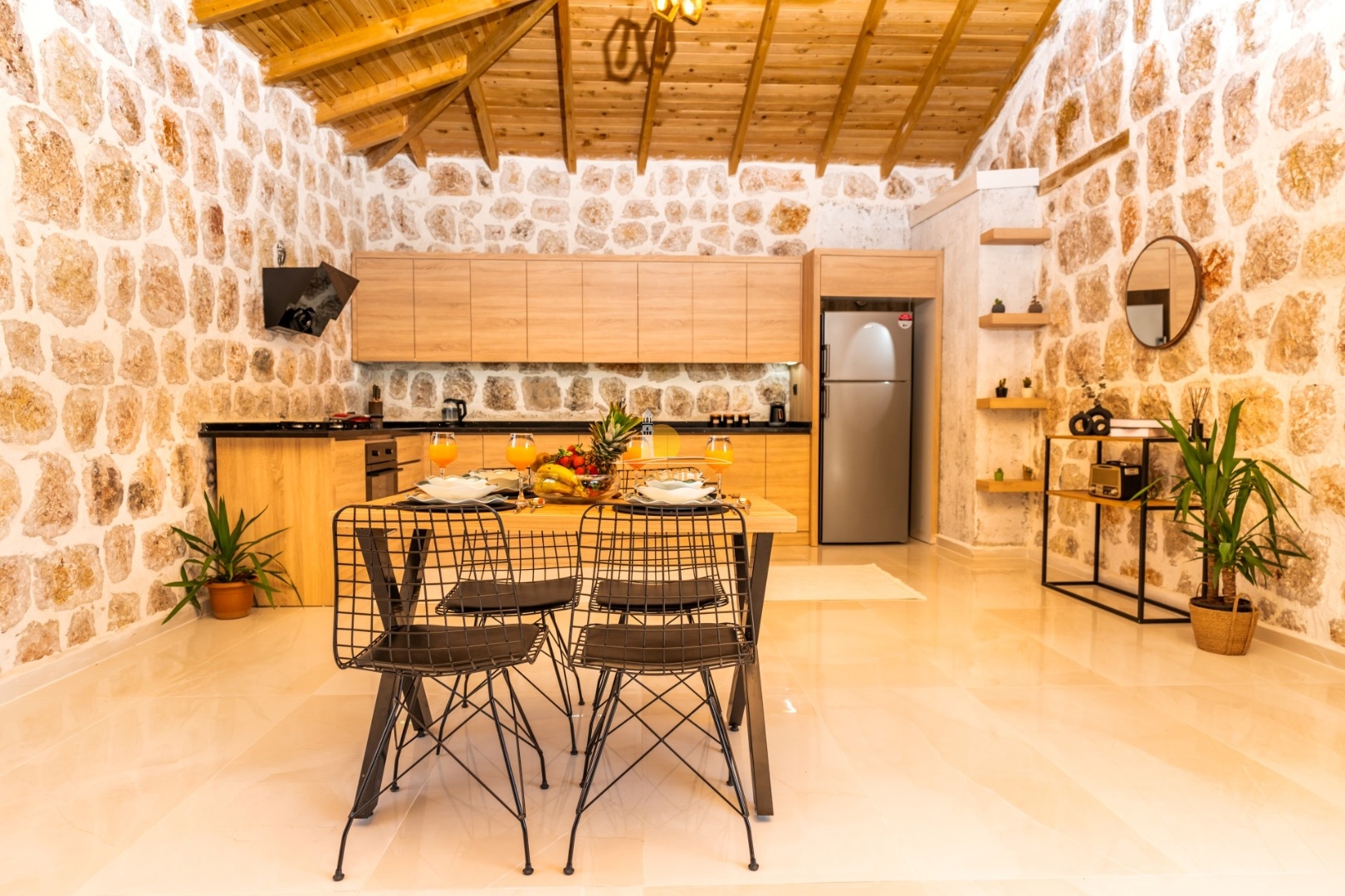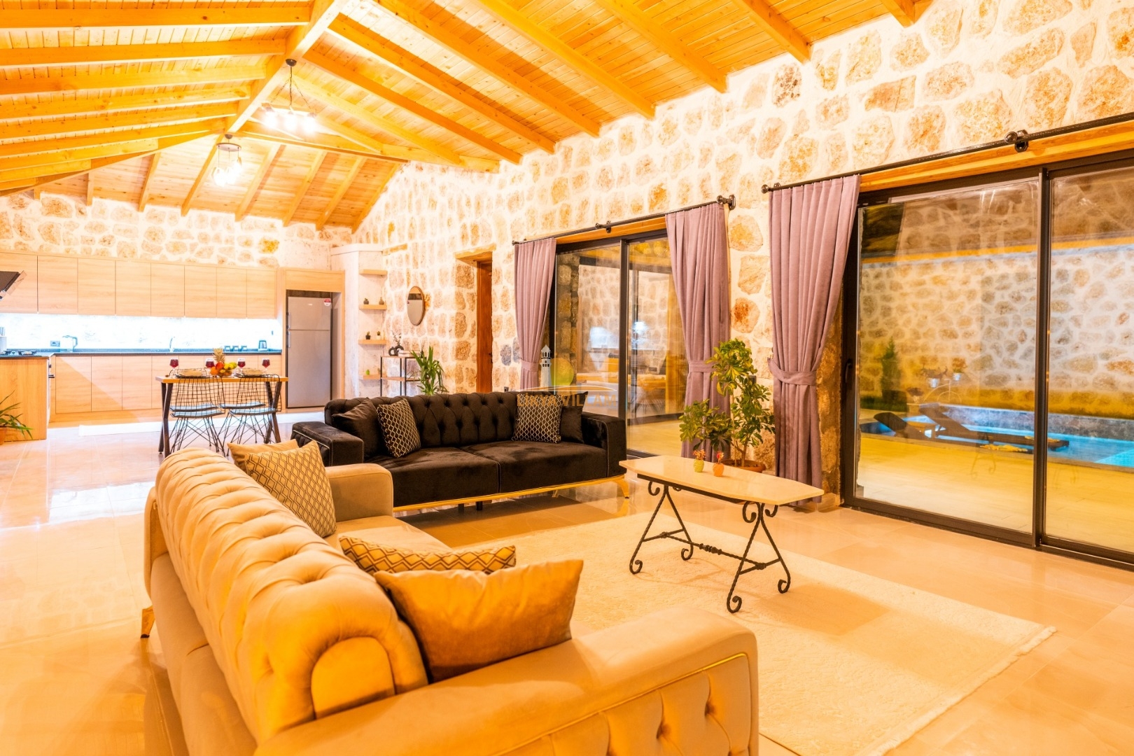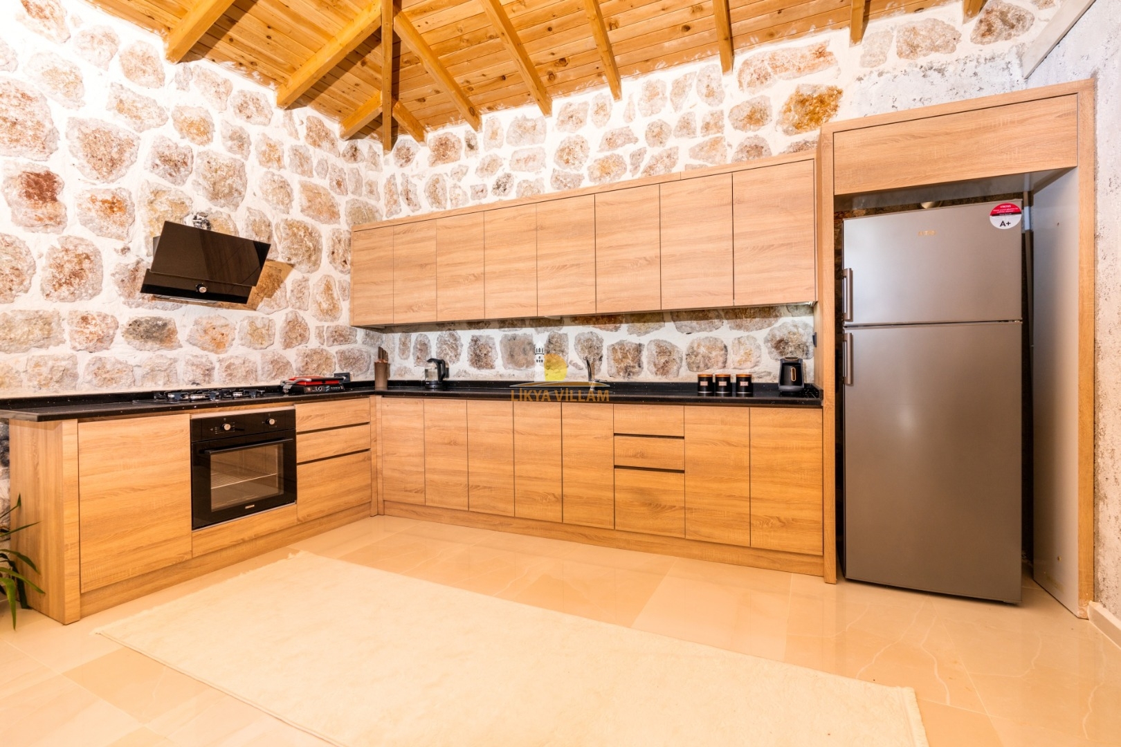 Villa mit privatem Pool in Kalkan / Yeşilköy, in moderner Steinarchitektur für 5 Gäste (1 Schlafzimmer mit Doppelbett und Einzelbett.)