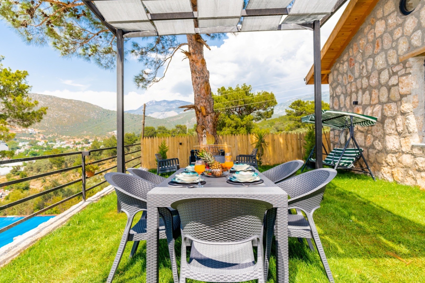 Villa oberhalb Kalkan, privater Pool, Bergblick, 2 Schlafzimmer, 2 Bäder, Whirlpool, Garten