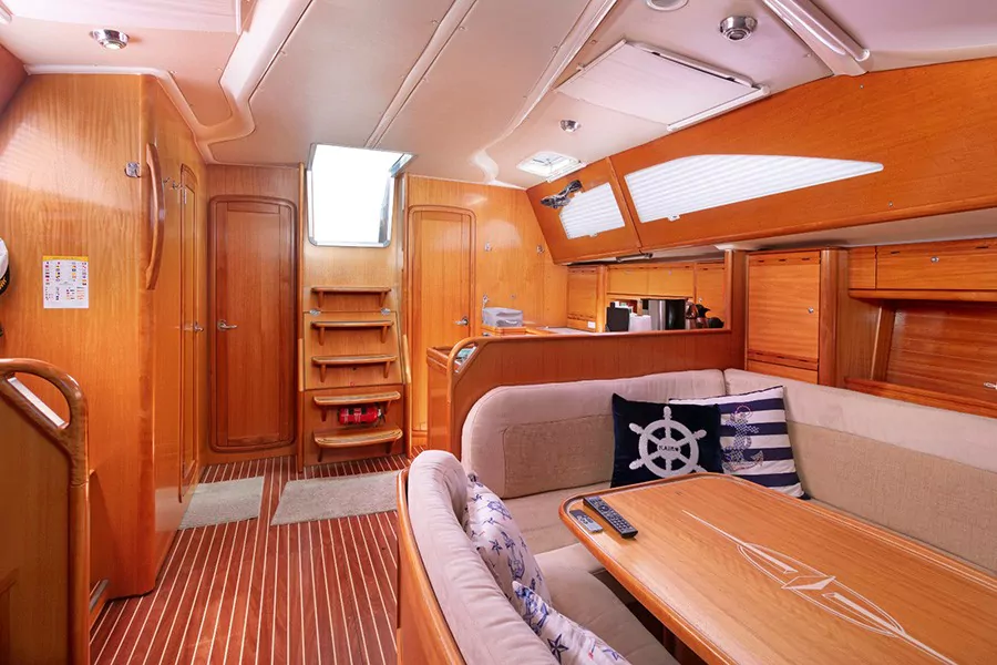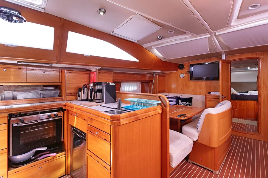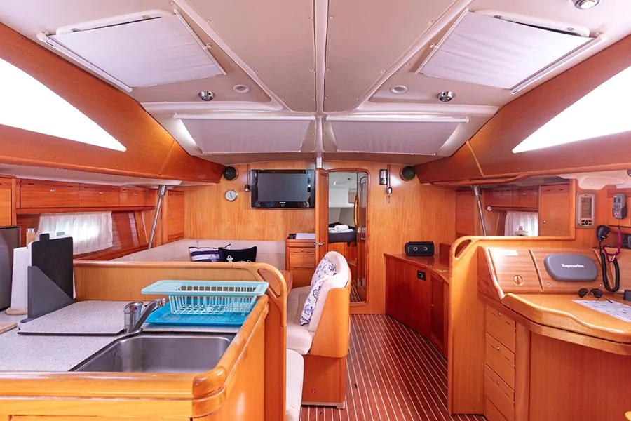 Sehr schöne 16 Meter Segelyacht der deutschen Werft Bavaria (Bootstyp Bavaria Vision 50). Hochwertige Teak-Holz Ausstattung mit 3 Kabinen und 2 Nasszellen.