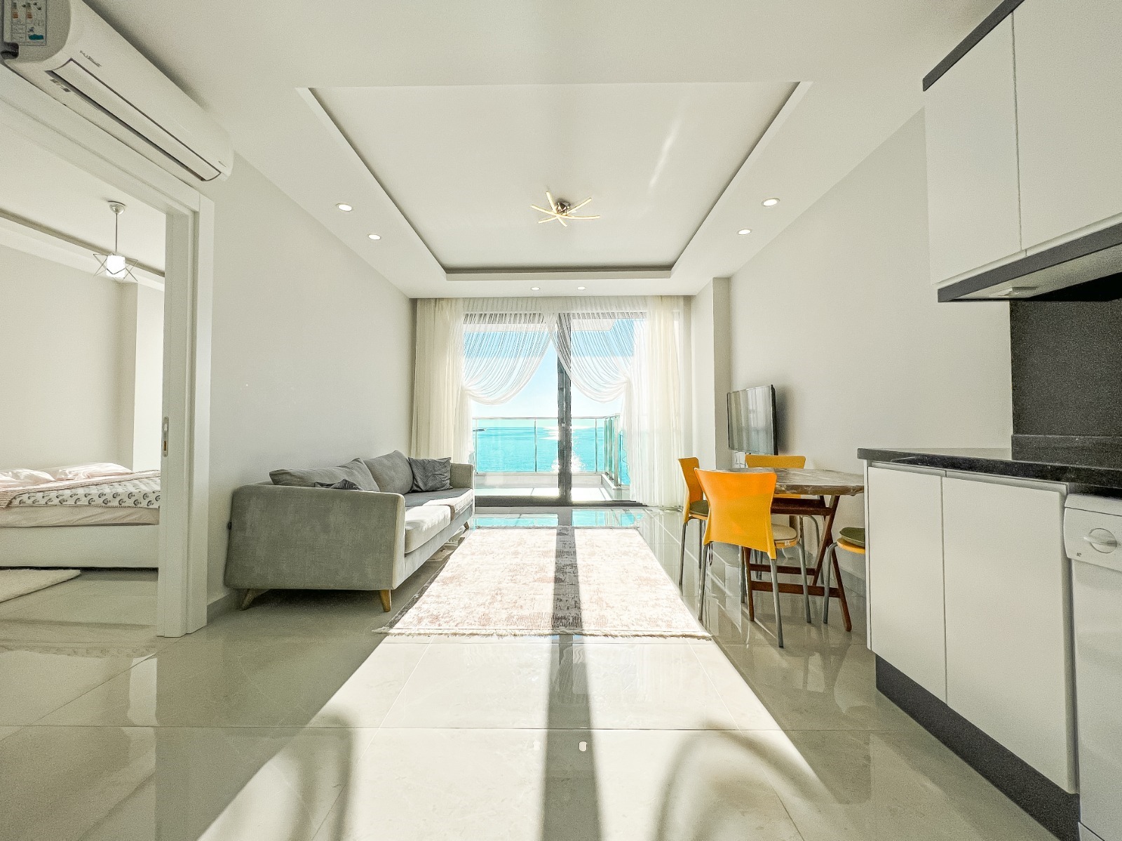 Apartment 65qm in Alanya mit Meerblick, 1 Schlafzimmer, 1 Bad, direkt am Meer, Wellnessbereich