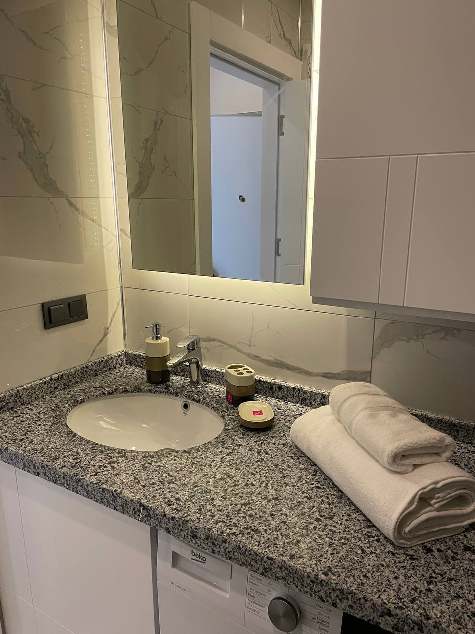 Apartment mit 1 Schlafzimmer, 1 Bad, 1 Wohnzimmer und amerikanischer Küche. Schlafsofa im Wohnzimmer. Geschirrspüler, Waschmaschine, Wlan, alle Zimmer mit Klimaanlage.