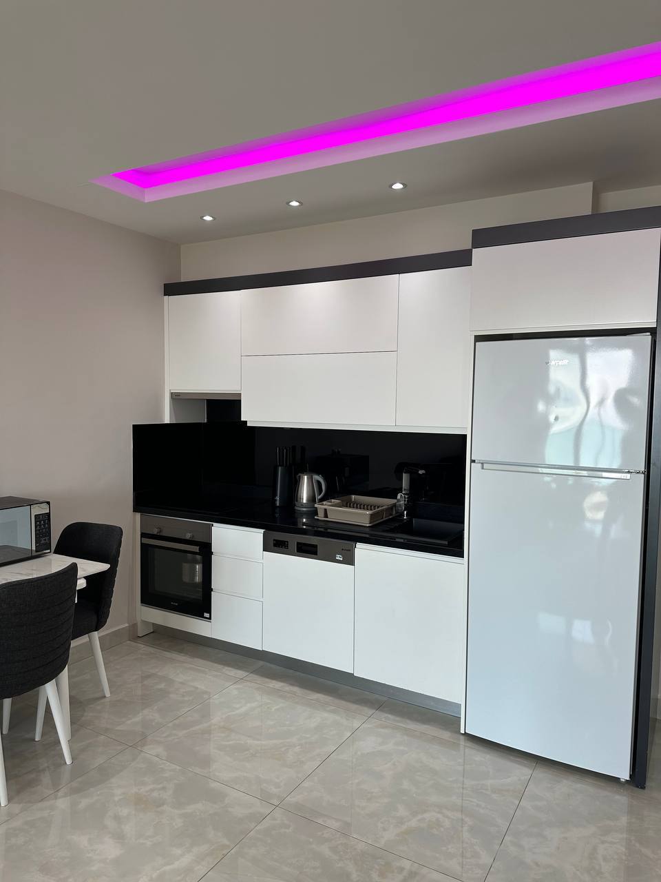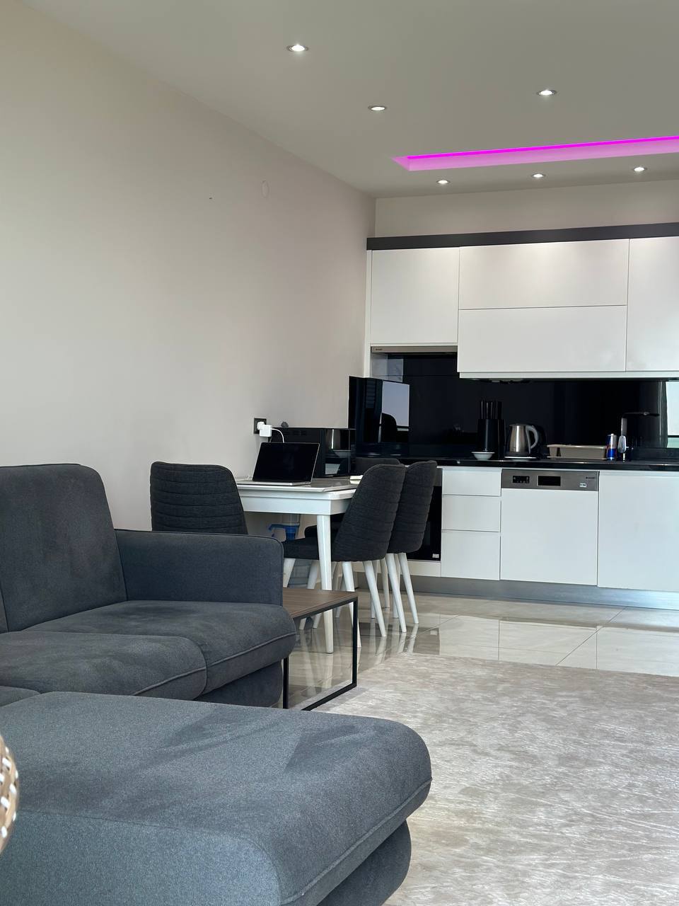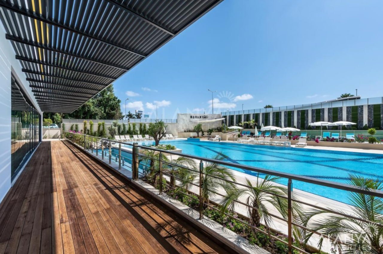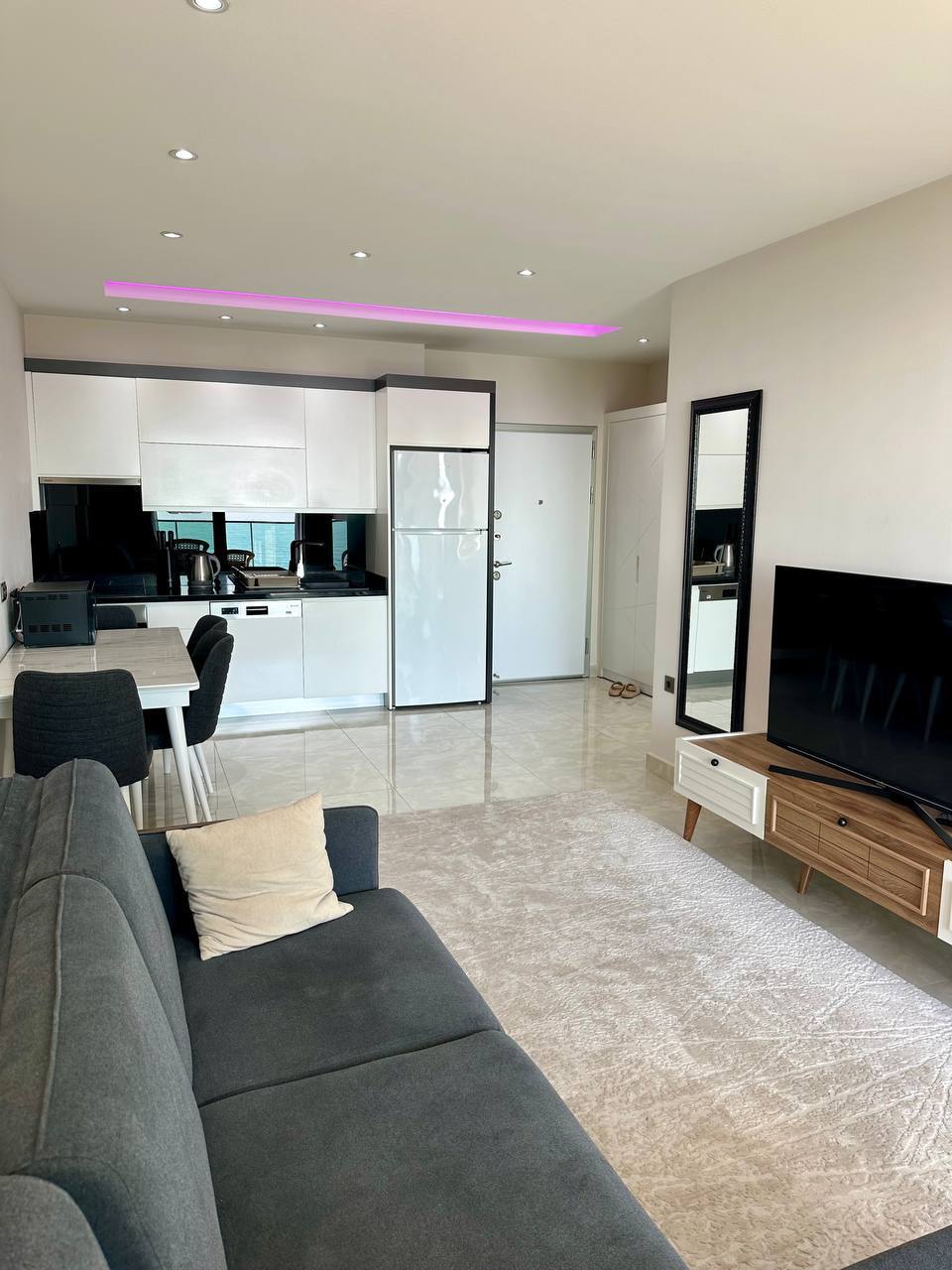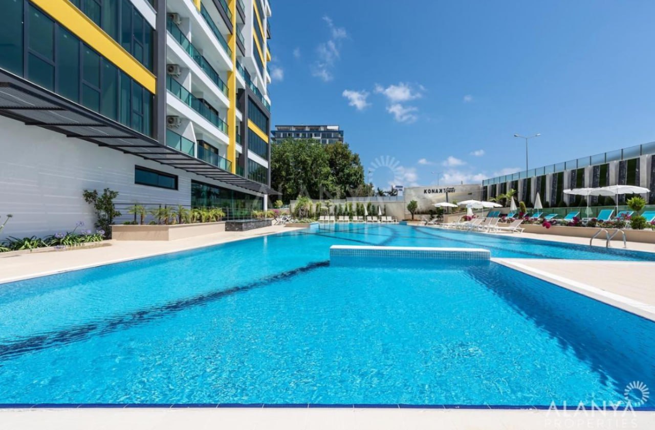 Apartment mit 1 Schlafzimmer, 1 Bad, 1 Wohnzimmer und amerikanischer Küche. In der Konak Tower Seaside Residence Alanya-Mahmutlar.
