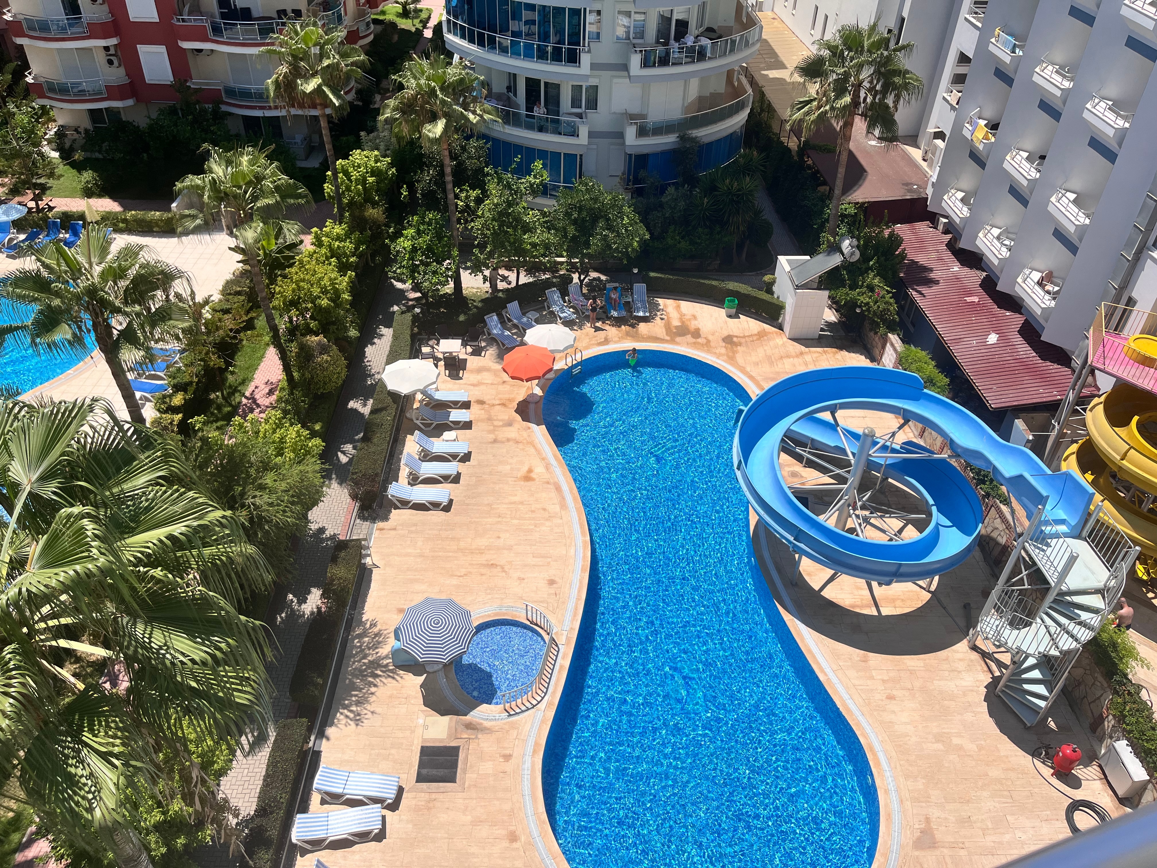 Zum Meer sind es nur 100 Meter. Eigener Weg mit Tunnel zum Strand. In der Anlage befindet sich auch ein grosser Pool mit Wasserrutschen usw.
