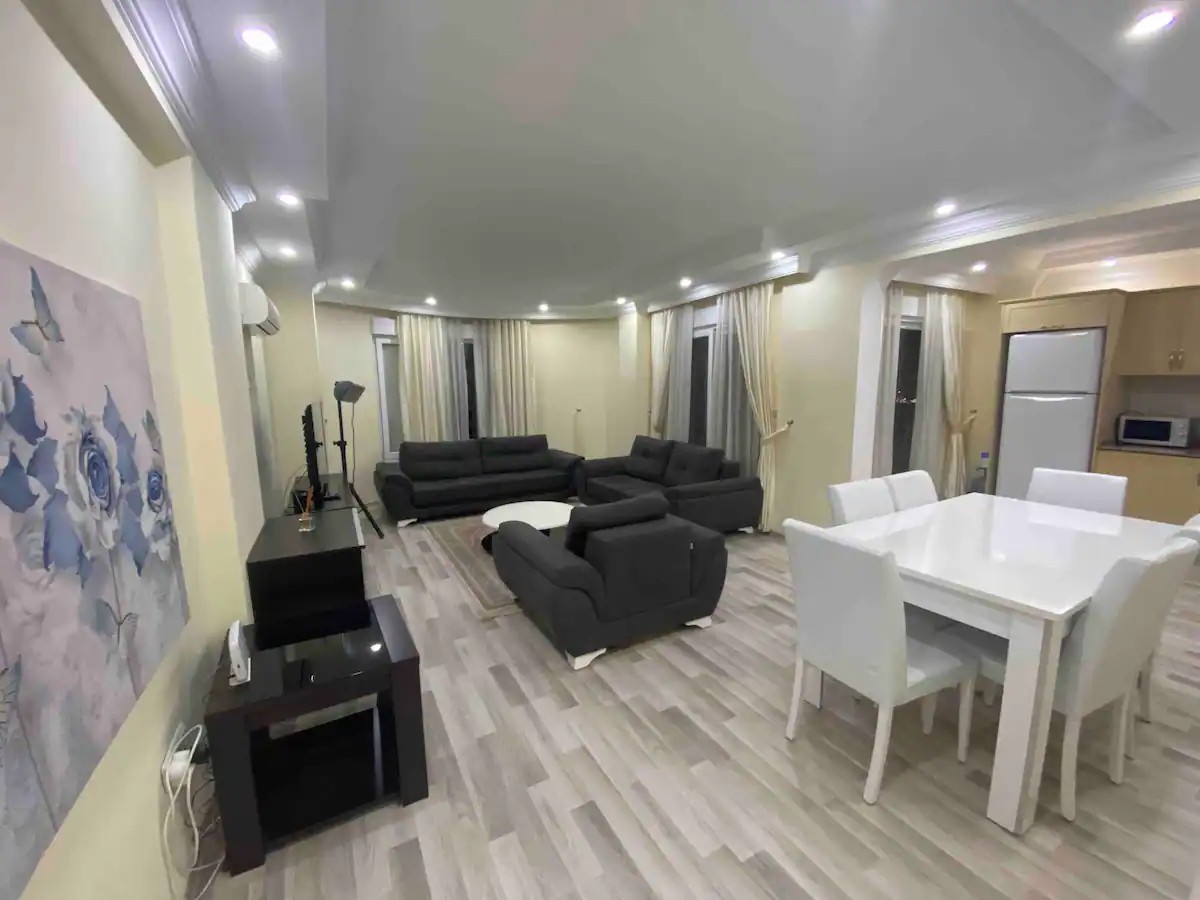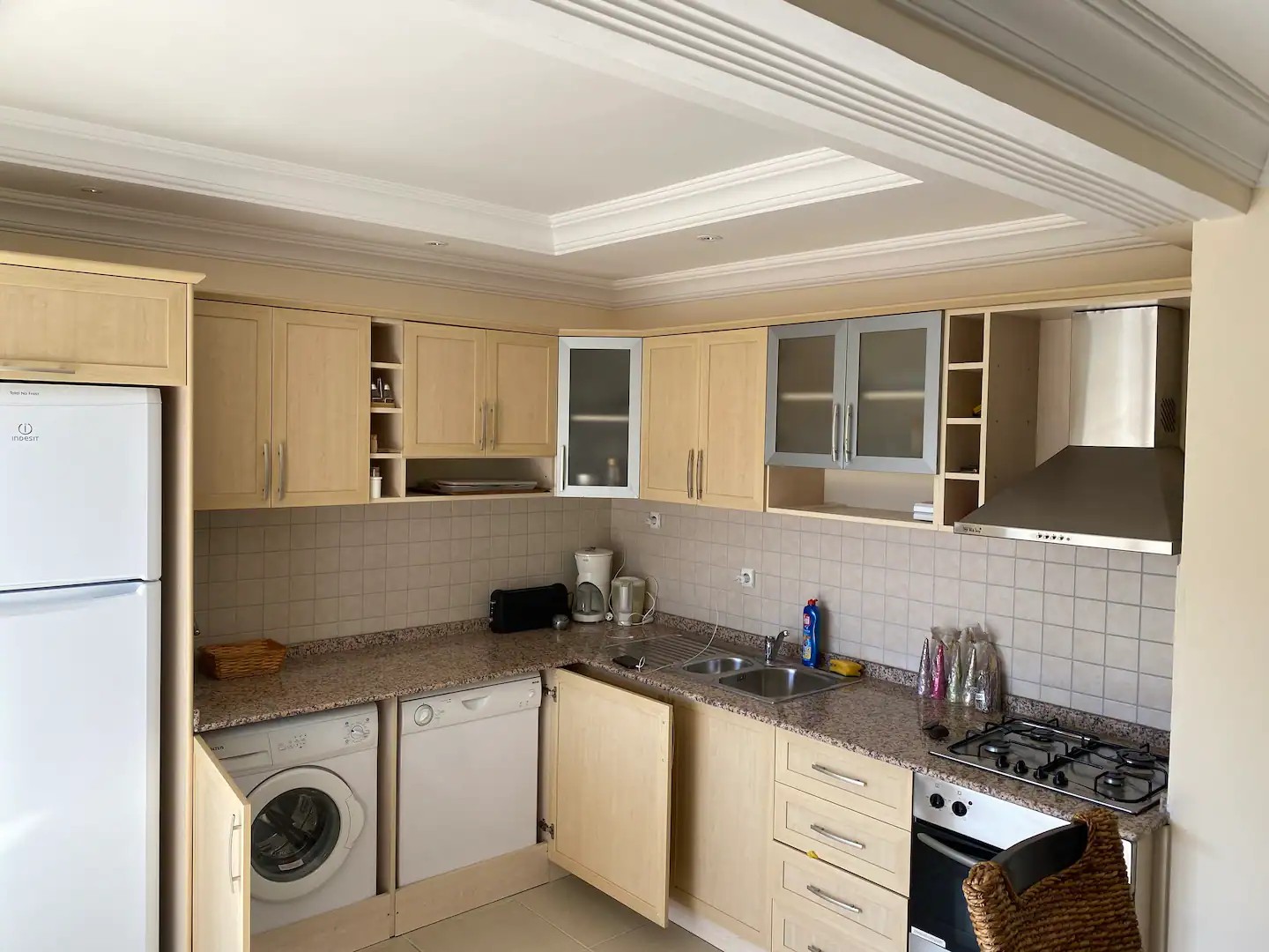 Klimaanlage in jedem Raum, Waschmaschine, Geschirrspüler, Wlan, Smart-TV, komplett ausgestattete Küche, Bettwäsche, Schlafcouch im Wohnzimmer