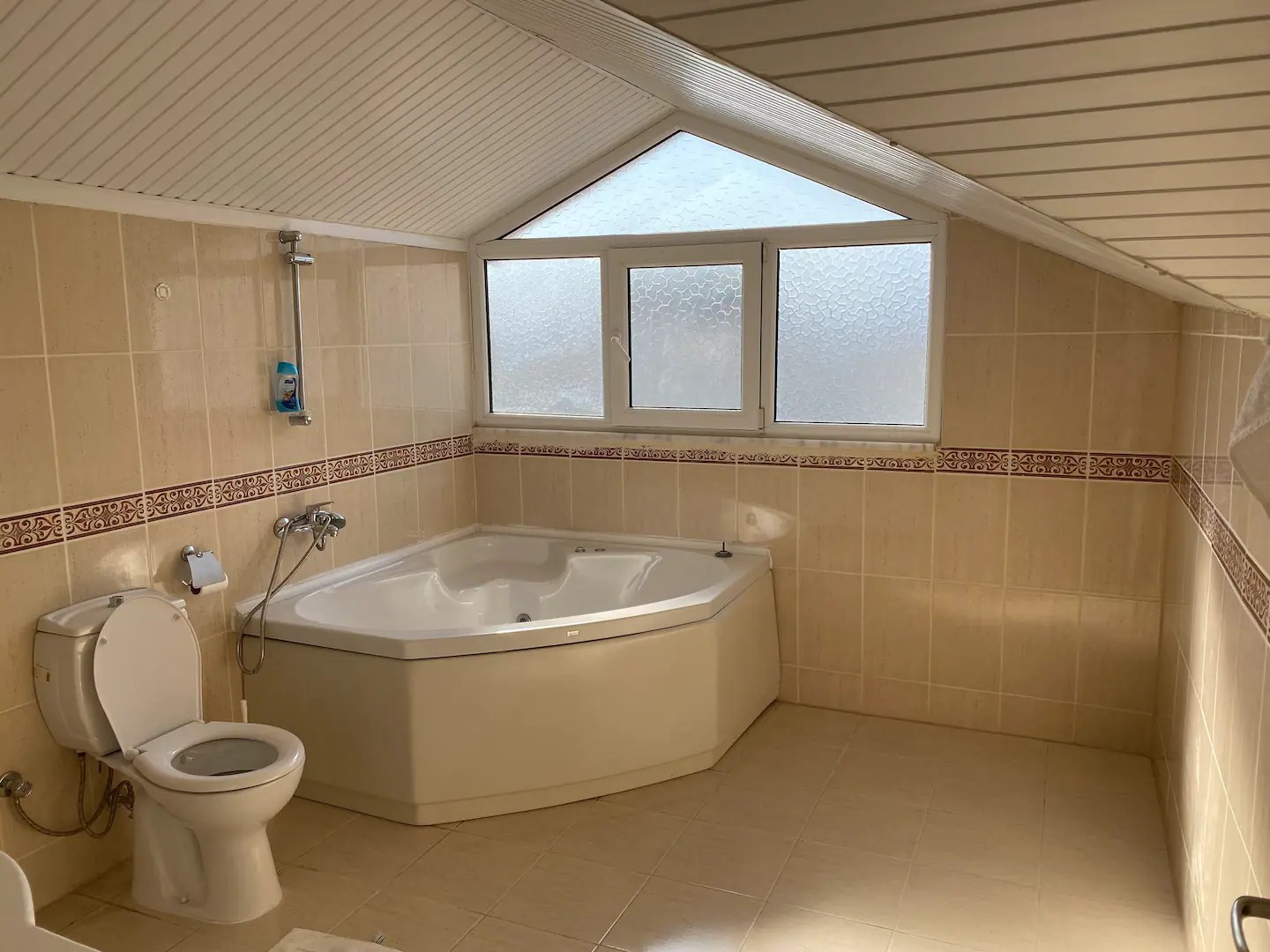 Grosse Balkone und zusätzliche Sonnenterasse in der oberen Etage, offener Kamin auf der Terrasse, Bad mit Whirlpool
