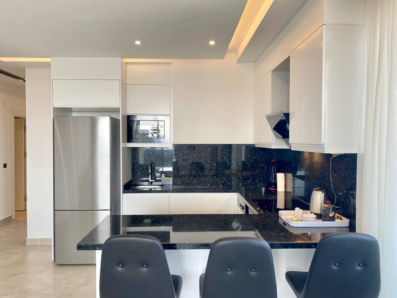 Penthaus auf 2 Etagen in der exklusiven Boutique 16 Residence in Alanya. Mit 3 Schlafzimmer, darunter ein Hauptschlafzimmer mit eigenem Bad, insgesamt 2 Badezimmer, 3 Wc´s, 1 Wohnzimmer, offene Küche.