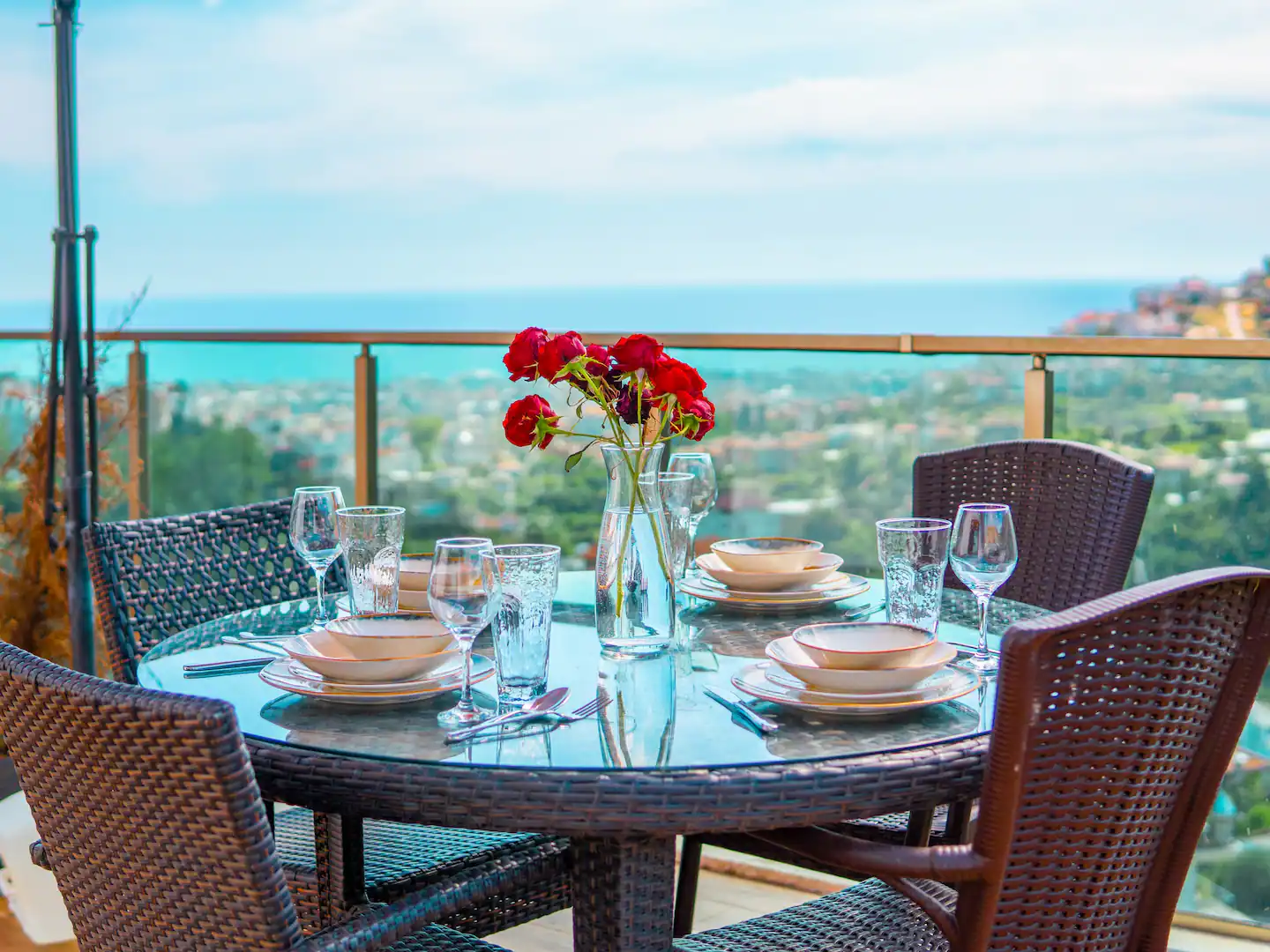 Grosse Sonnenterrasse in der 4. Etage mit Meerblick