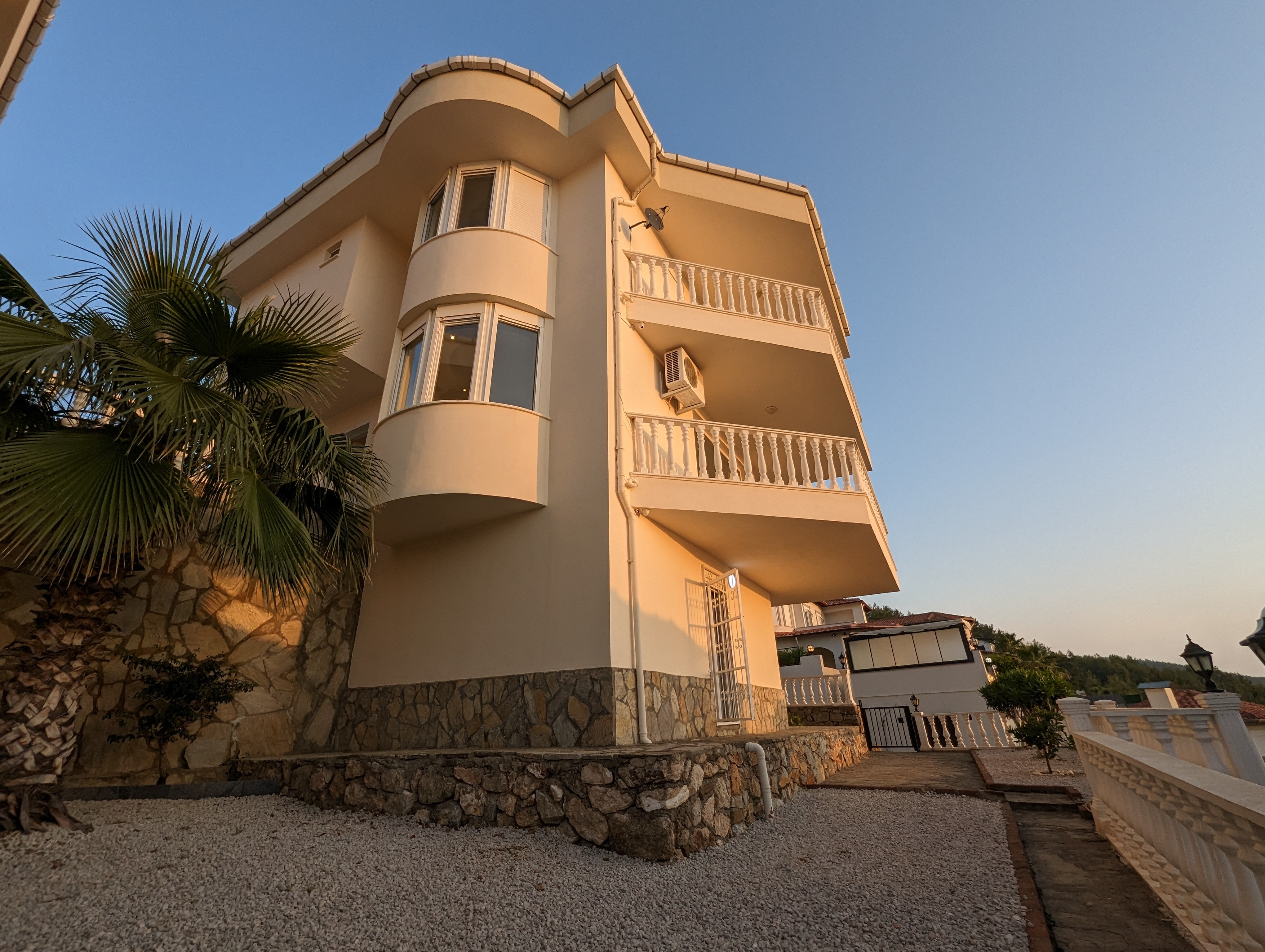 Freistehende Villa 370qm Wohnfläche mit 4 Etagen und Panoramablick auf das Mittelmeer sowie die Burg / Taurusgebirge von Alanya.