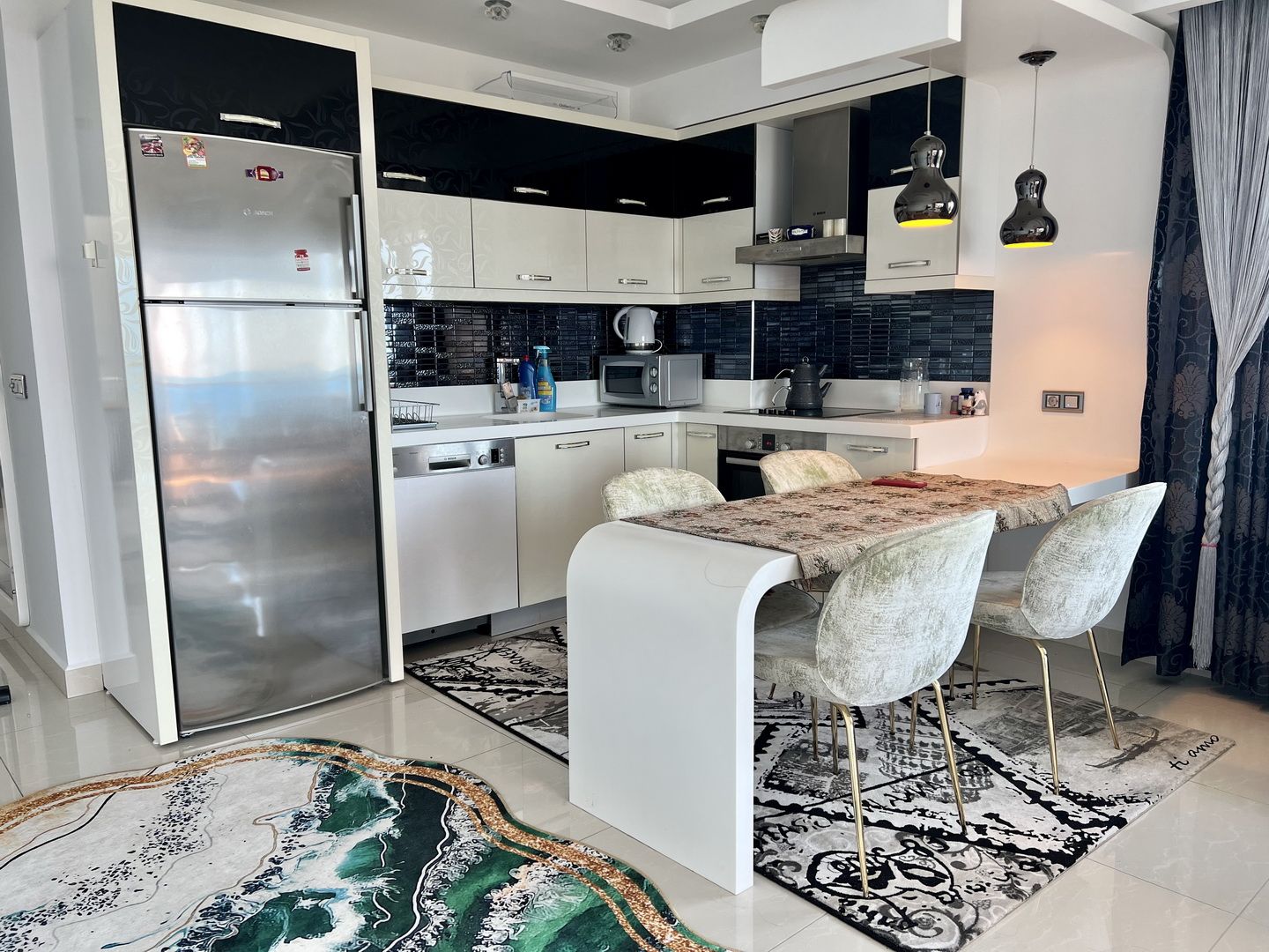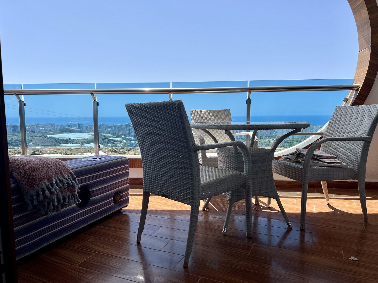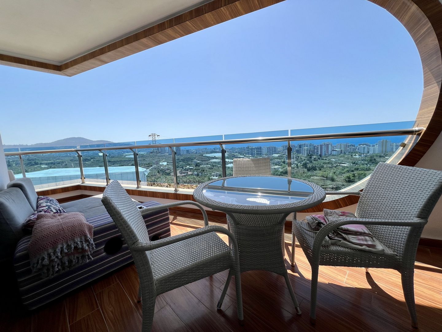Die Wohnung mit Meerblick befindet sich in der sehr luxuriösen Azura Park Residence in Alanya / Mahmutlar. Das Meer ist ca. 1 km entfernt. Einkaufsmöglichkeiten direkt in der Nähe. Die Wohnung ist in der 8. Etage