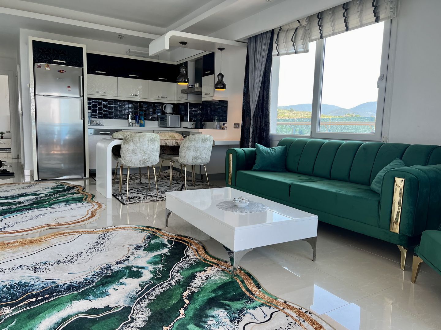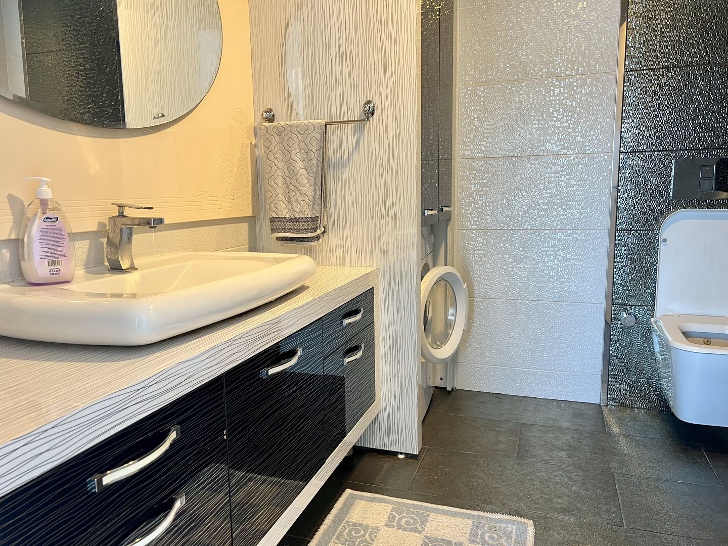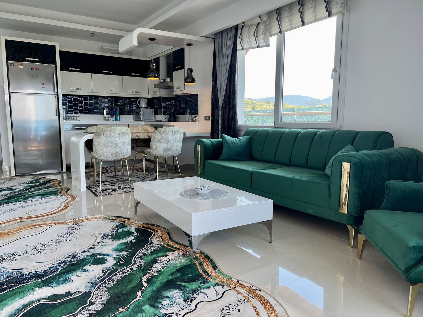 Die Wohnung mit Meerblick befindet sich in der sehr luxuriösen Azura Park Residence in Alanya / Mahmutlar. Das Meer ist ca. 1 km entfernt. Einkaufsmöglichkeiten direkt in der Nähe. Die Wohnung ist in der 8. Etage