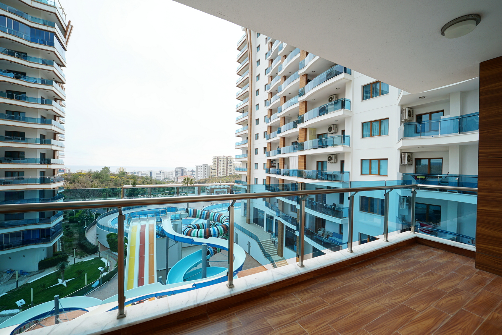 Wohnung 110qm in der 3.Etage mit Meerblick in der sehr luxuriösen Azura Park Residence in Alanya / Mahmutlar. Das Meer ist ca. 1 km entfernt. Einkaufsmöglichkeiten direkt in der Nähe.