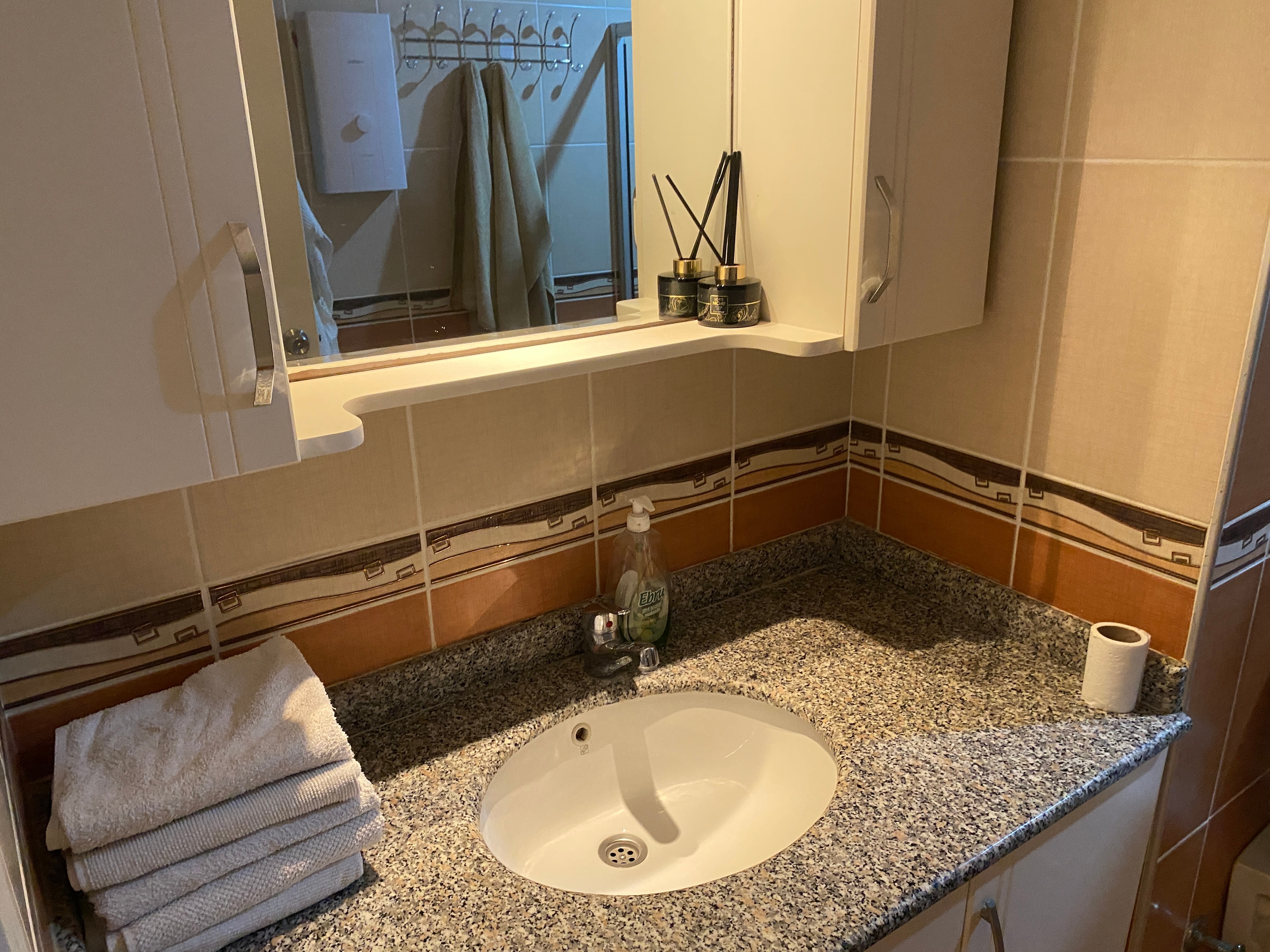 2 Schlafzimmer (1 Schlafzimmer mit Dopplebett mit eigenem Bad sowie mit Zugang zum Balkon, 1 Schlafzimmer mit 2 Einzelbetten auch als Doppelbett nutzbar ), 2 Bäder, grosser Balkon (geht um die Ecke). Der Aussenbereich ist überdacht . Alle Zimmer sind mit Klimaanlage. Schlafsofa im Wohnzimmer