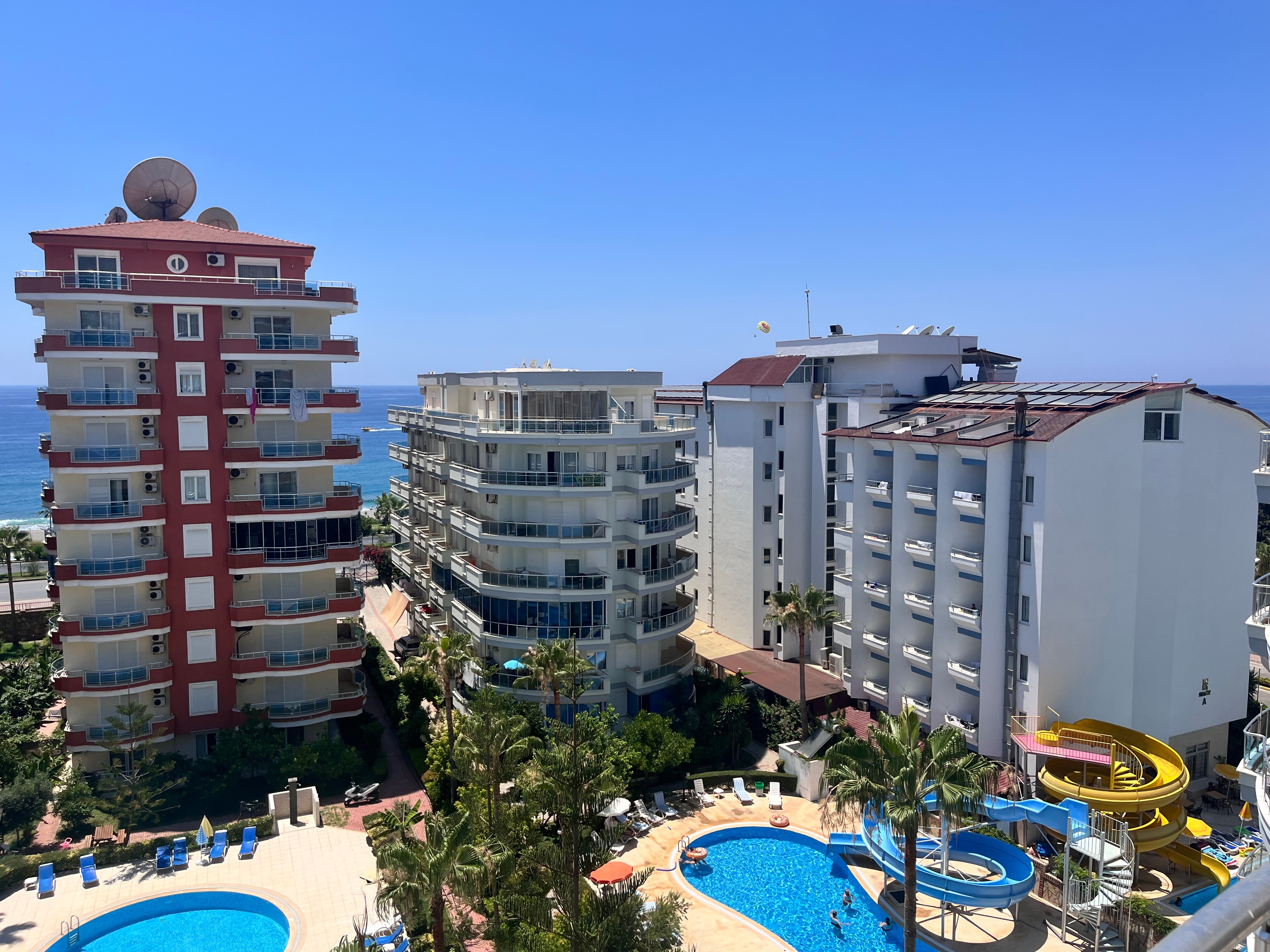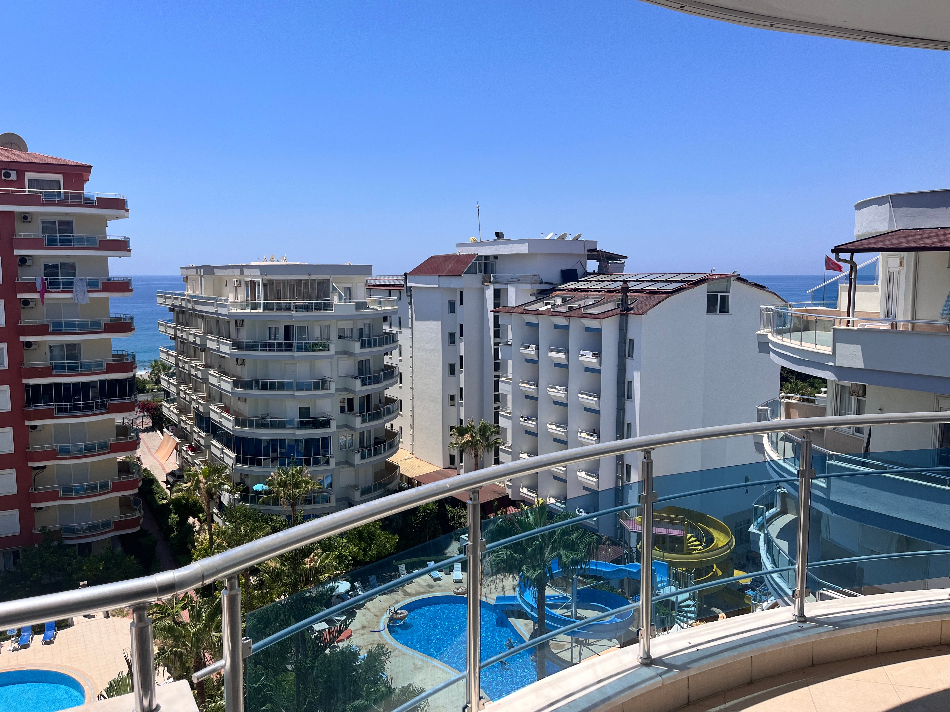 Wohnung 125qm in Alanya, teilweise Meerblick, 2 Schlafzimmer, 2 Bäder, Pool, direkt am Meer