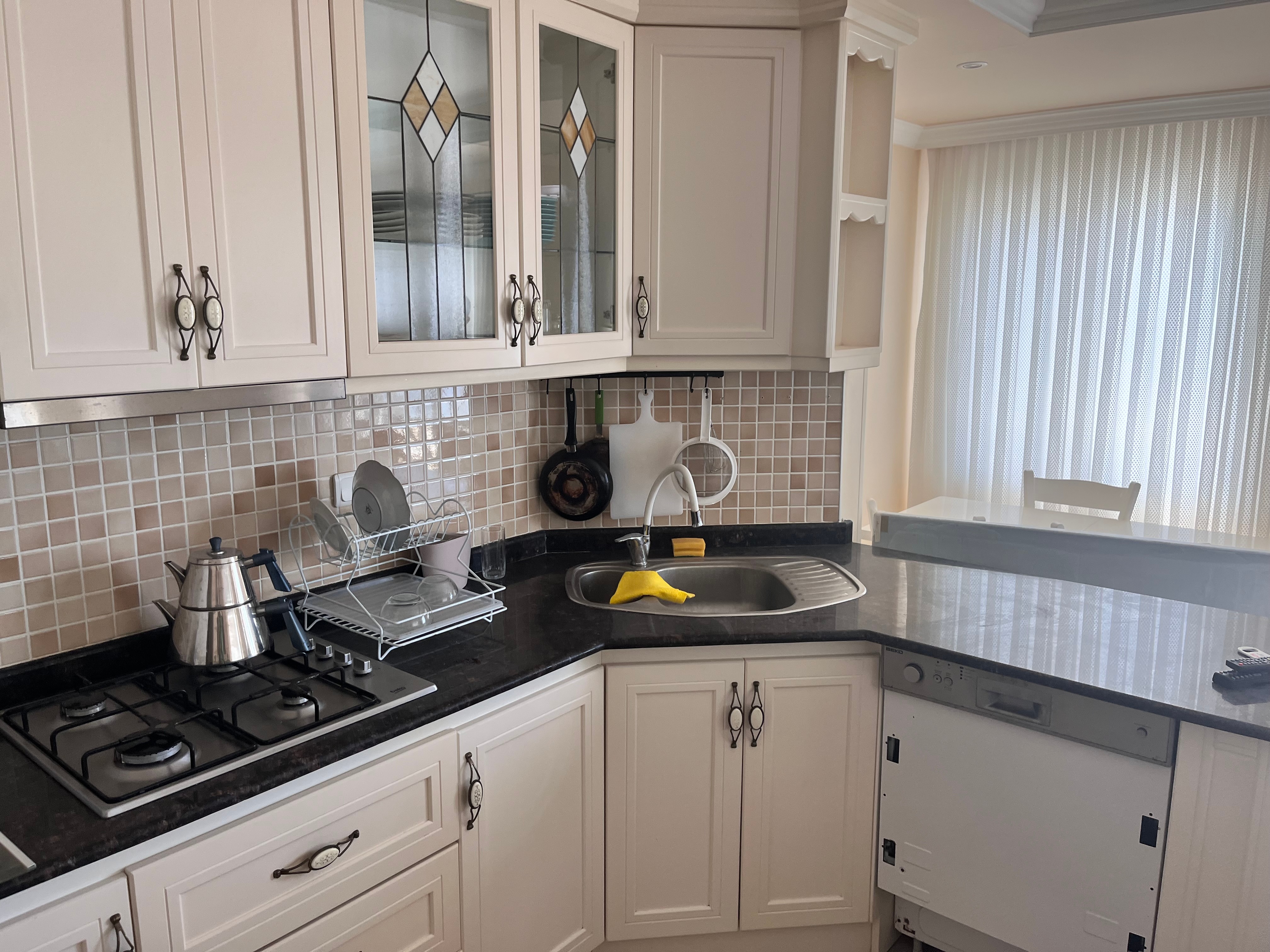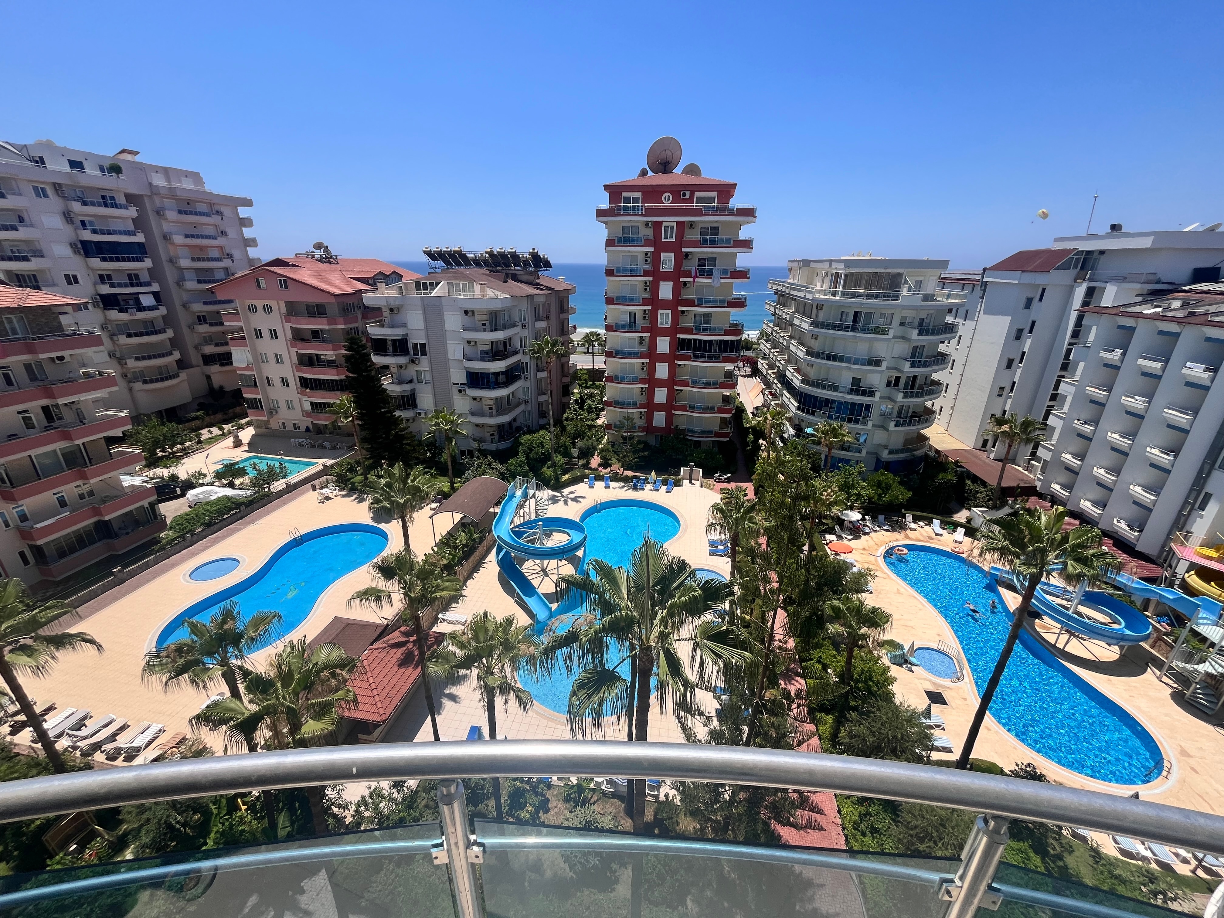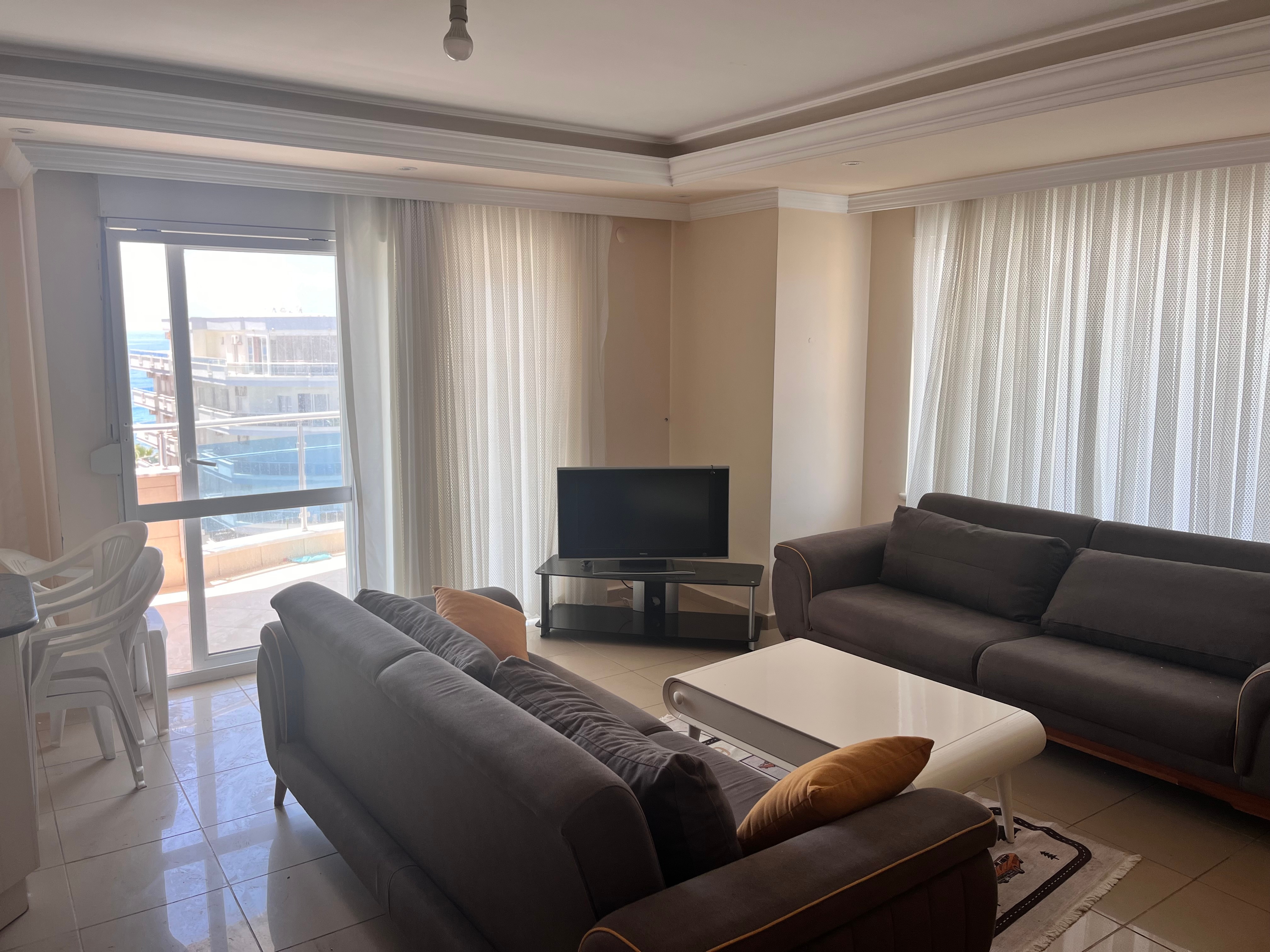 Die 125qm Wohnung (6.Stock) befindet sich in einer gepflegten privaten Anlage in Alanya / Mahmutlar und ist zentral gelegen.