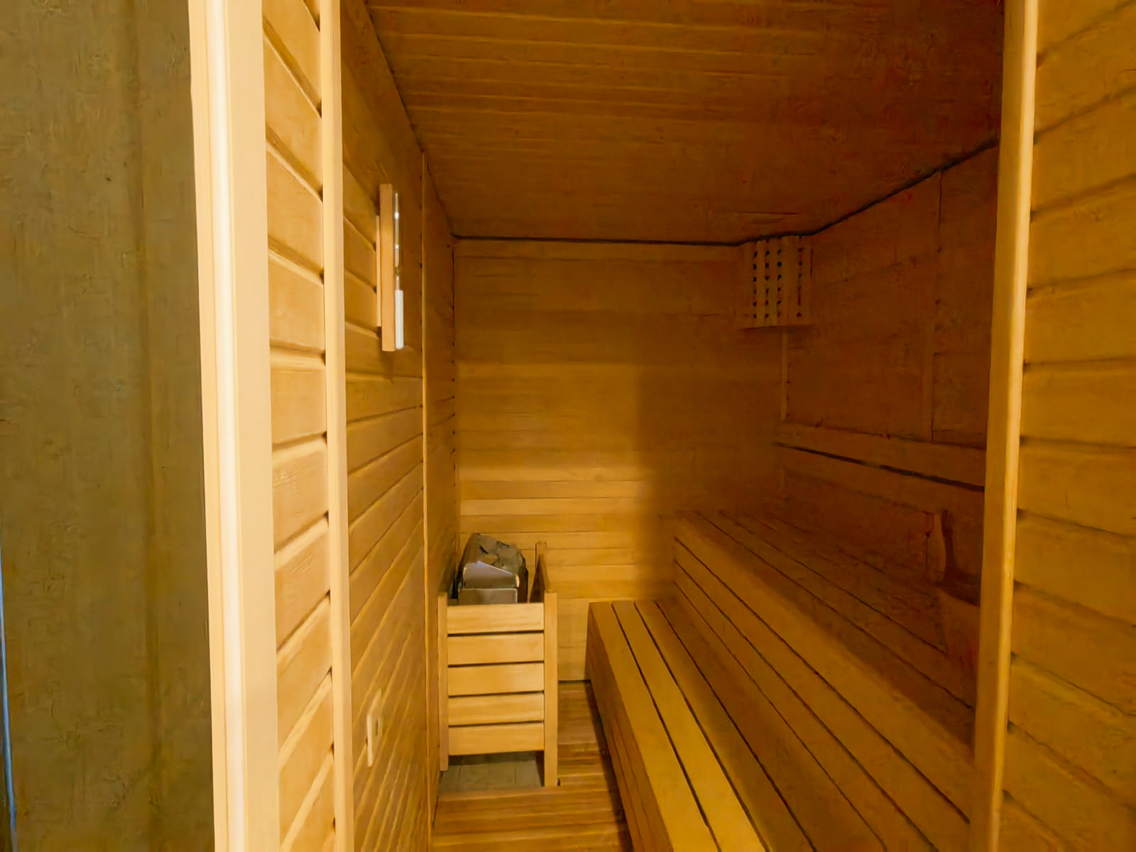 Die Wohnung in der 4.Etage verfügt über eine eigene Sauna innerhalb der Wohnung und alle Räume sind mit Klimaanlage und Fussbodenheizug ausgestattet.