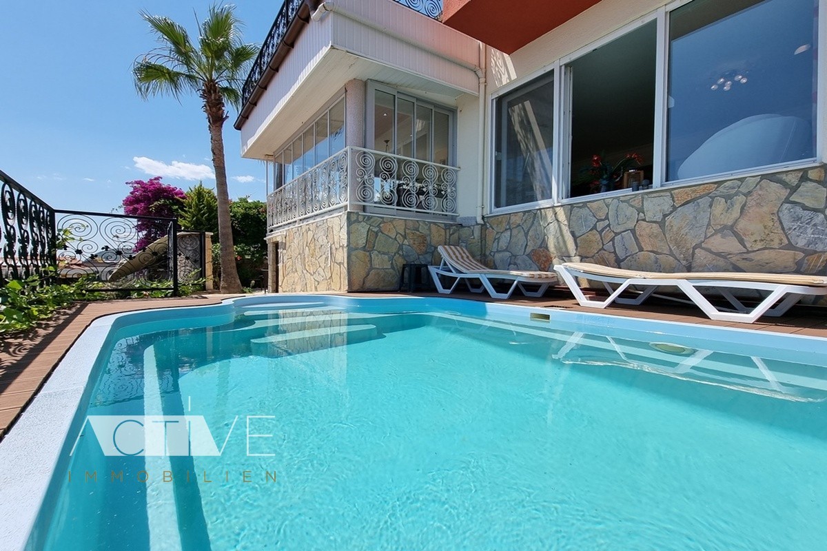 Panorama Villa 180qm mit Meerblick in Alanya, privater Pool, 3 Schlafzimmer, 2 Bäder