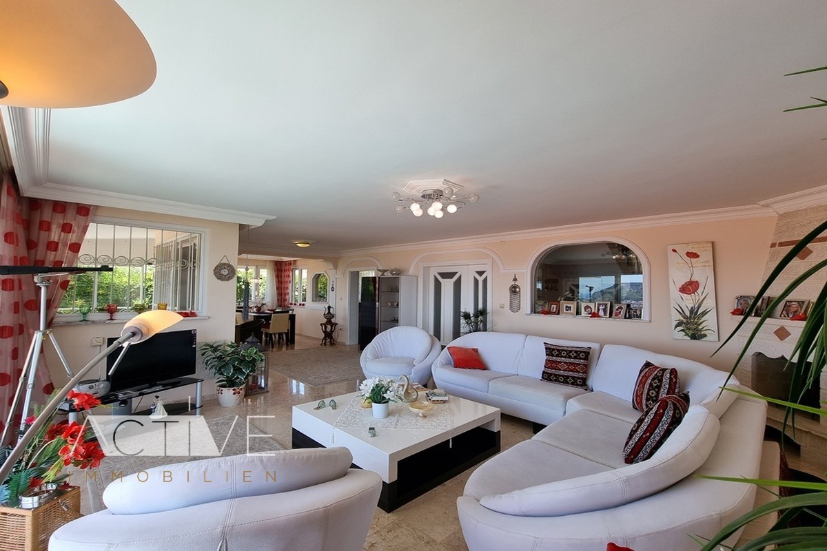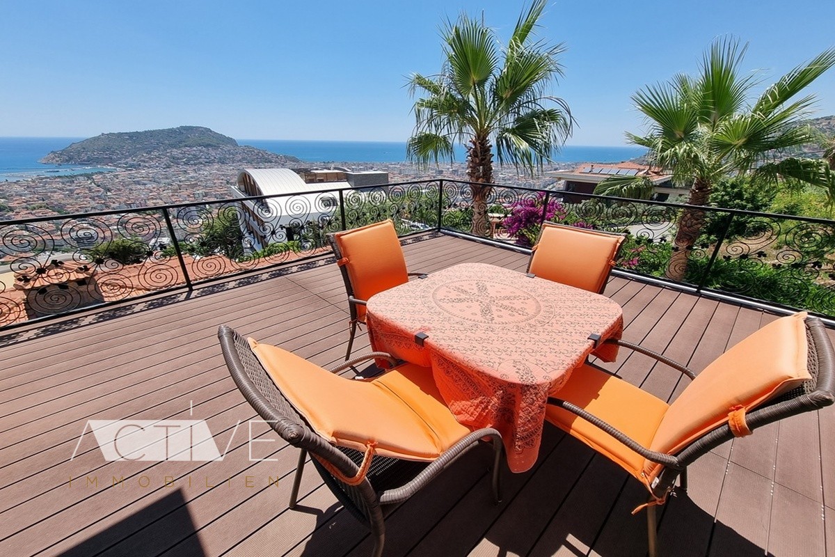 Das besondere an dieser 180qm Villa ist der wunderschöne Blick auf Alanya, die Berge und das türkisfarbene Meer und die dennoch zentrale Lage.