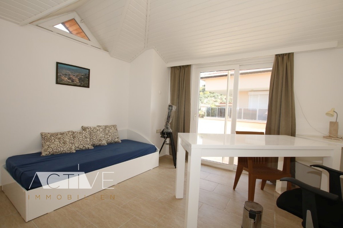 Gleichzeitig besteht aber auch die Möglichkeit sich zurückzuziehen und die Ruhe zu genießen. Generell ist die Wohnung sehr hell und freundlich eingerichtet und besitzt einen Holzofen für die kühleren Wintertage. Der große um die Ecke gehende Balkon und vor allem die Dachterrasse eignen sich ideal, um an lauen Sommerabenden den Blick aufs Meer zu genießen.