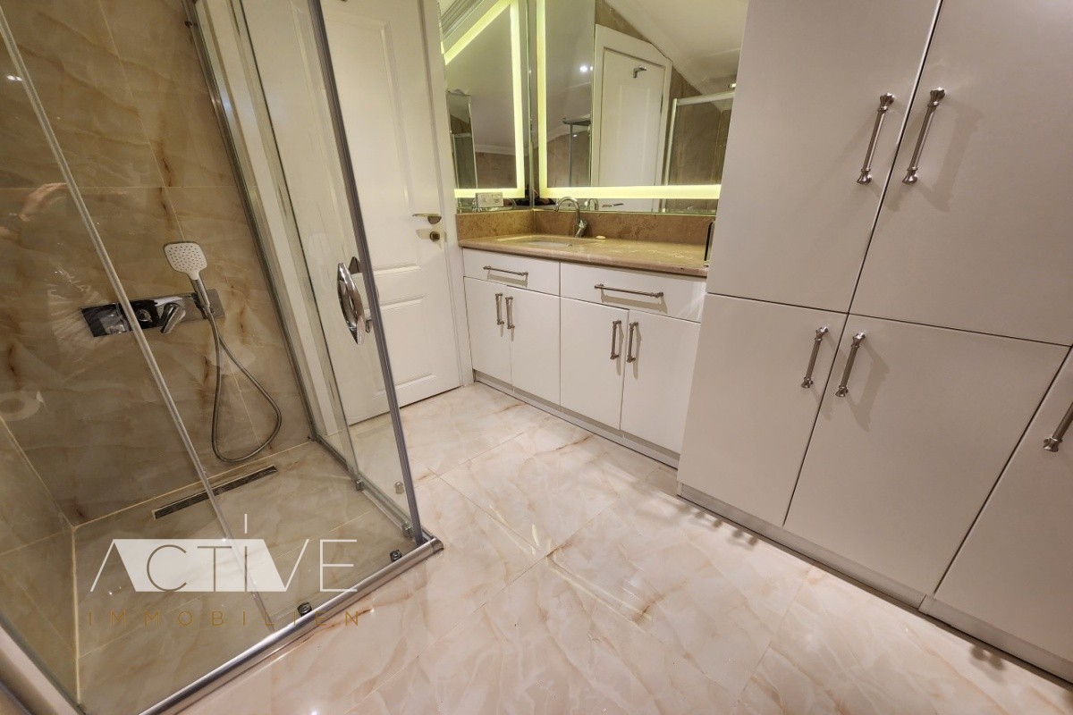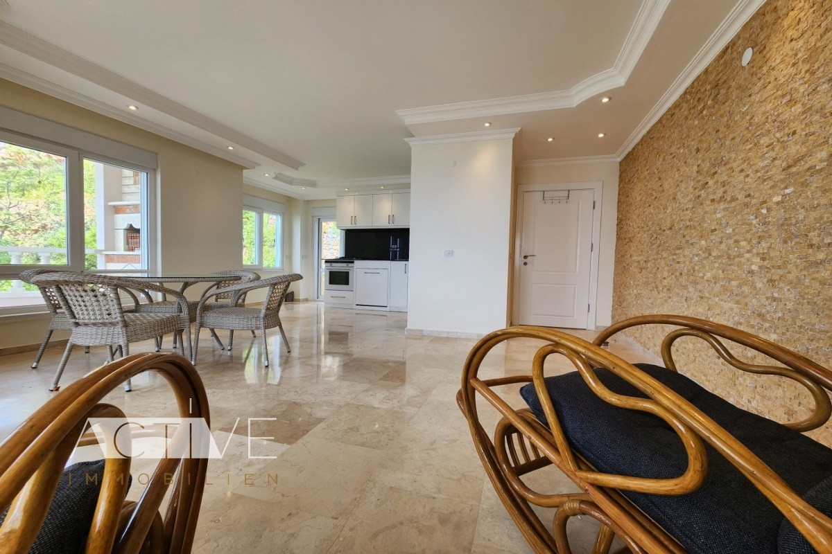 Die schöne 150qm Penthauswohnung in Alanya-Bektas beeindruckt mit ihrer Einzigartigkeit und einer schönen Größe und wurde dieses Jahr modernisiert hochwertige Marmorboden und die großen, bodentiefen Fenster machen diese Penthauswohnung sehr attraktiv.