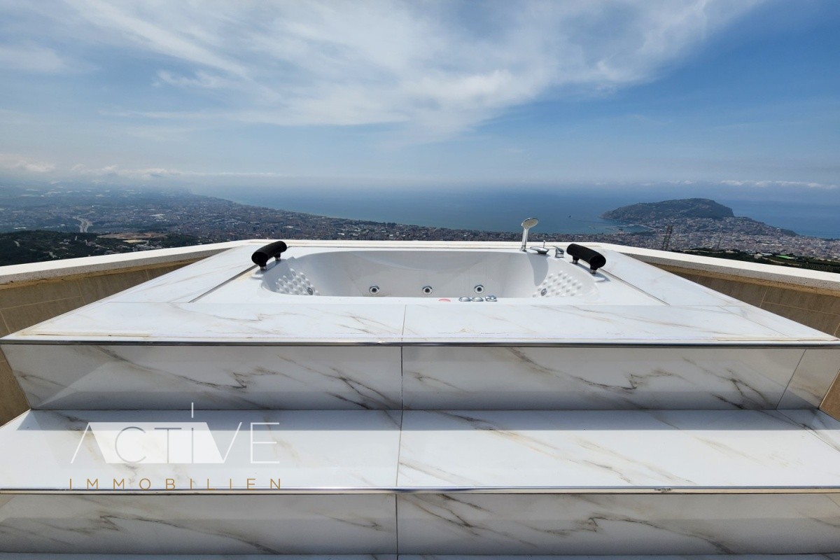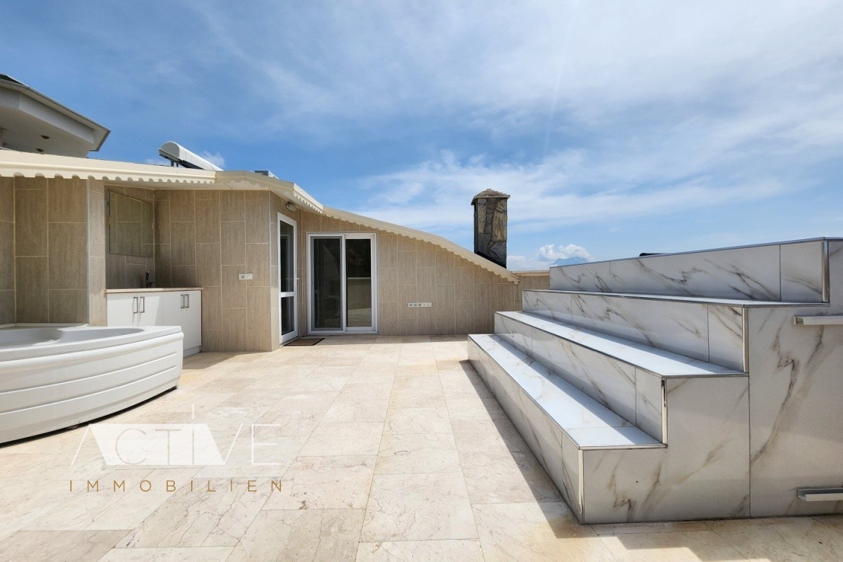 Penthaus 150qm in Alanya mit Meerblick, 3 Schlafzimmer, 2 Bäder, 3 Balkone, Jacuzzi, Pool