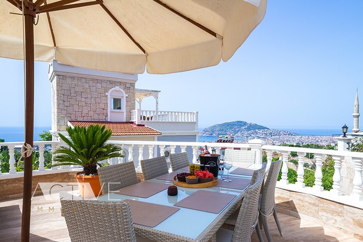 Villa 170qm in Alanya mit Meerblick, 3 Schlafzimmer, 2 Bäder, Pool, 3 Balkone, 3 Etagen