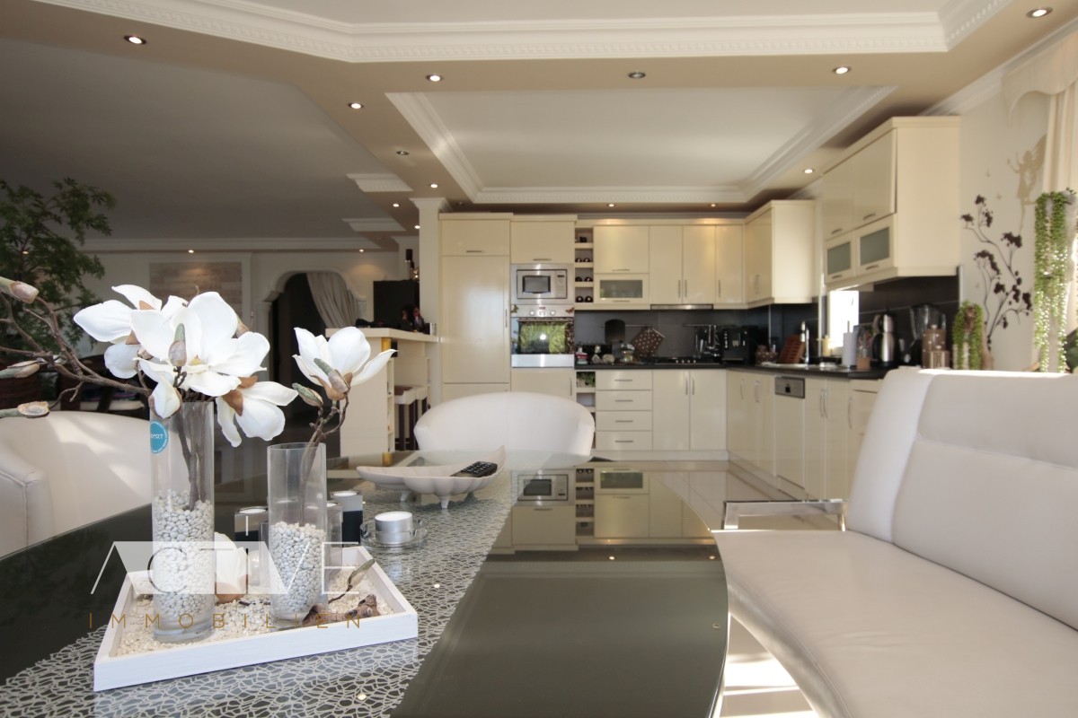 Die wunderschöne 255qm Villa mit 2 Etagen befindet sich im Ortsteil Kargicak, welcher ca. 15 km vom Zentrum in Alanya entfernt ist.