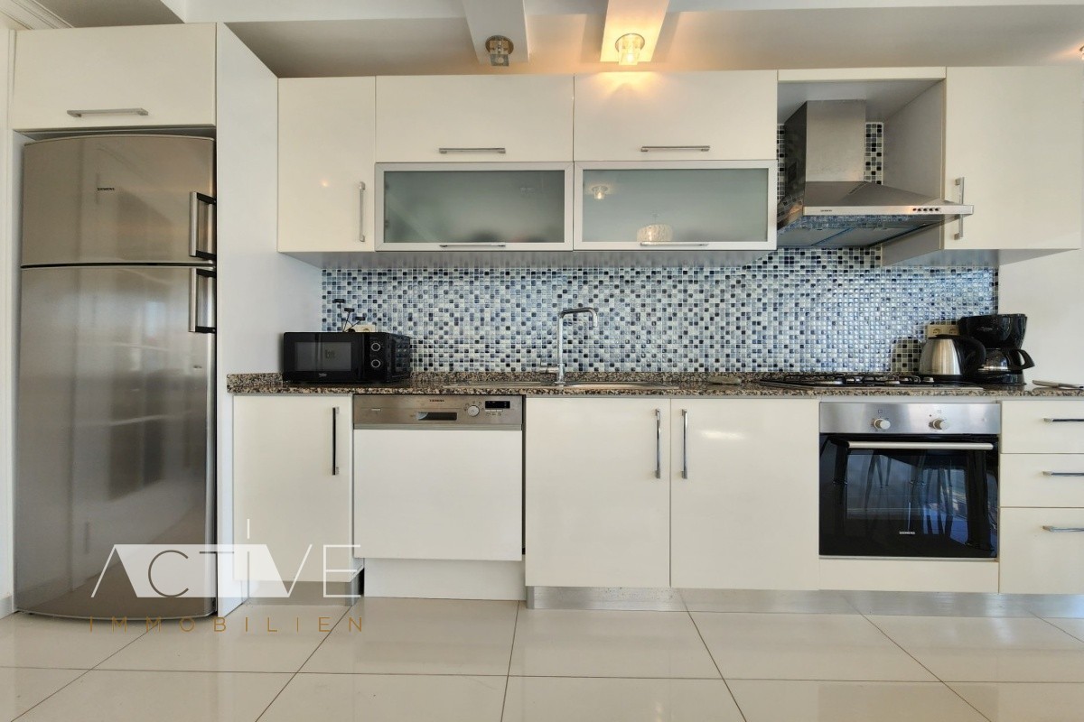 Das Wohngebäude wurde so errichtet, dass alle Wohnungen einen Blick auf das Meer haben. Ausgestattet ist die Wohnung mit Keramikfliesen, Stuckarbeiten an den Zimmerdecken, integrierten Spotleuchten, PVC Fenstern, moderne Eingangstür aus Stahl und eine offene Einbauküche.