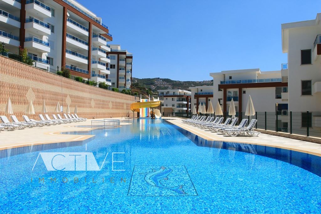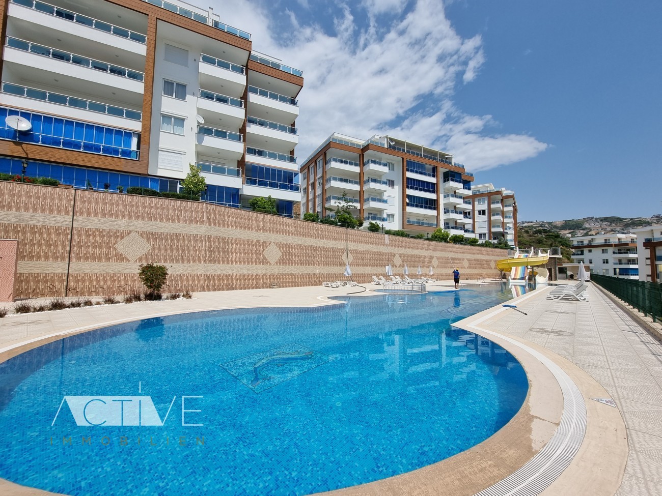 Wohnung 65qm in Alanya mit Meerblick, luxuriöse Anlage, 1 Schlafzimmer, 1 Bad, Pool, Spa, Hallenbad